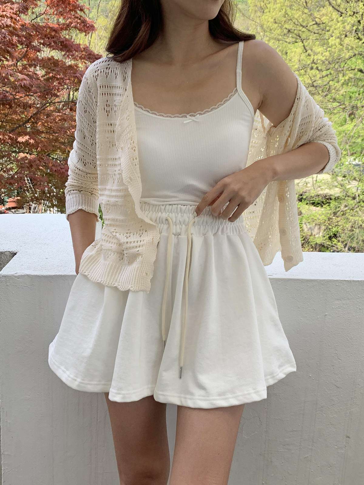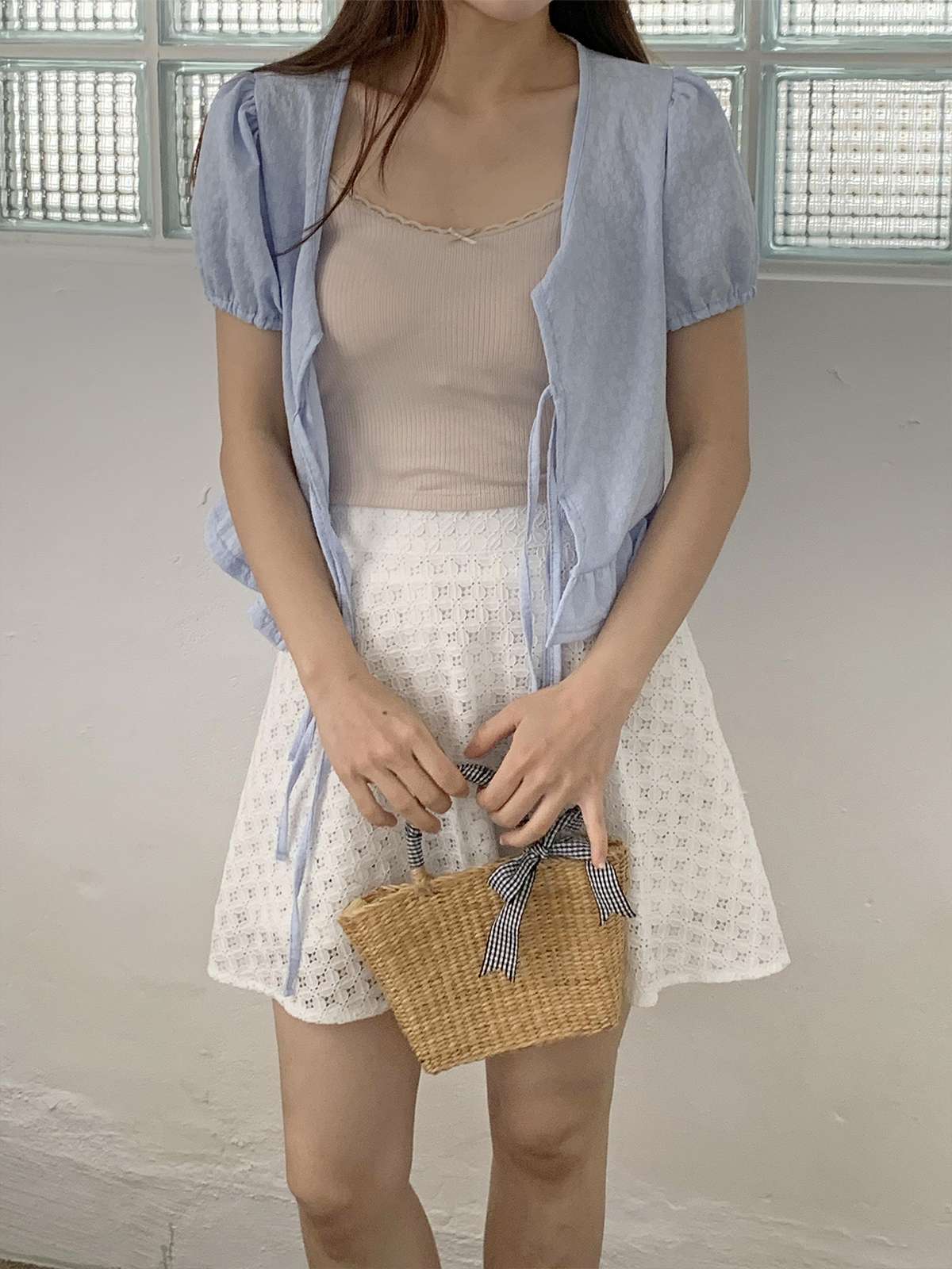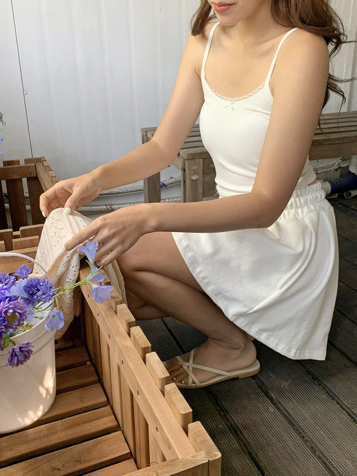 러블리한 무드의 리본과 레이스 라인이 포인트인 데일리 끈나시