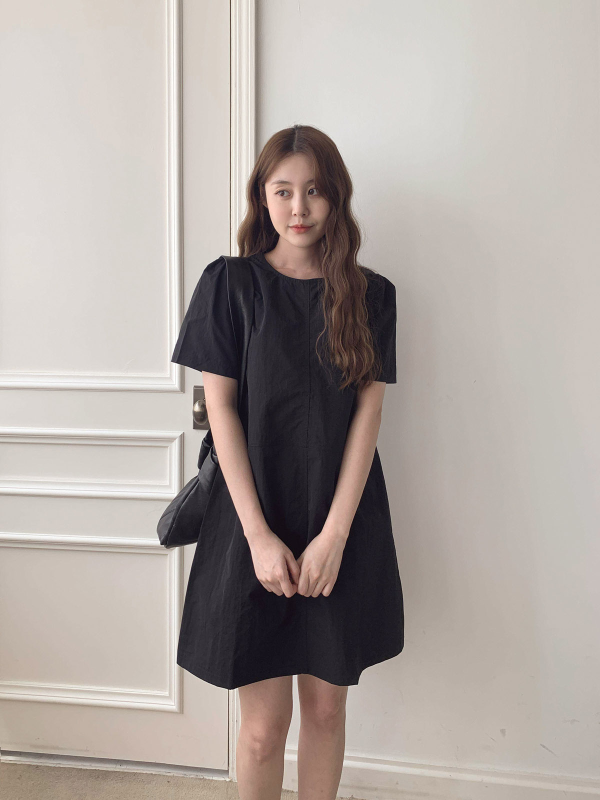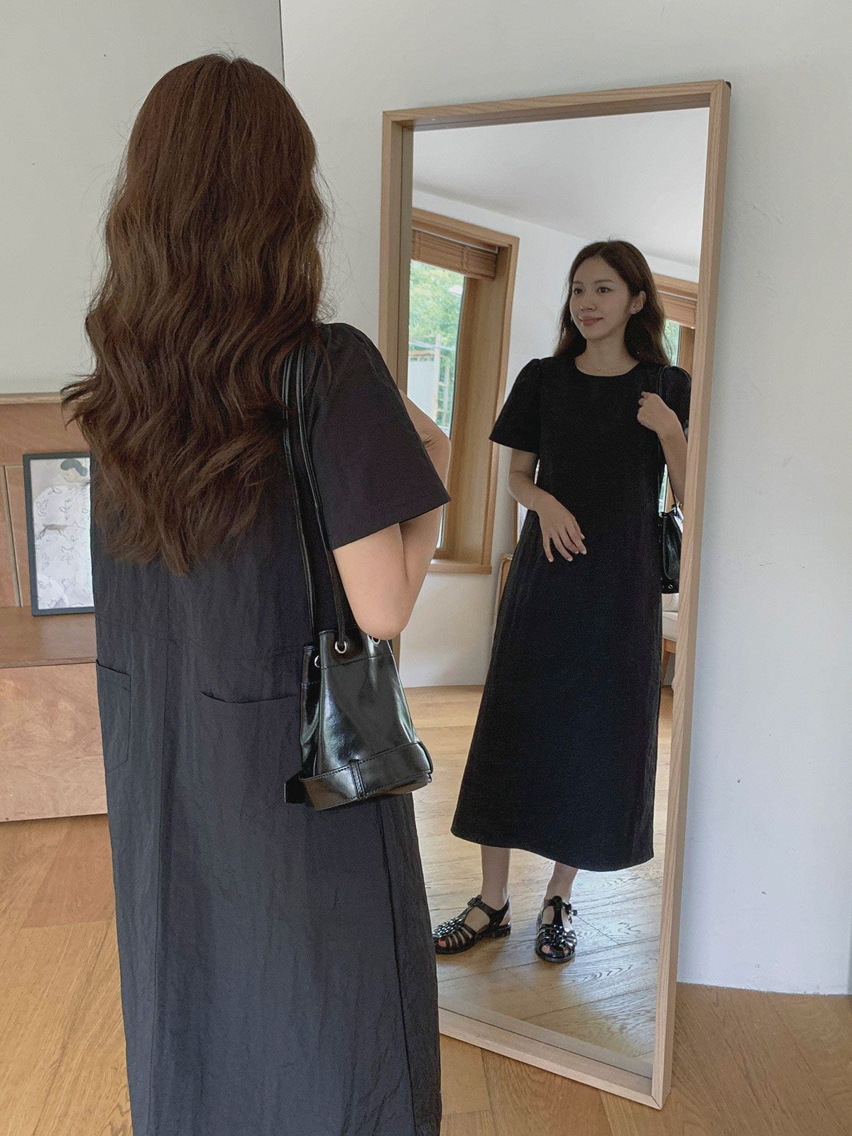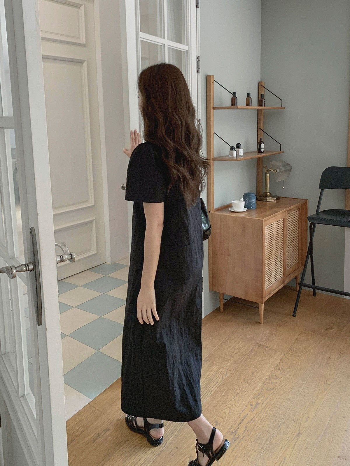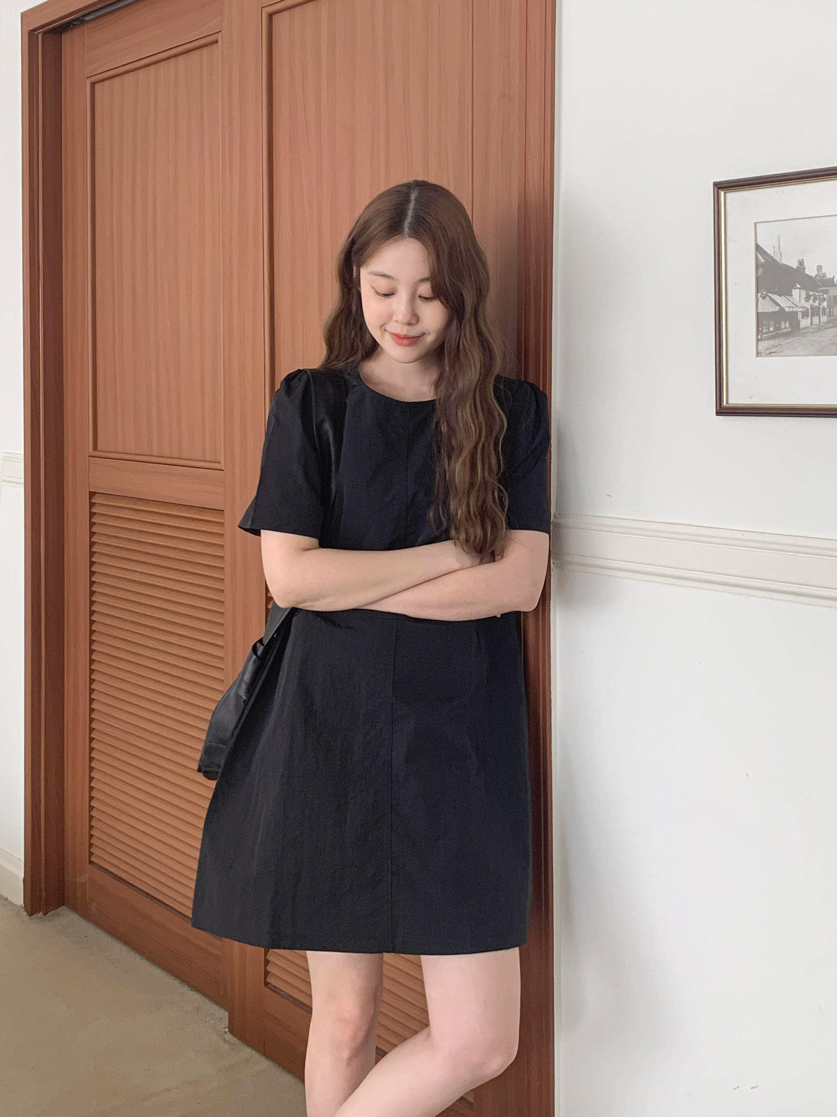 OPS10331K55-(미니/롱 2ver)할린오 바스락 나일론 절개라인 반팔 원피스
