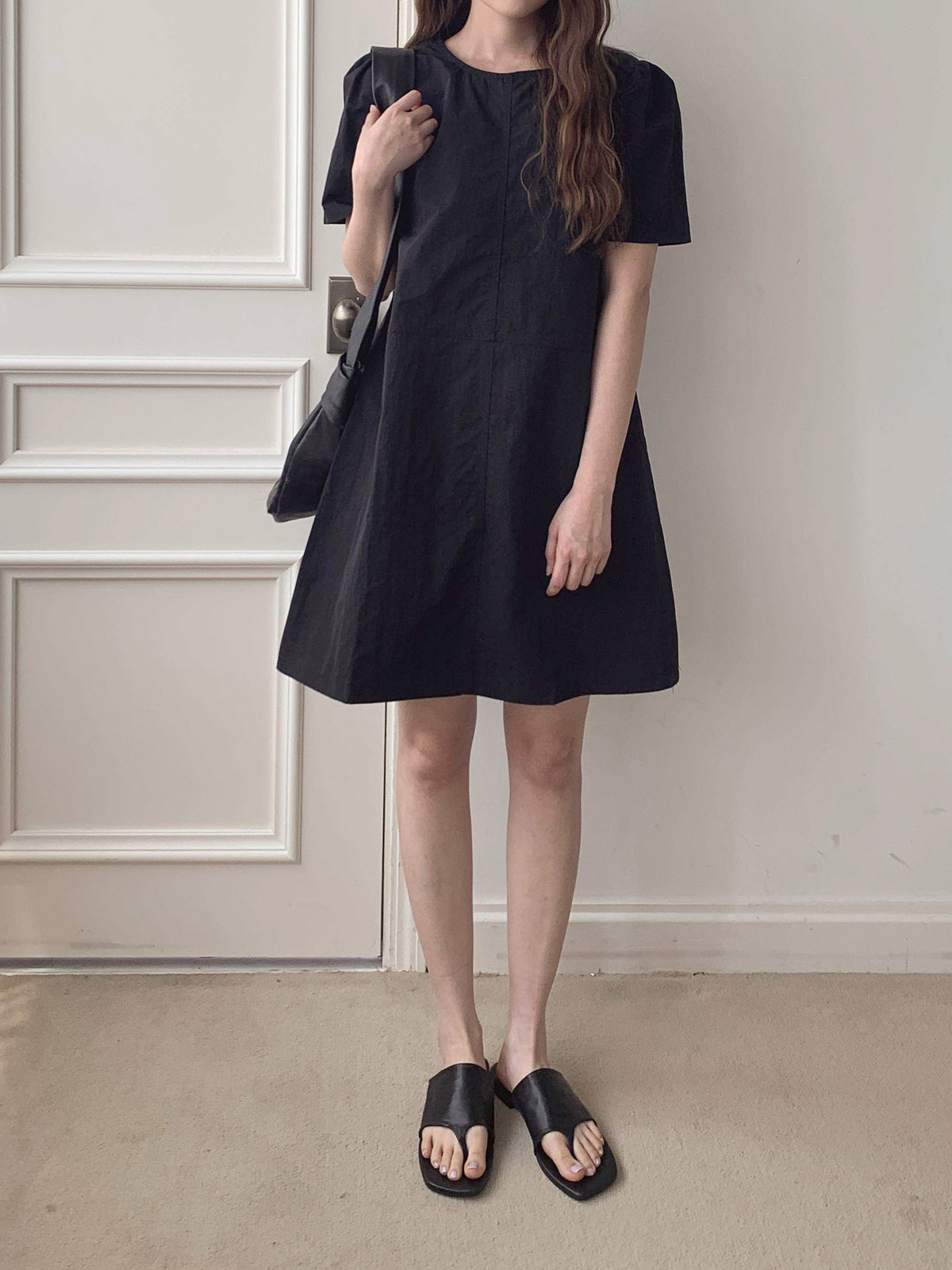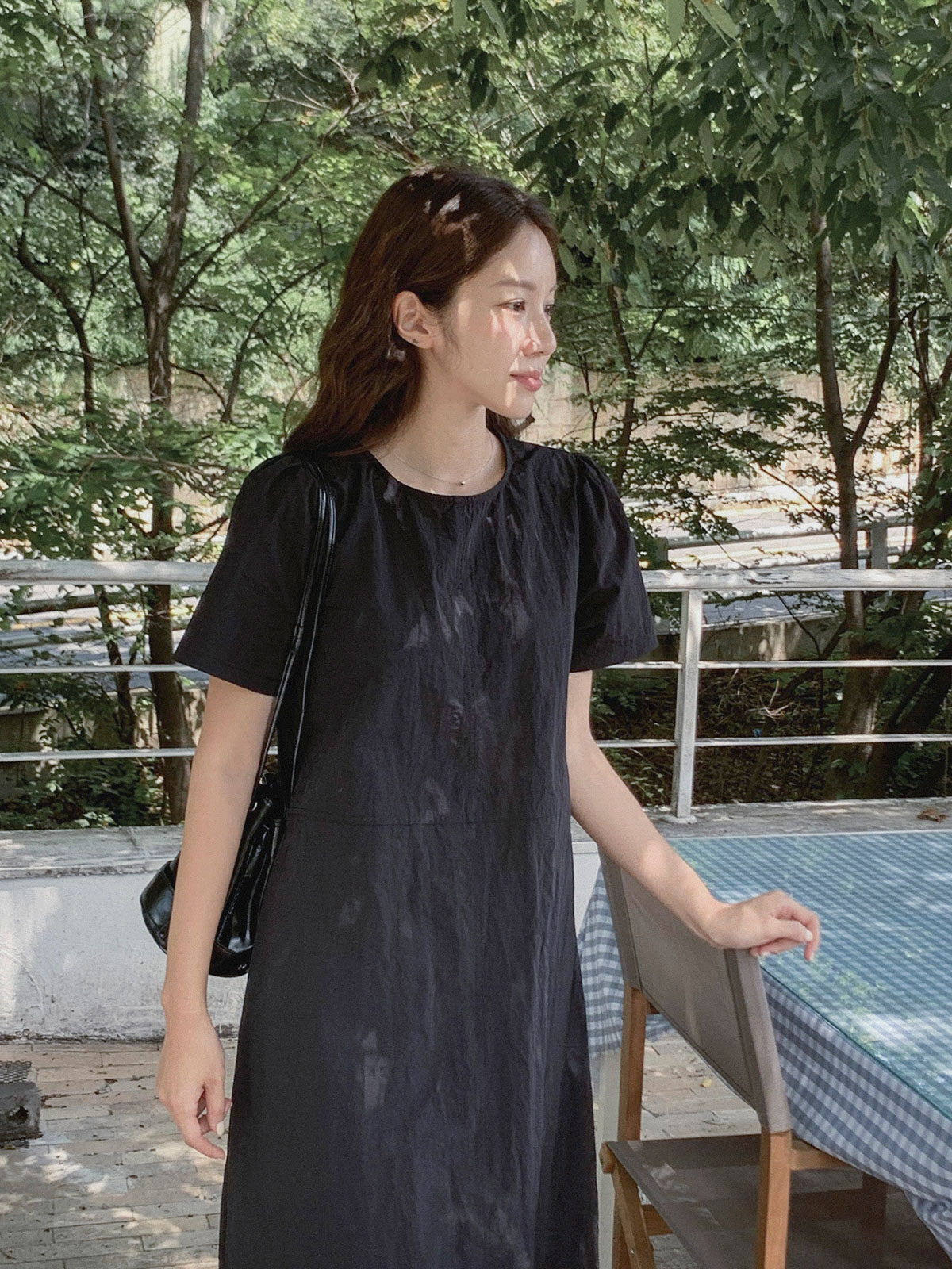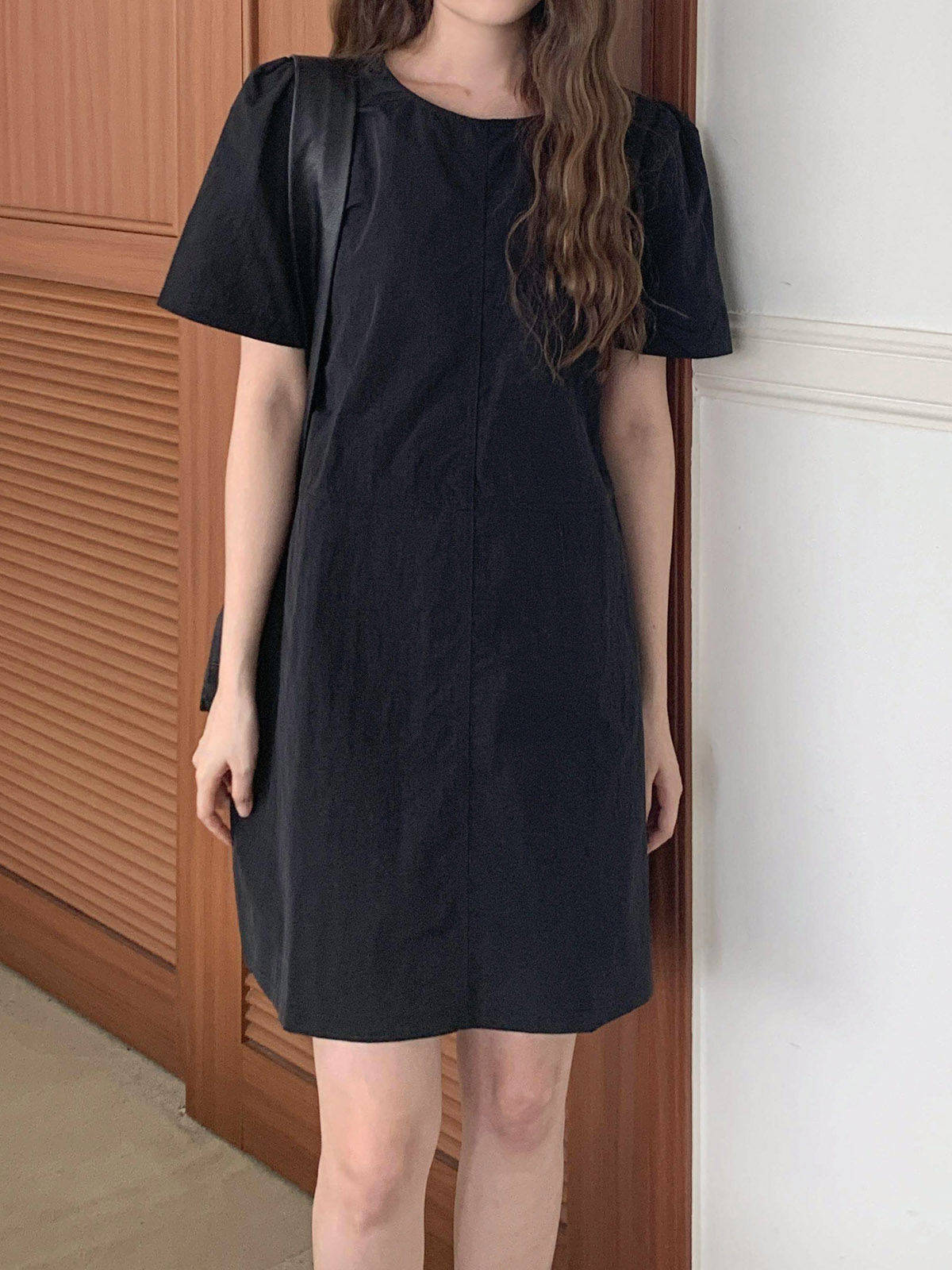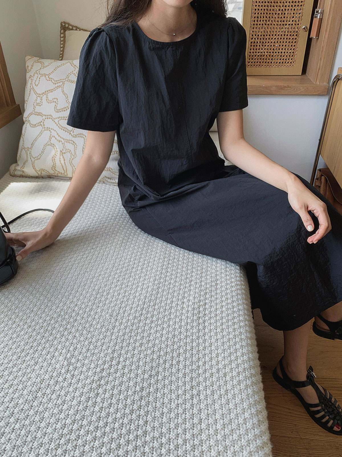 OPS10331K55-(미니/롱 2ver)할린오 바스락 나일론 절개라인 반팔 원피스