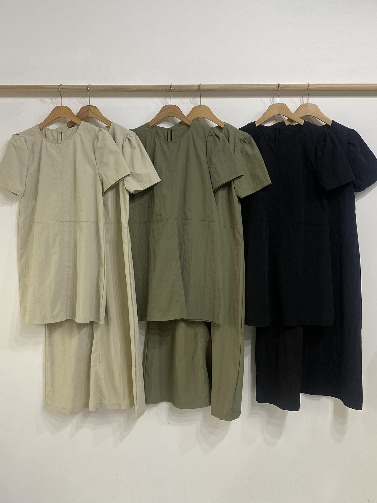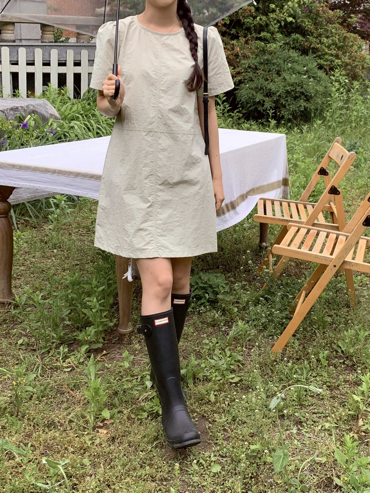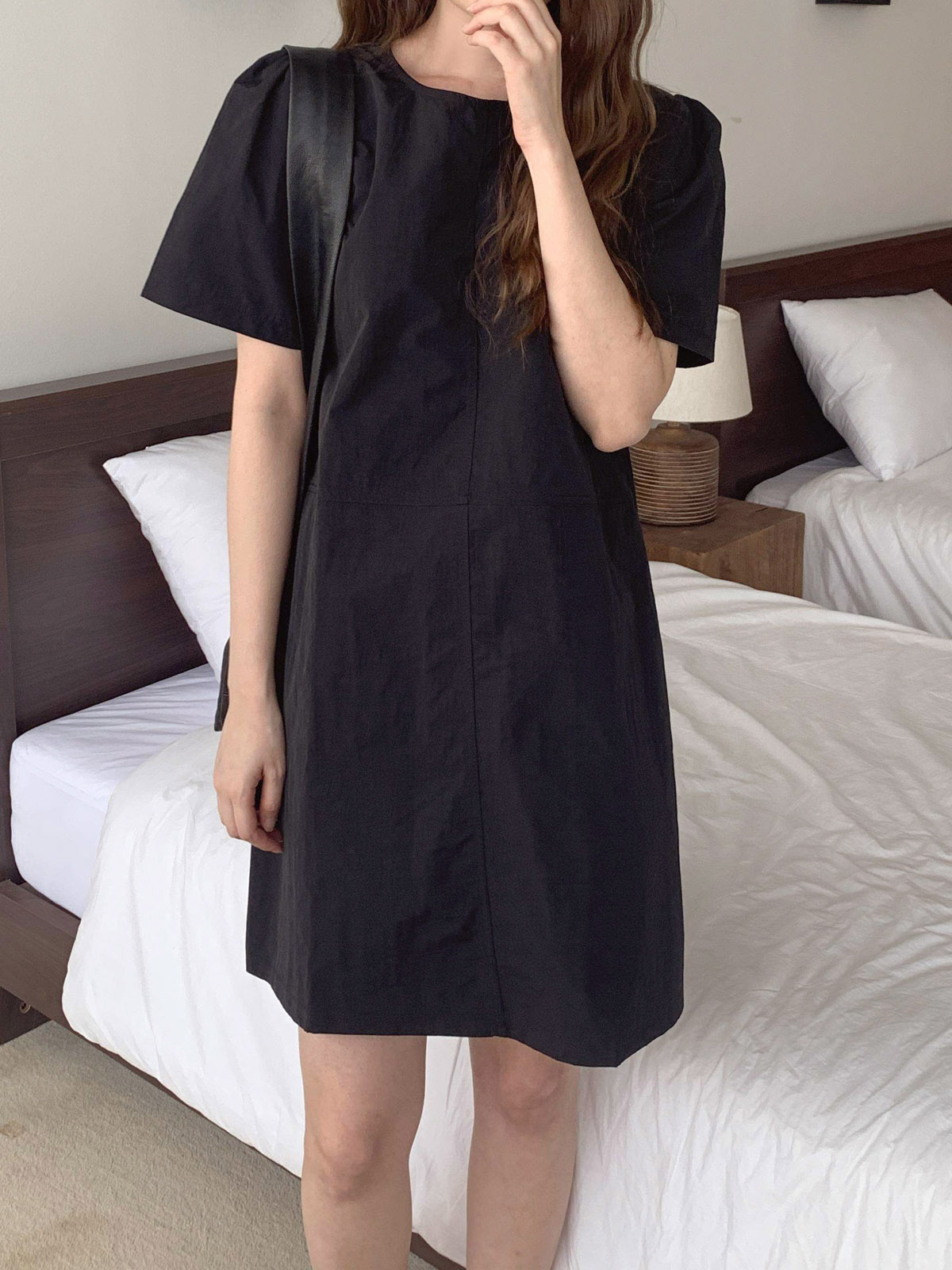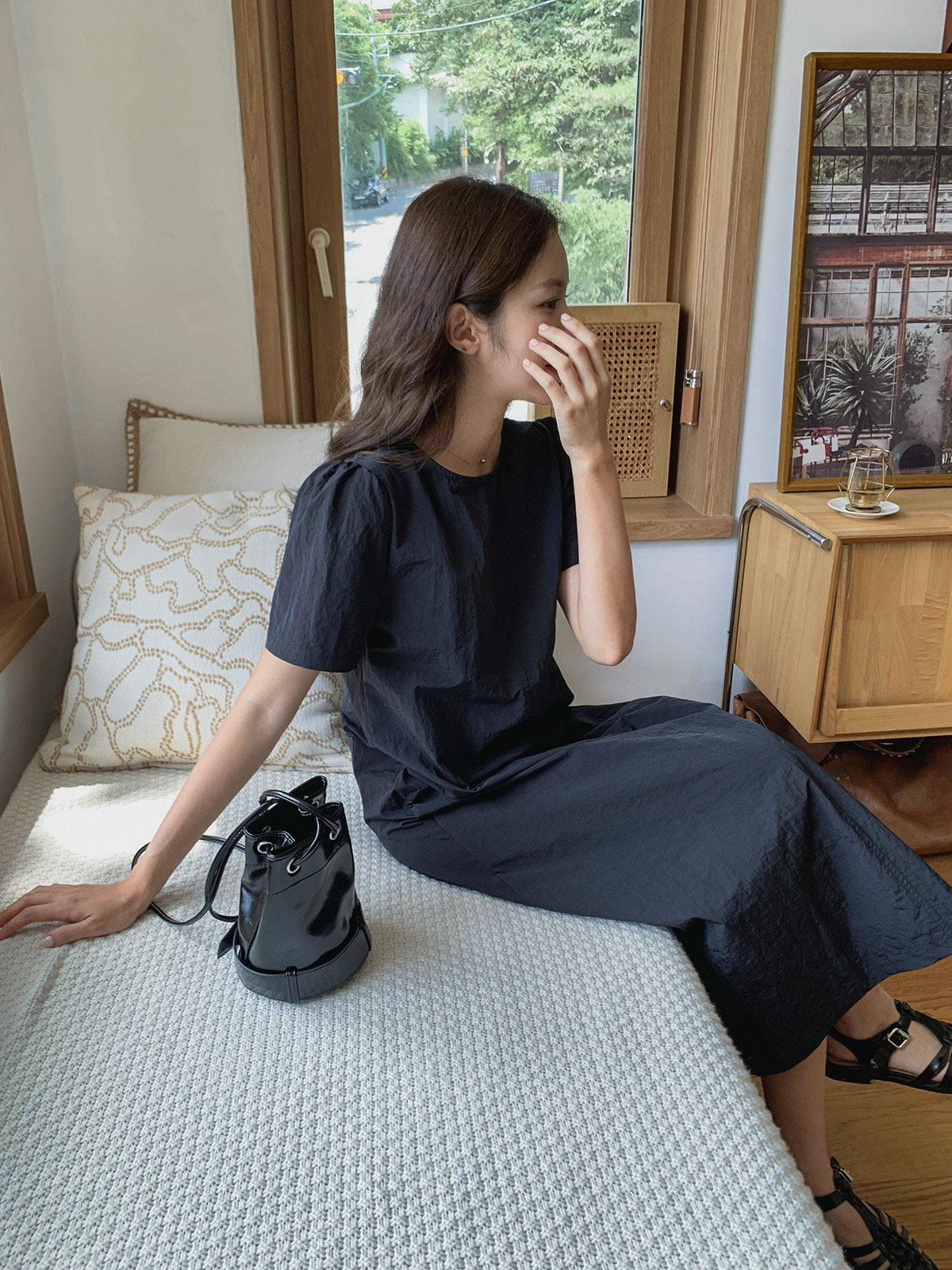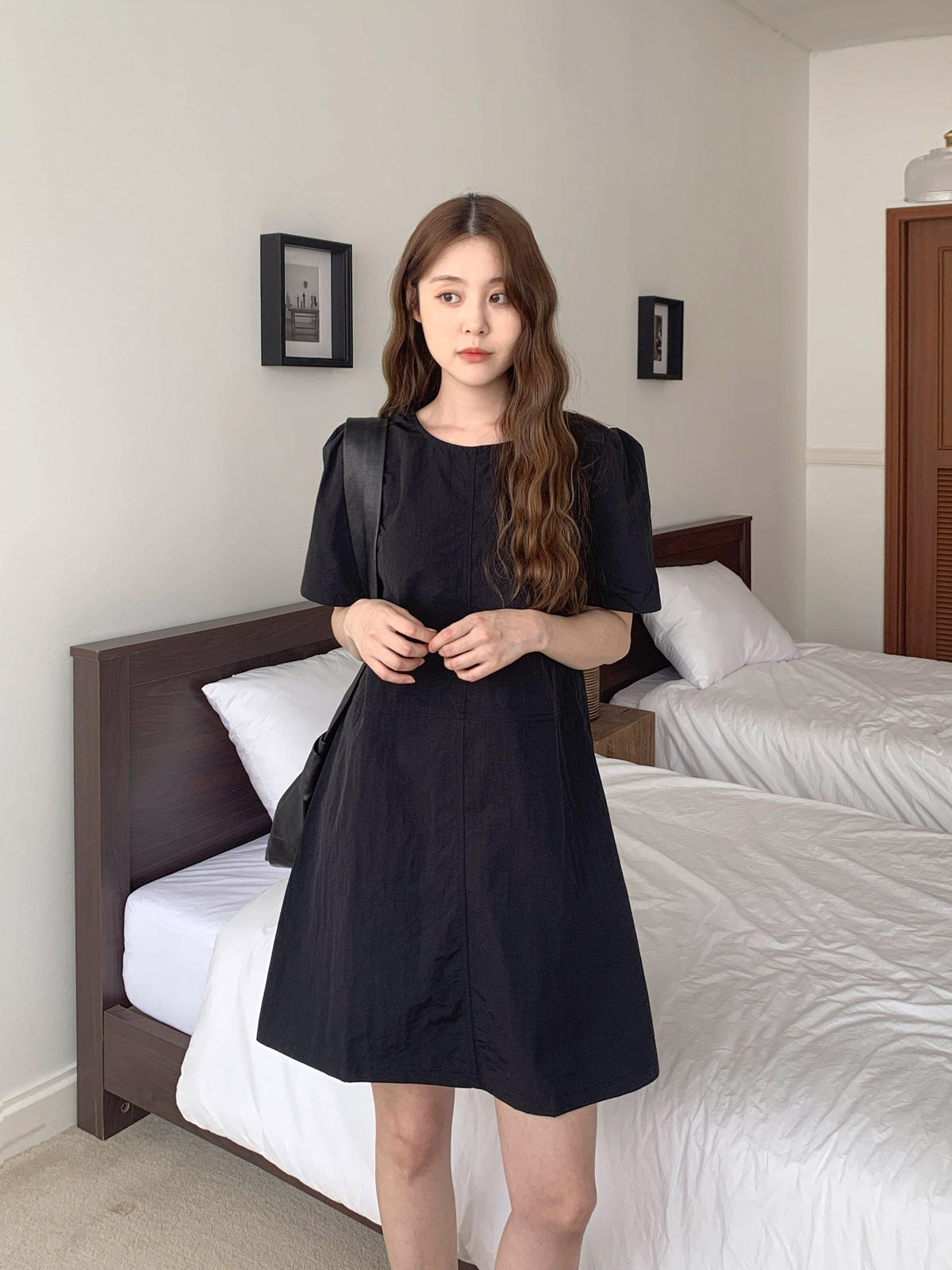 OPS10331K55-(미니/롱 2ver)할린오 바스락 나일론 절개라인 반팔 원피스