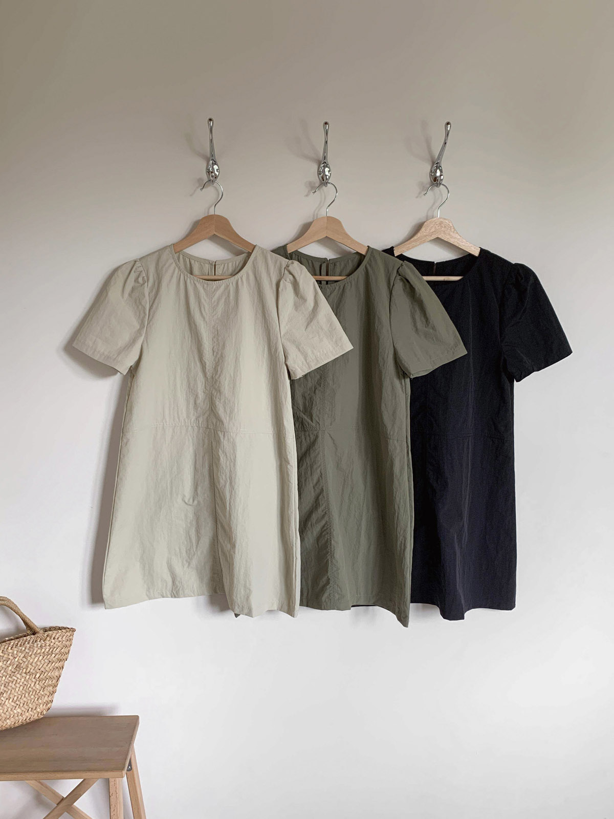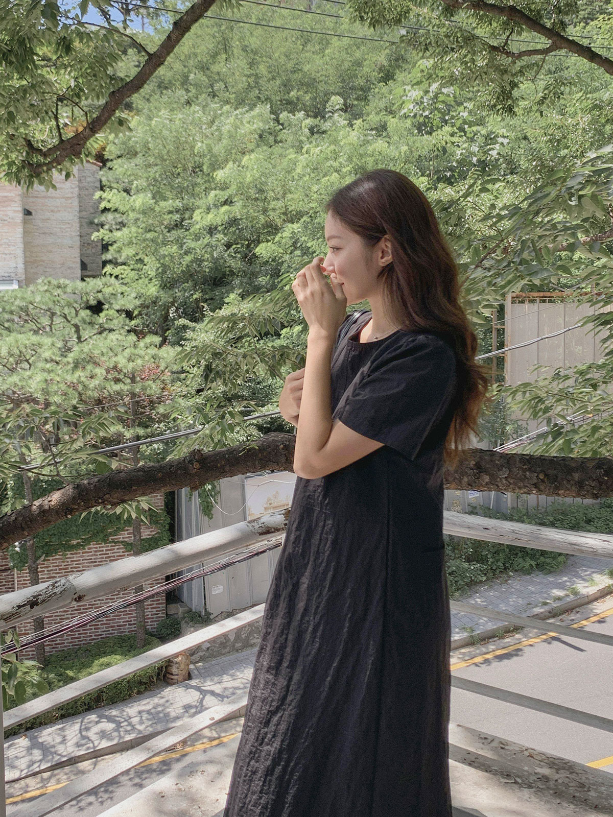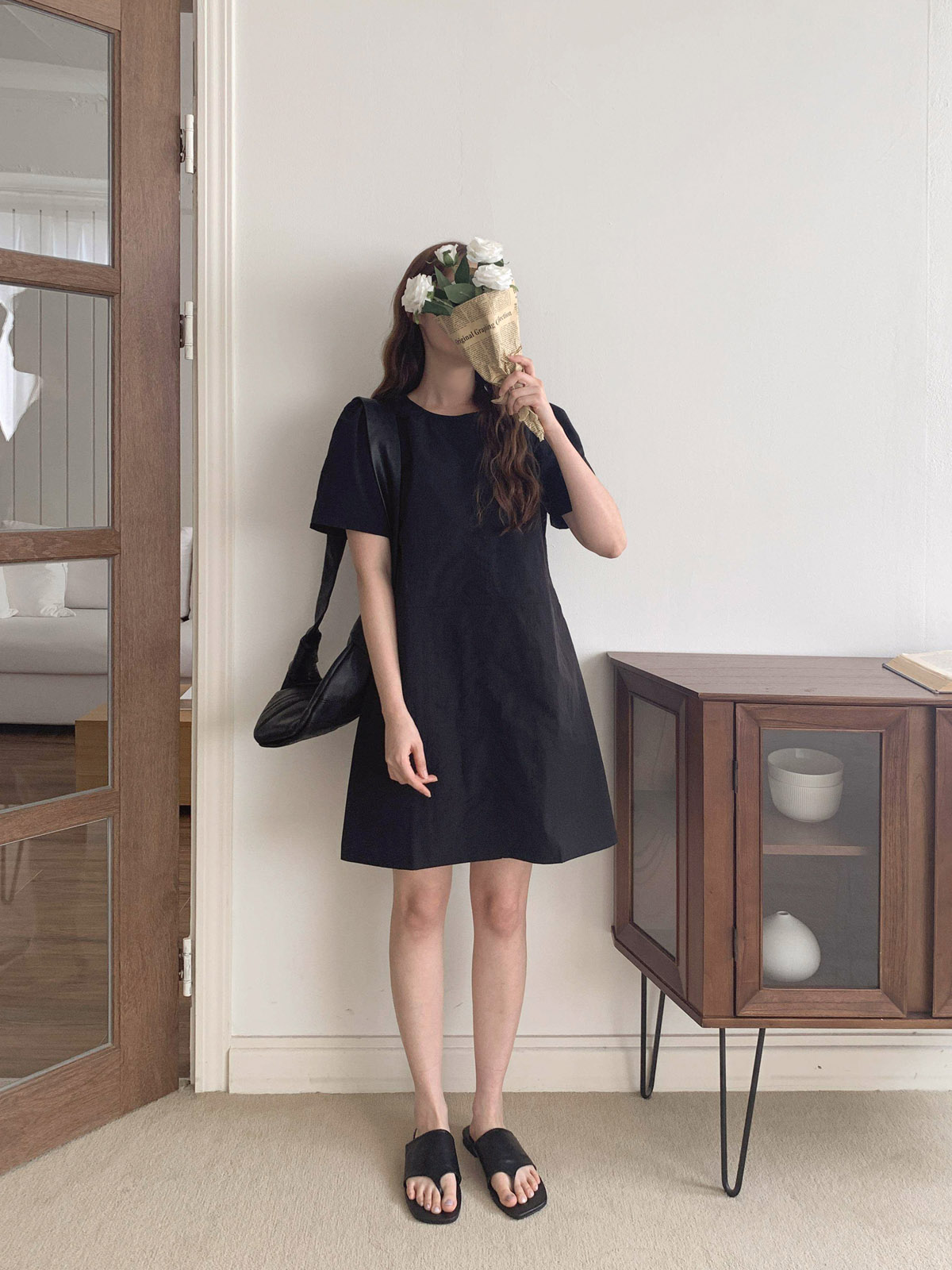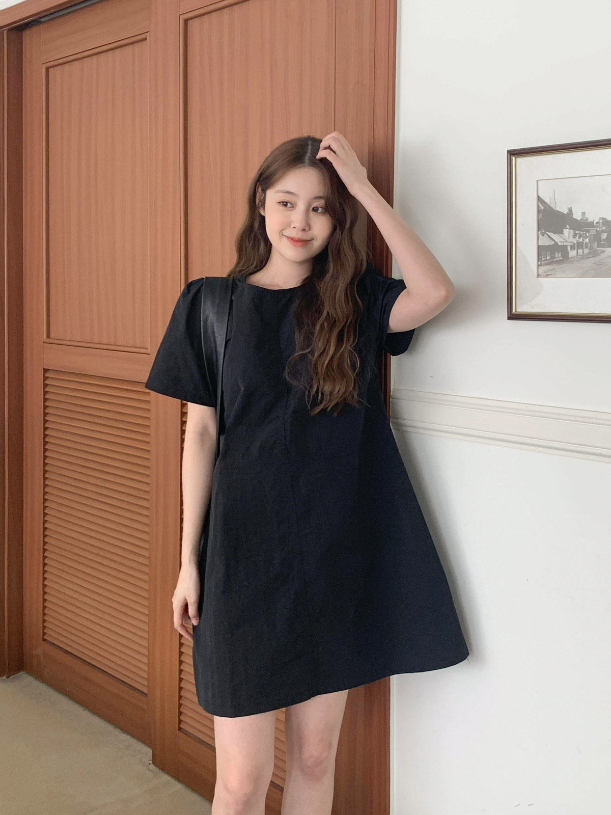 OPS10331K55-(미니/롱 2ver)할린오 바스락 나일론 절개라인 반팔 원피스