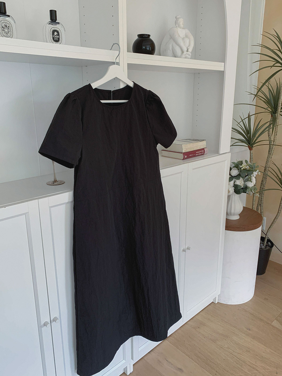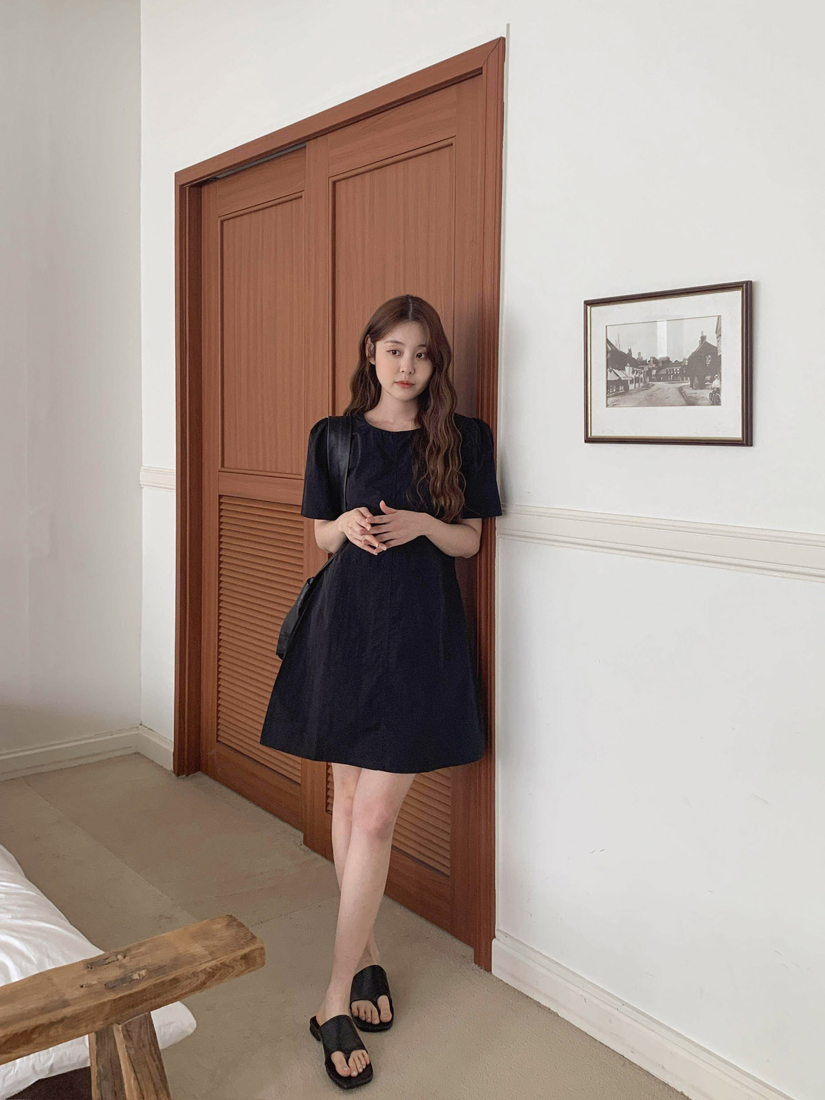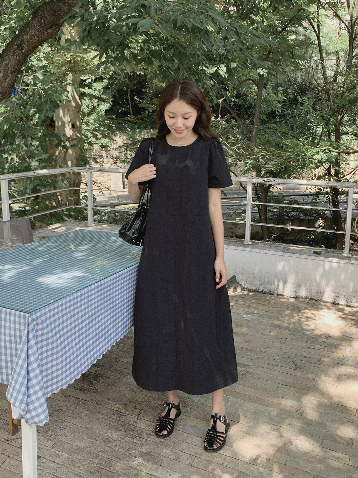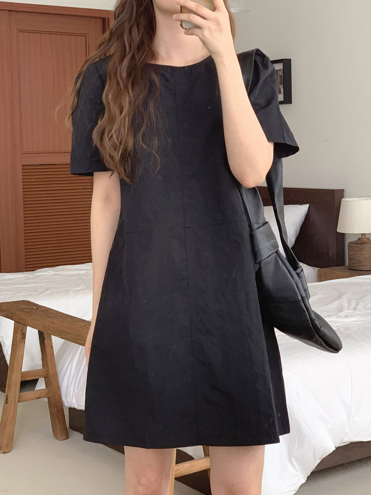 OPS10331K55-(미니/롱 2ver)할린오 바스락 나일론 절개라인 반팔 원피스