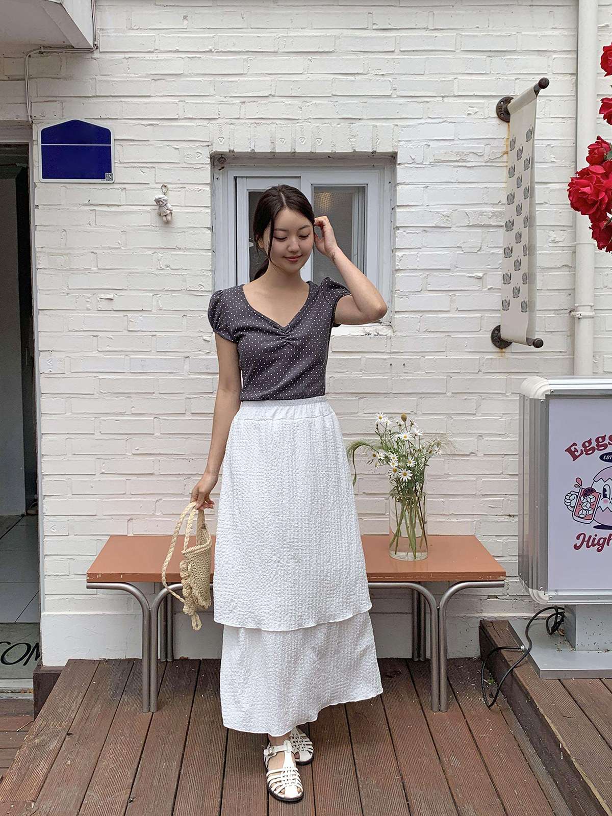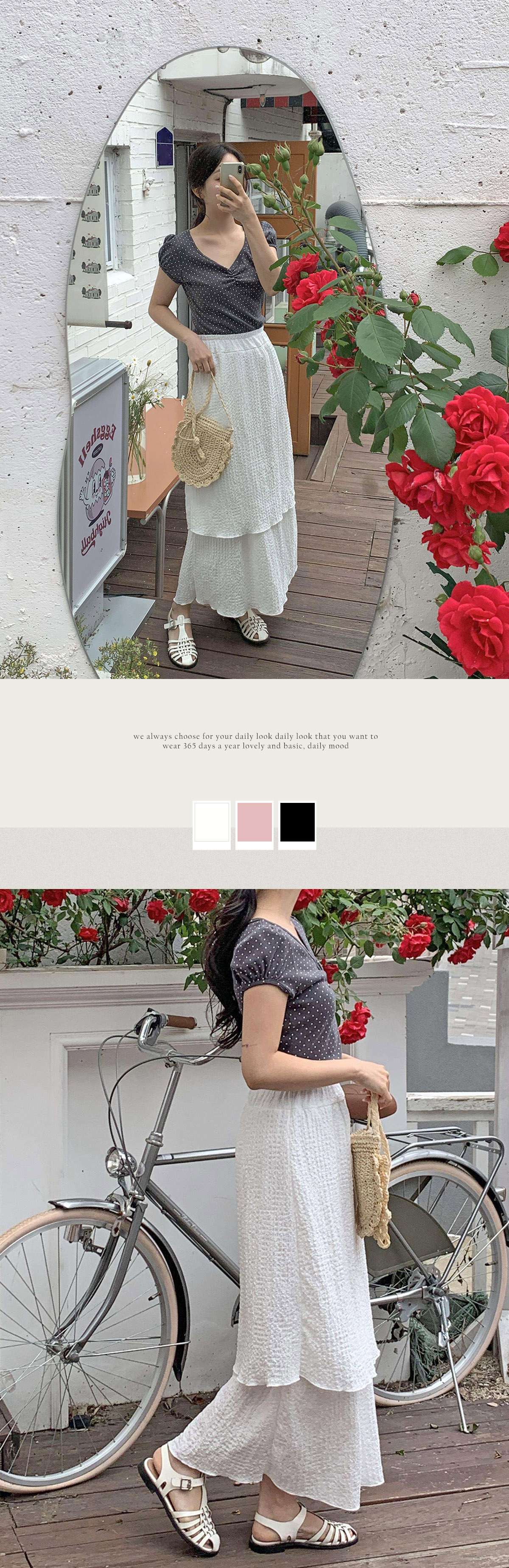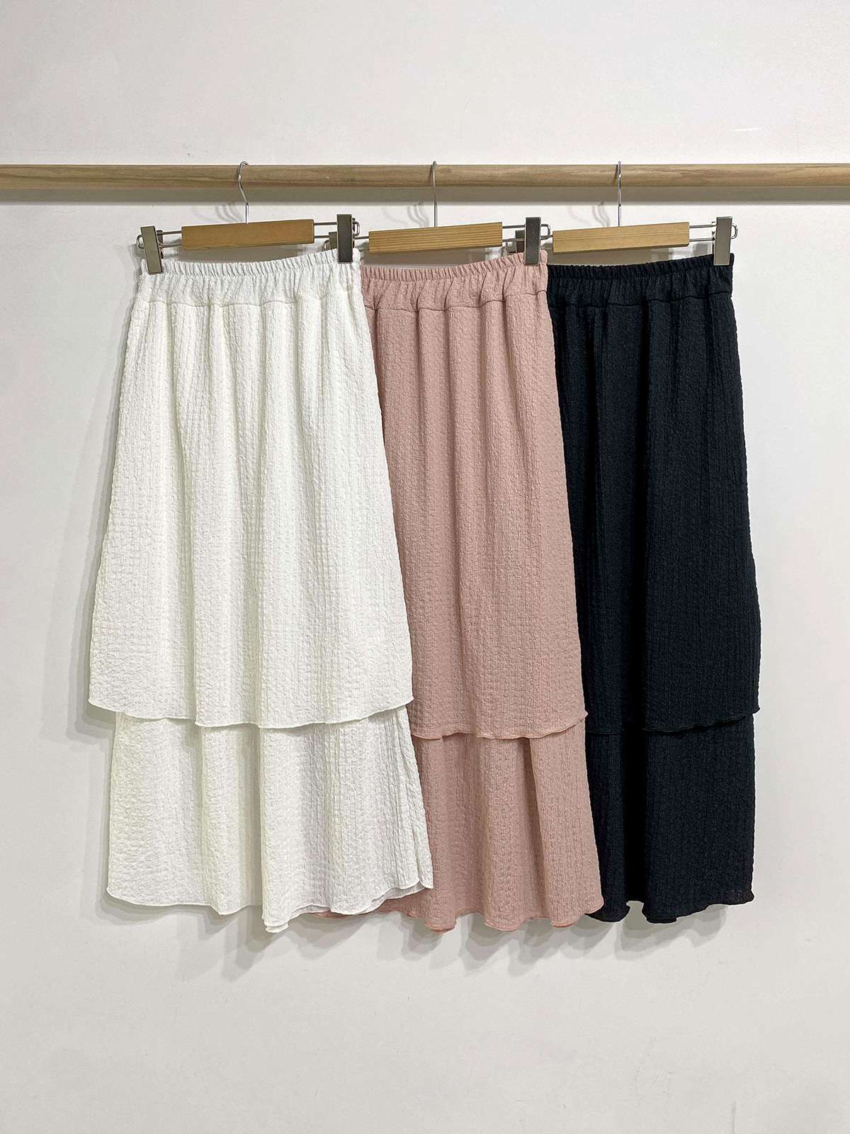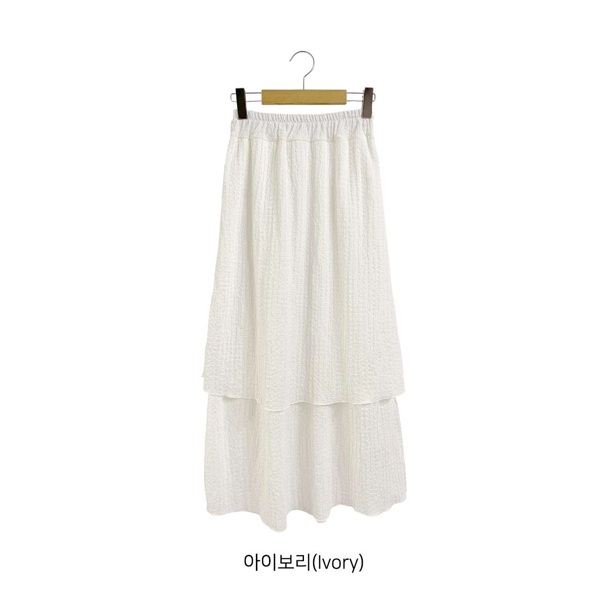 [ SK7227K55-츠리인 엠보 프릴 레이어드 캉캉 밴딩 롱 스커트 ]