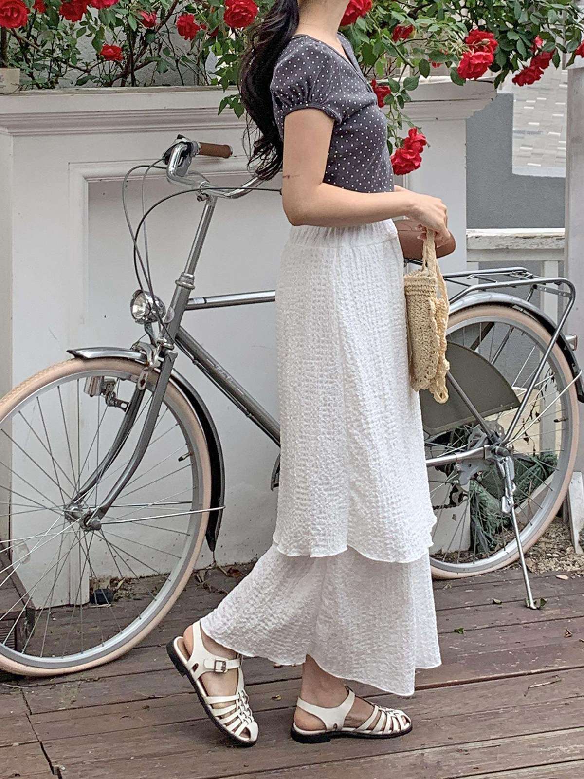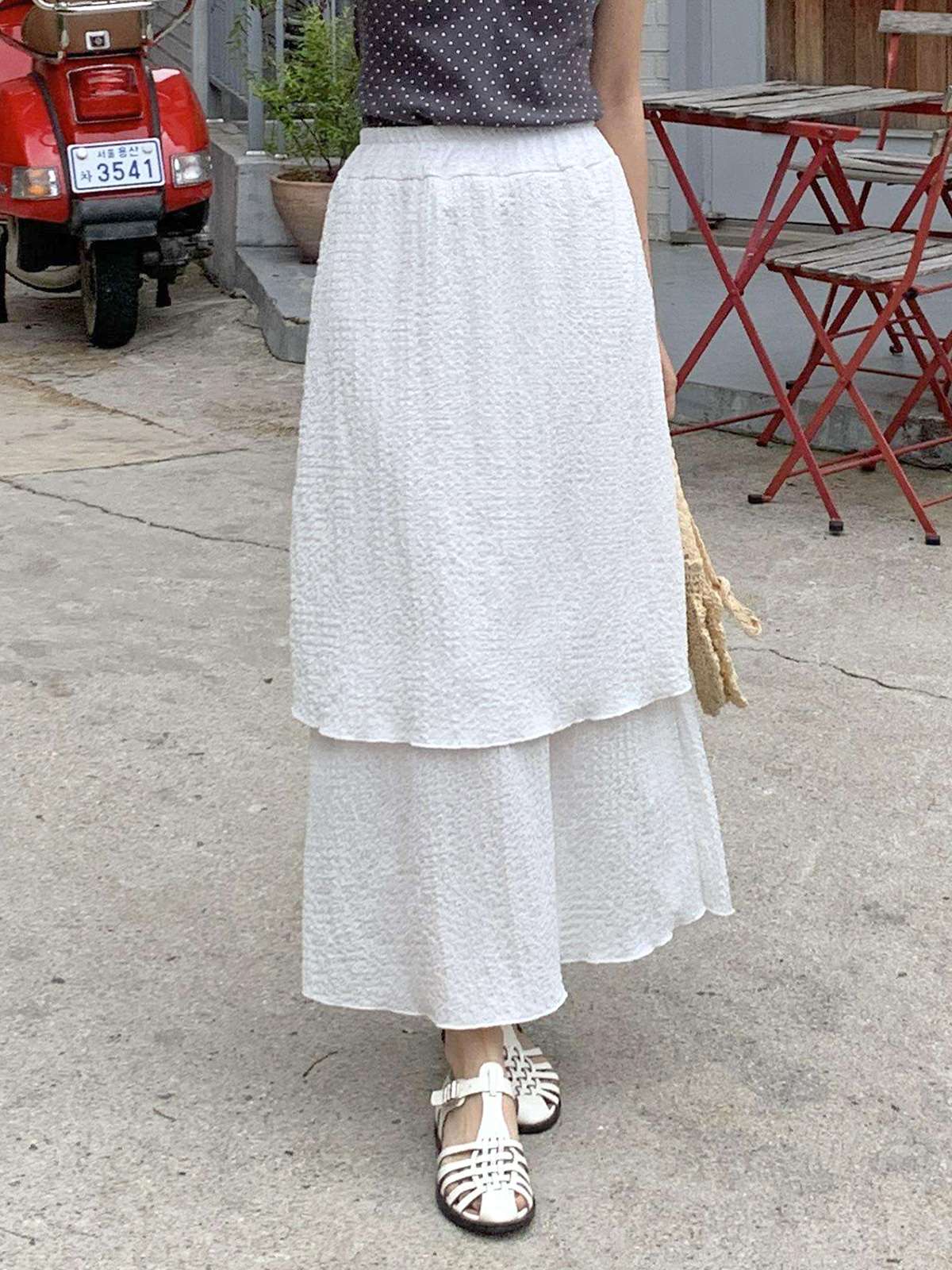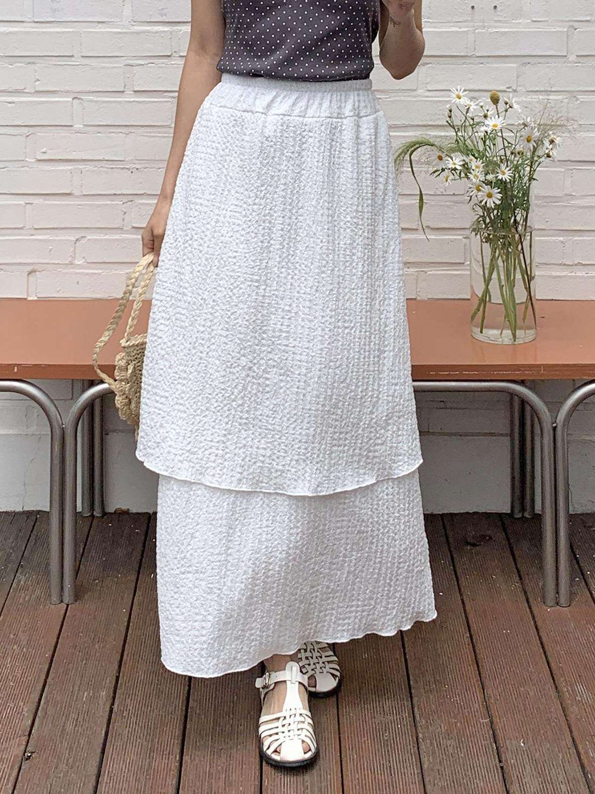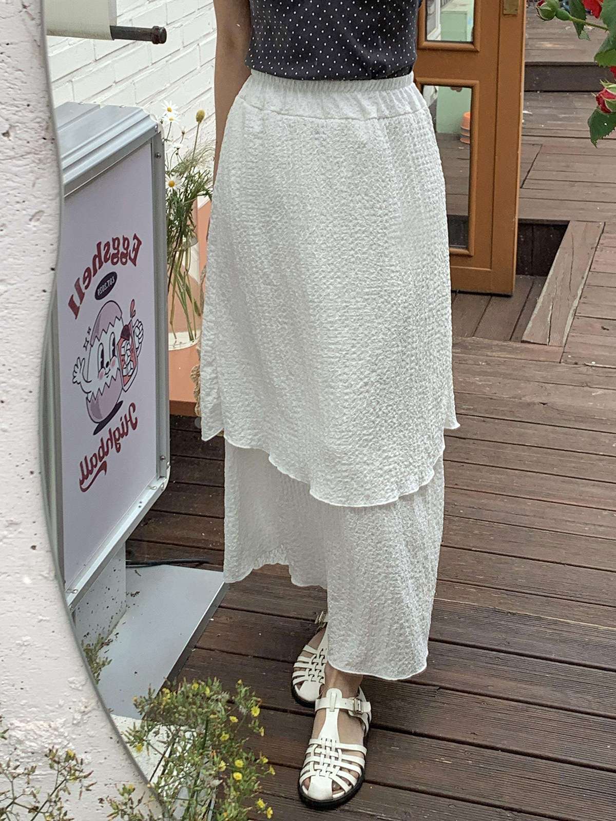 엠보 원단으로 제작된 프릴 캉캉 레이어드 롱 스커트