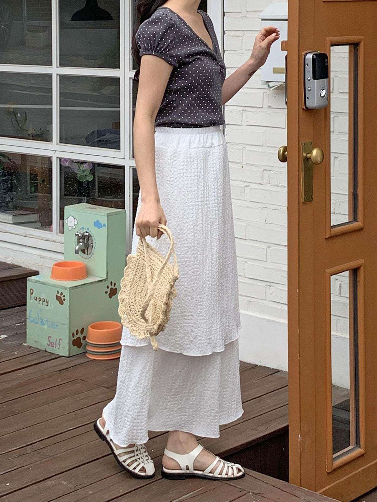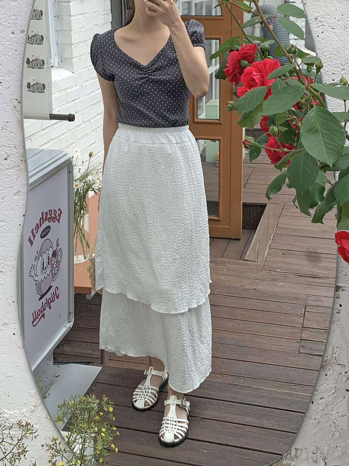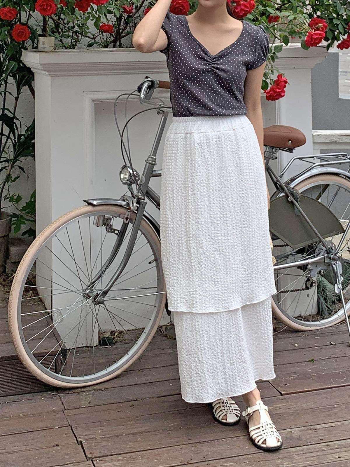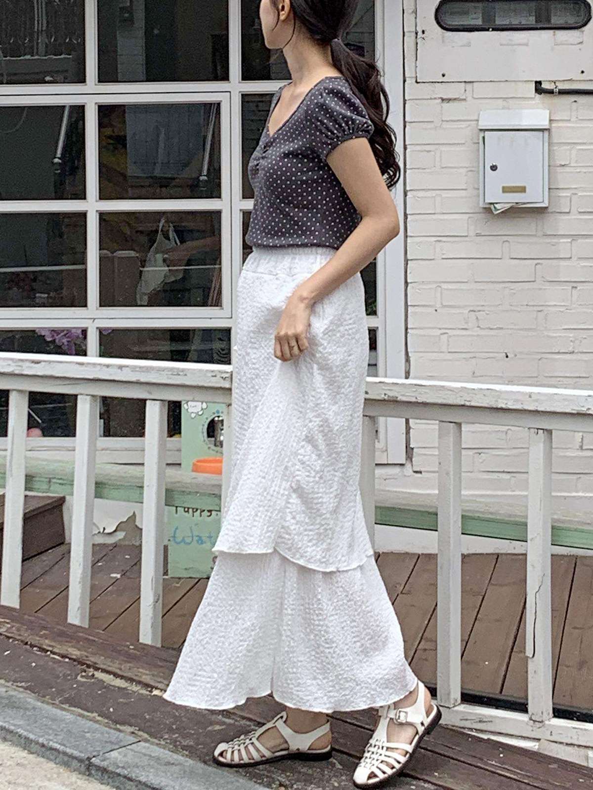 엠보 원단으로 제작된 프릴 캉캉 레이어드 롱 스커트