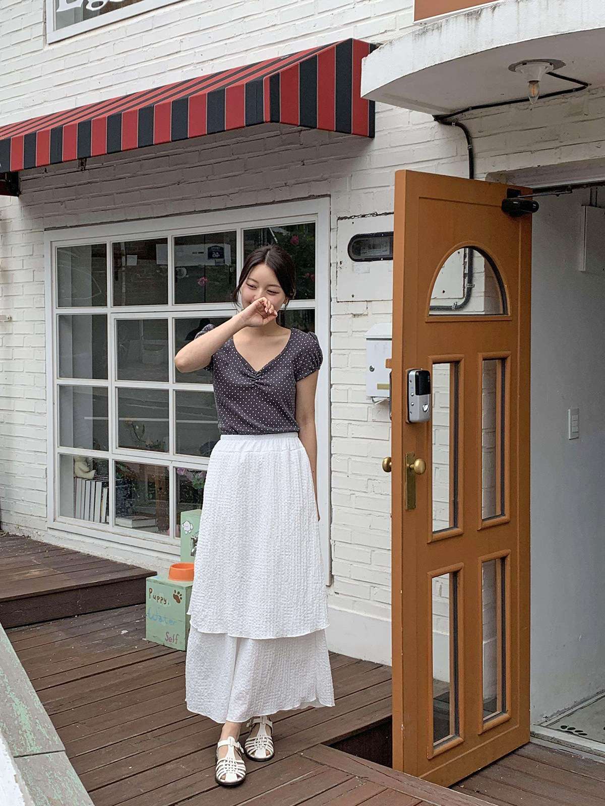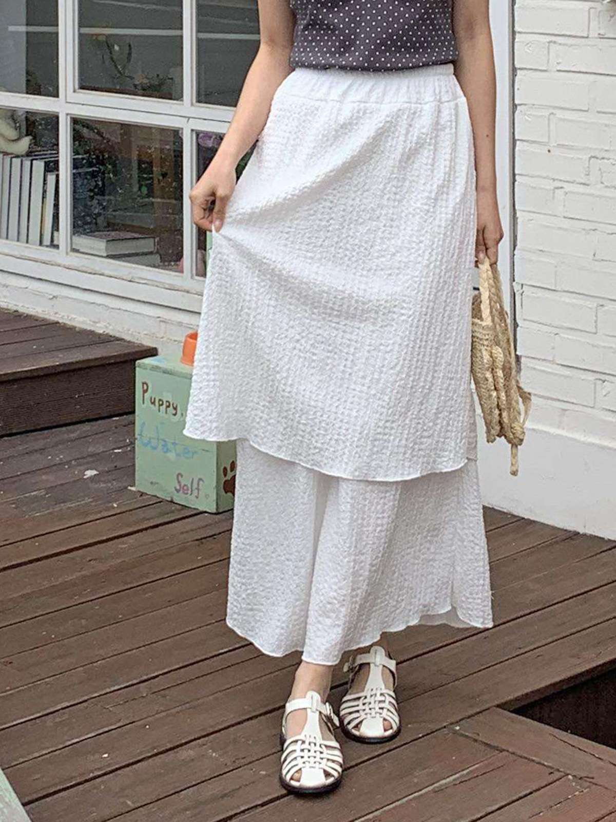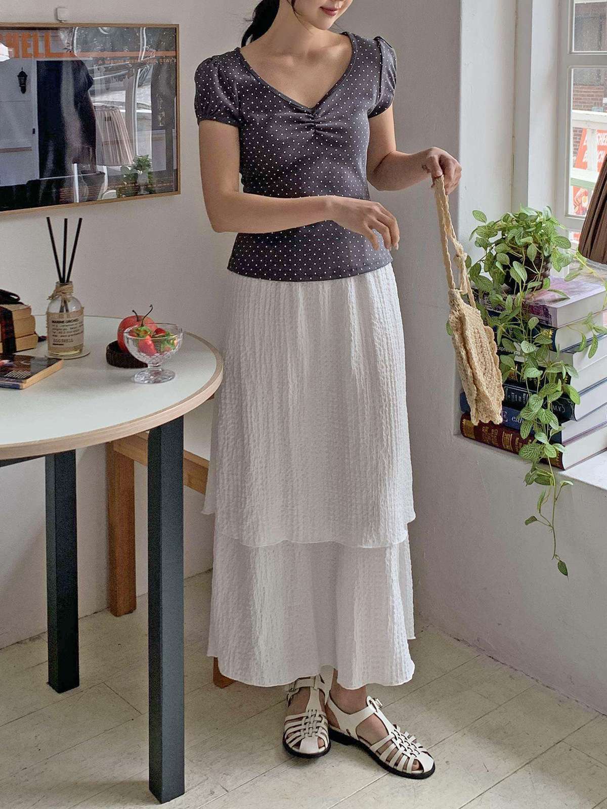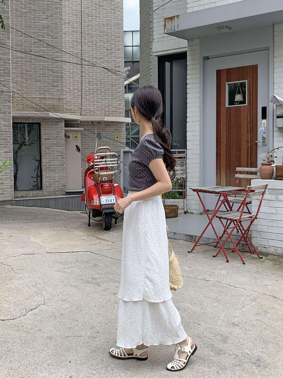 엠보 원단으로 제작된 프릴 캉캉 레이어드 롱 스커트