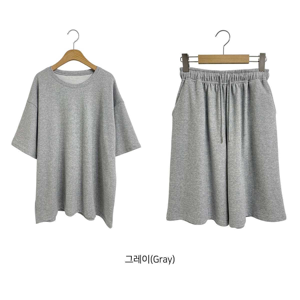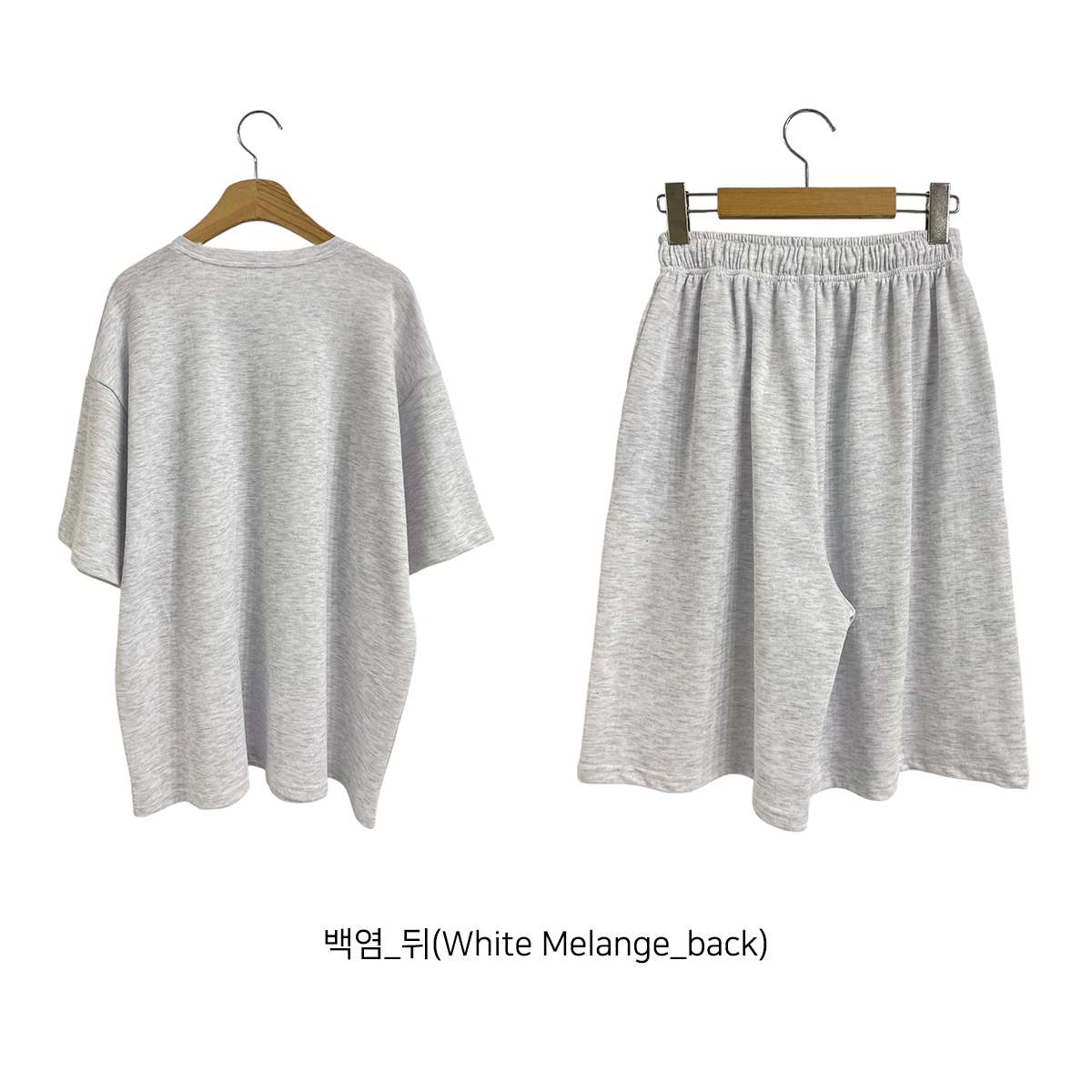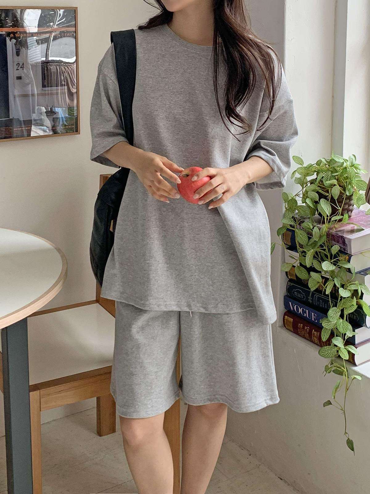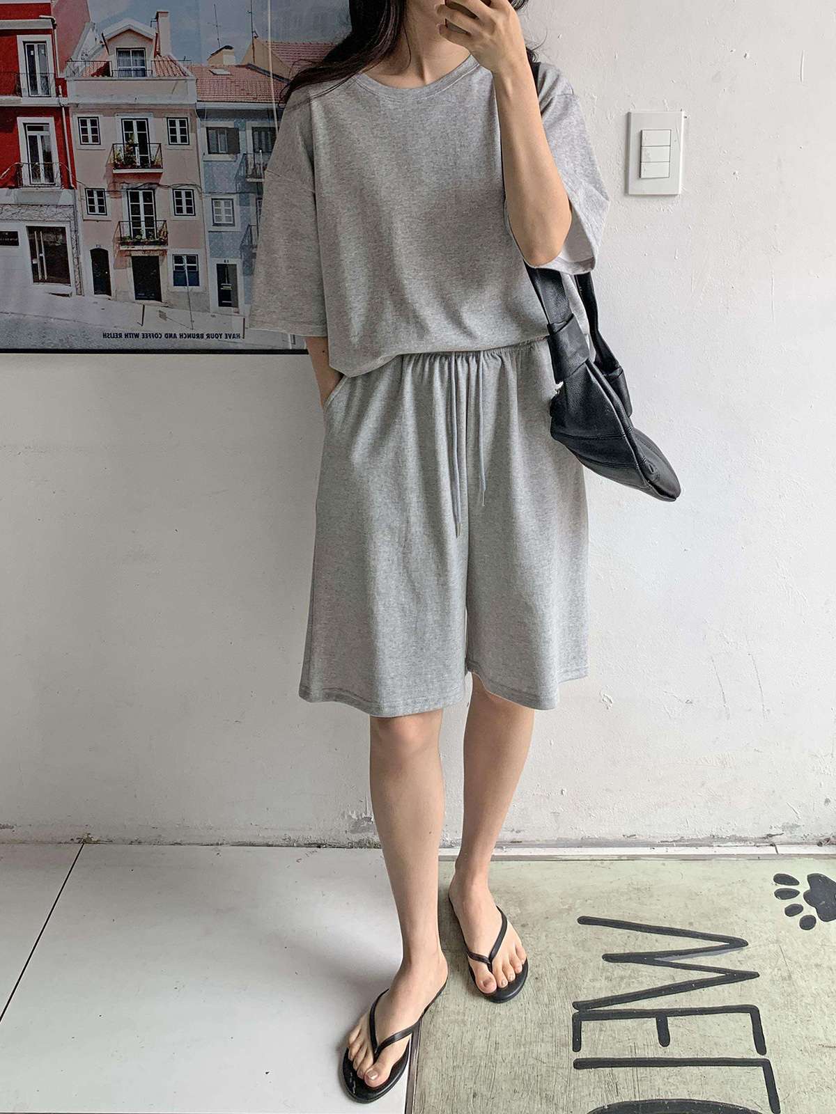 [ SET3735K55-피리인 코튼 오버핏 반팔티 밴딩 버뮤다 팬츠 세트 ]