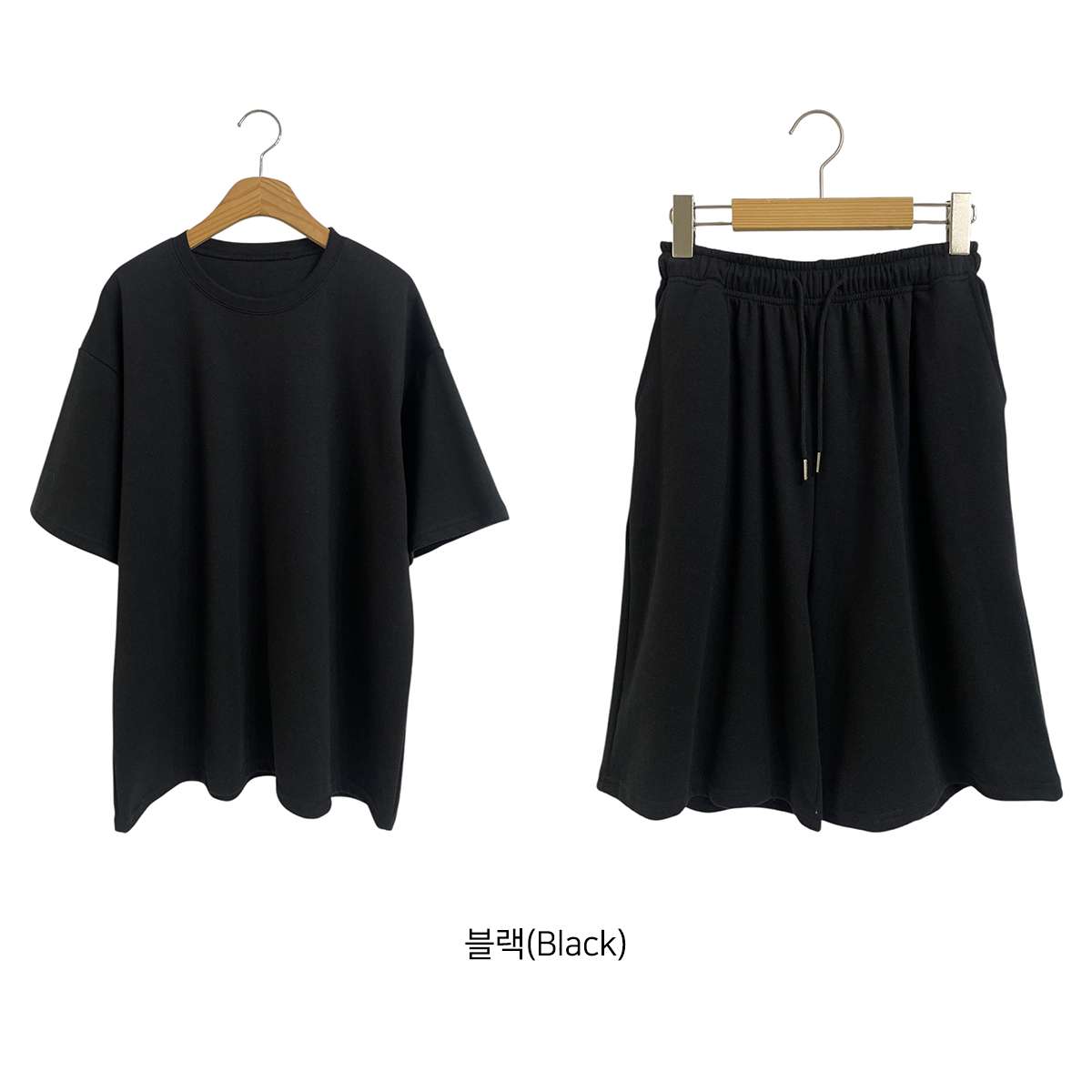 SET3735K55-피리인 코튼 오버핏 반팔티 밴딩 버뮤다 팬츠 세트