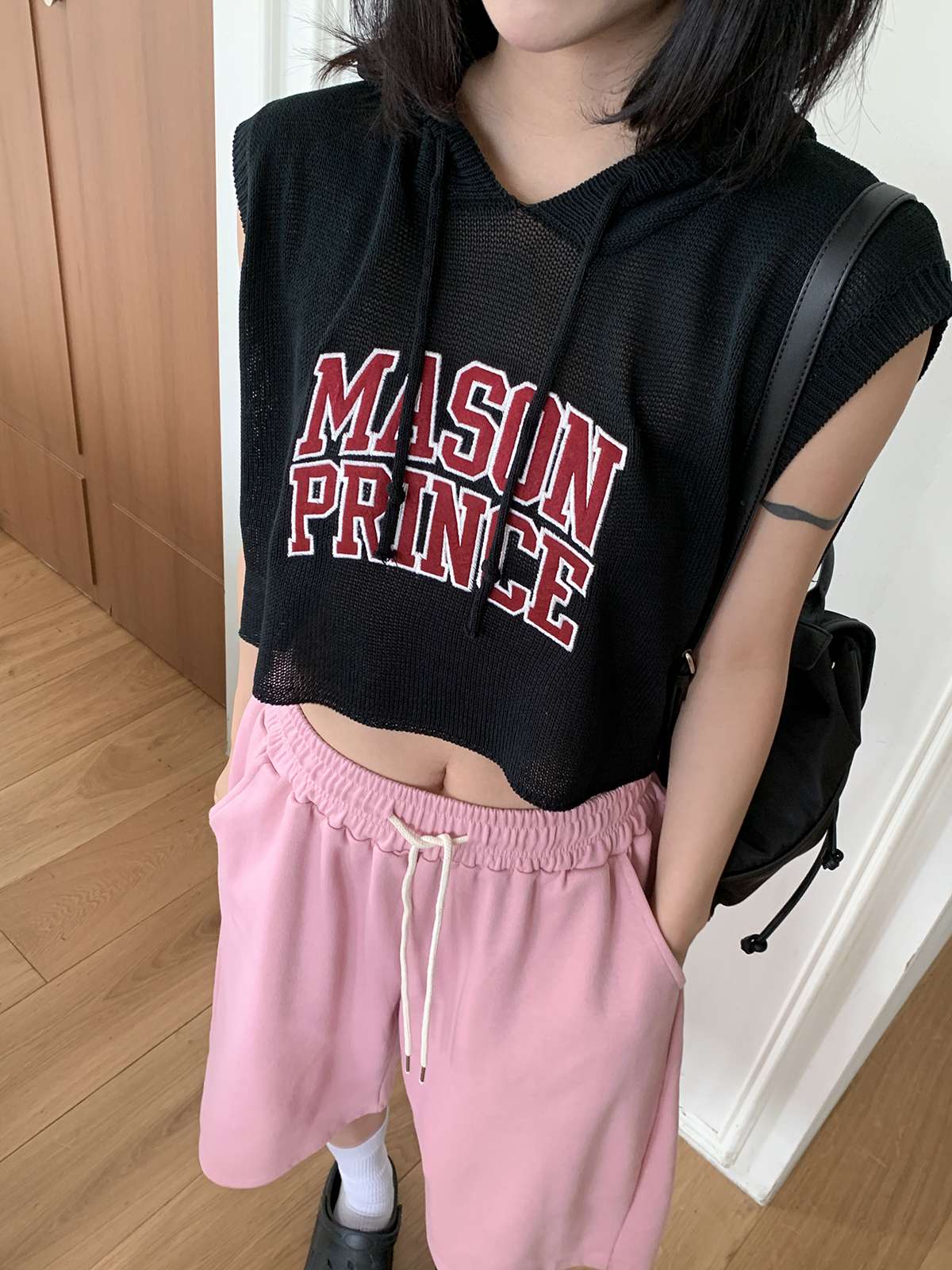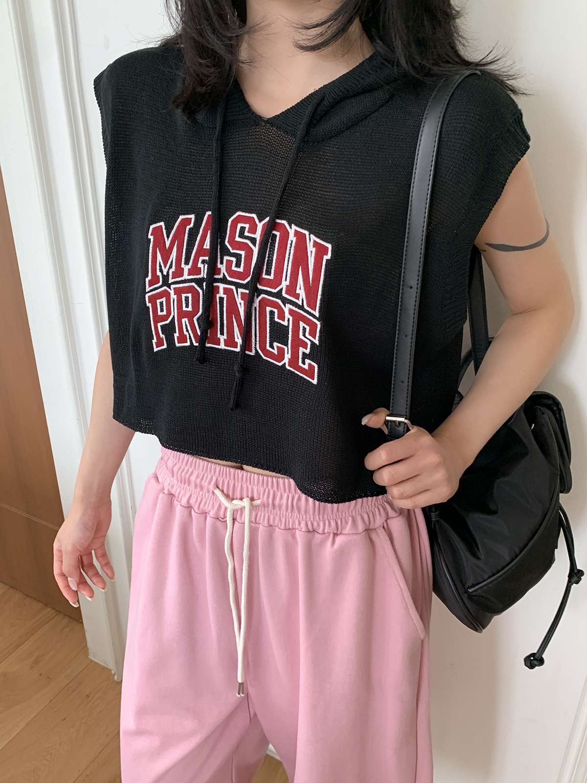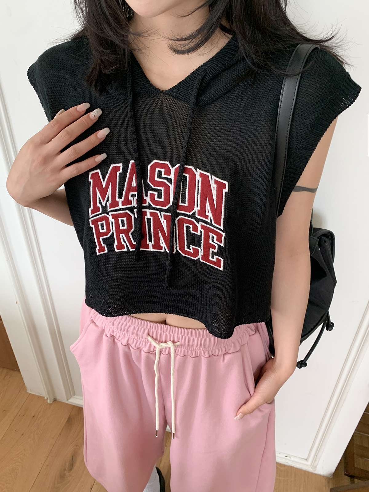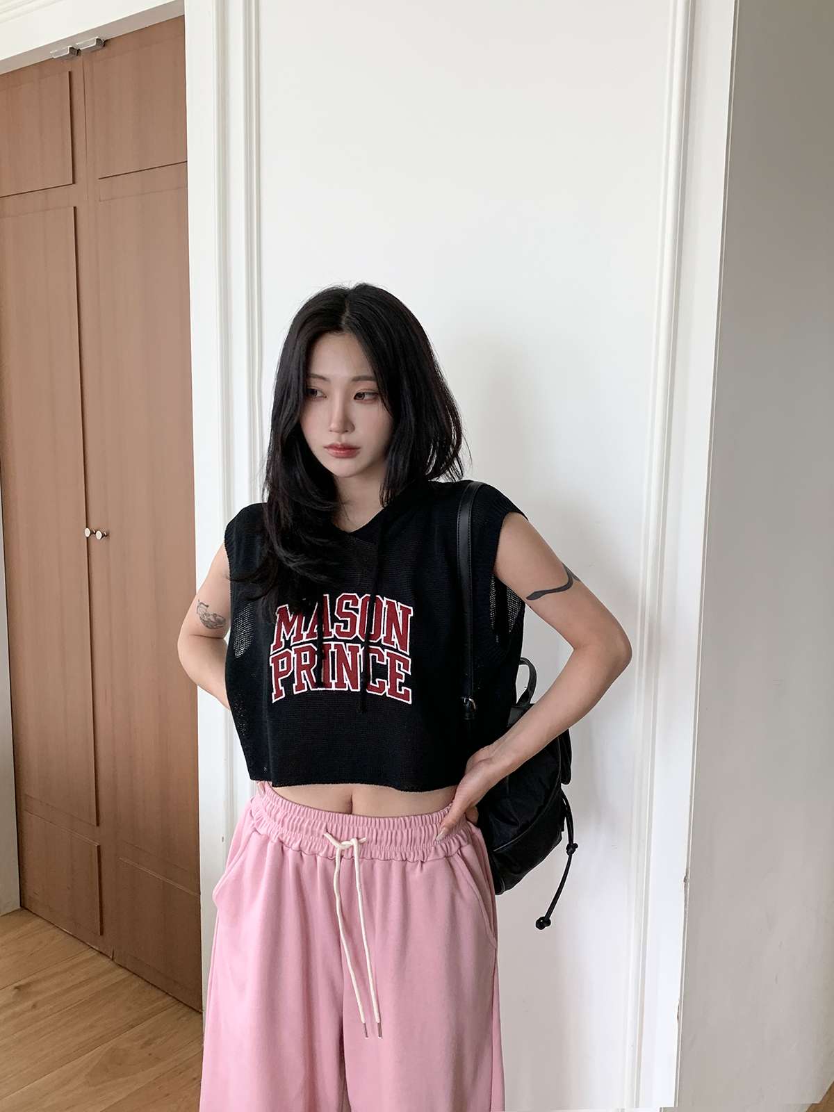 NT5950K55-케이원 메이슨 레터링 크롭 후드 니트