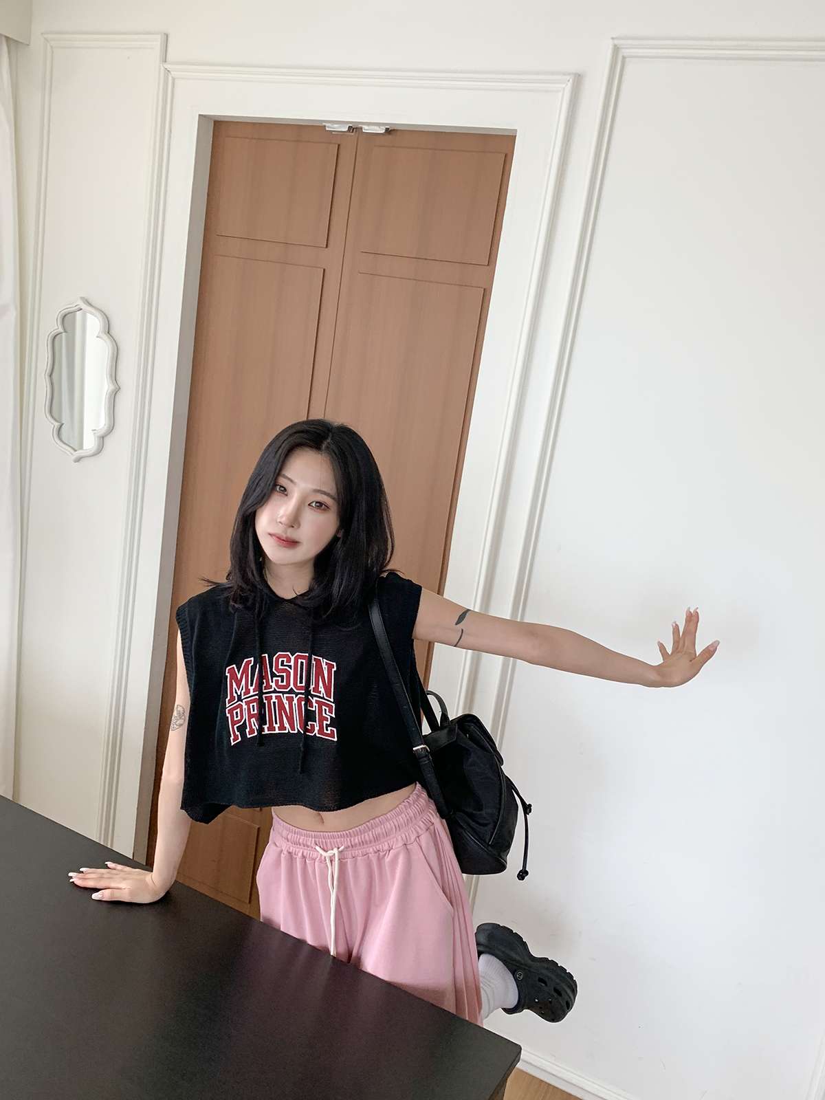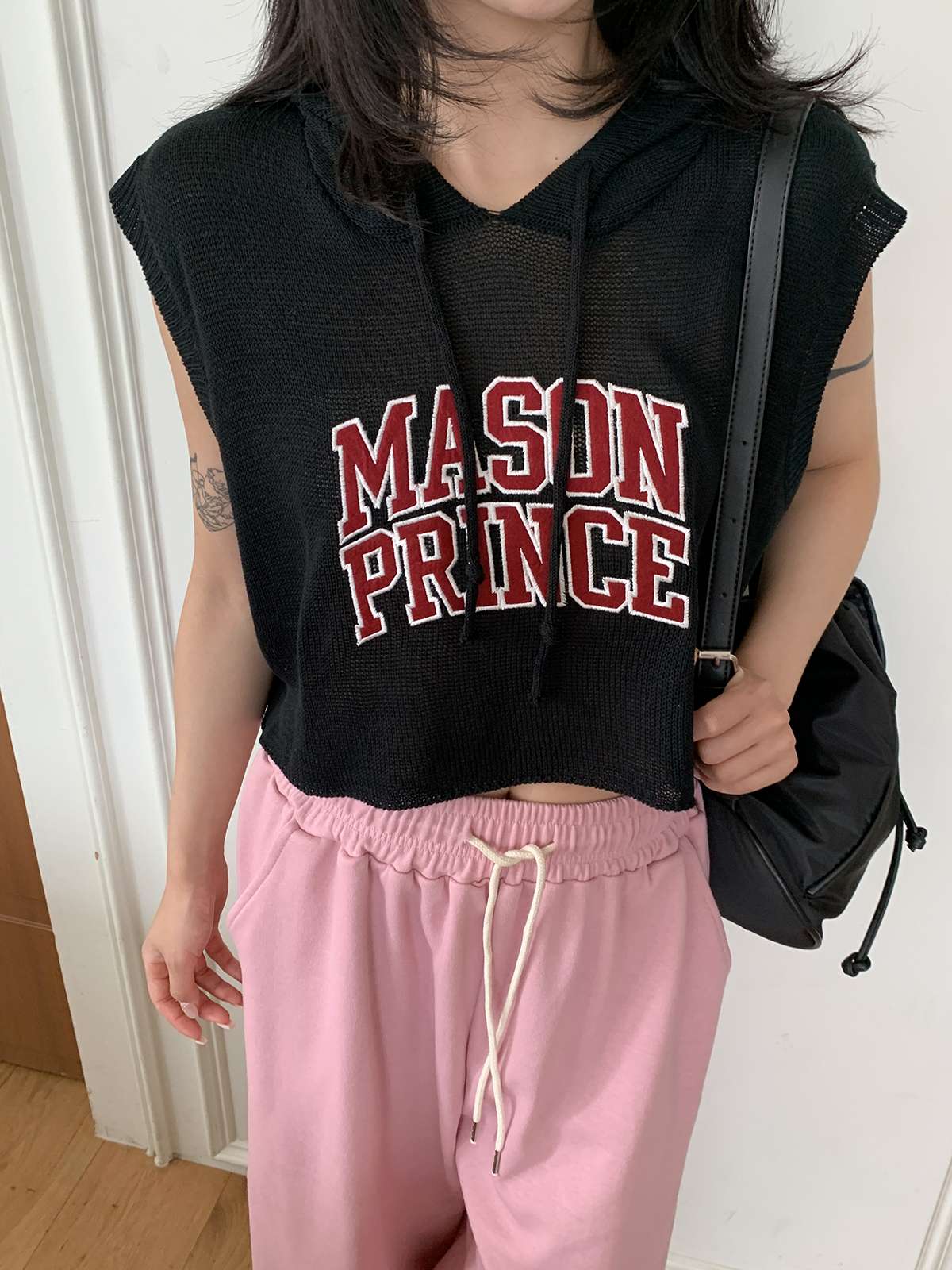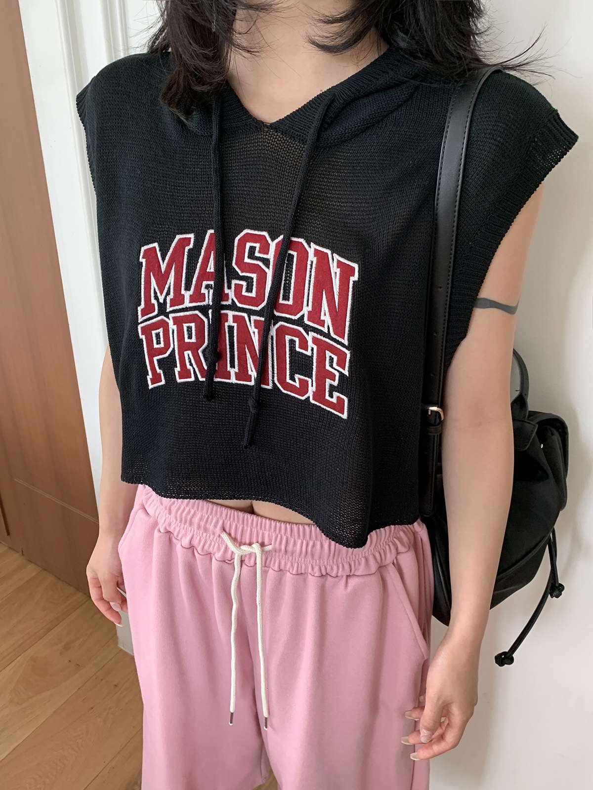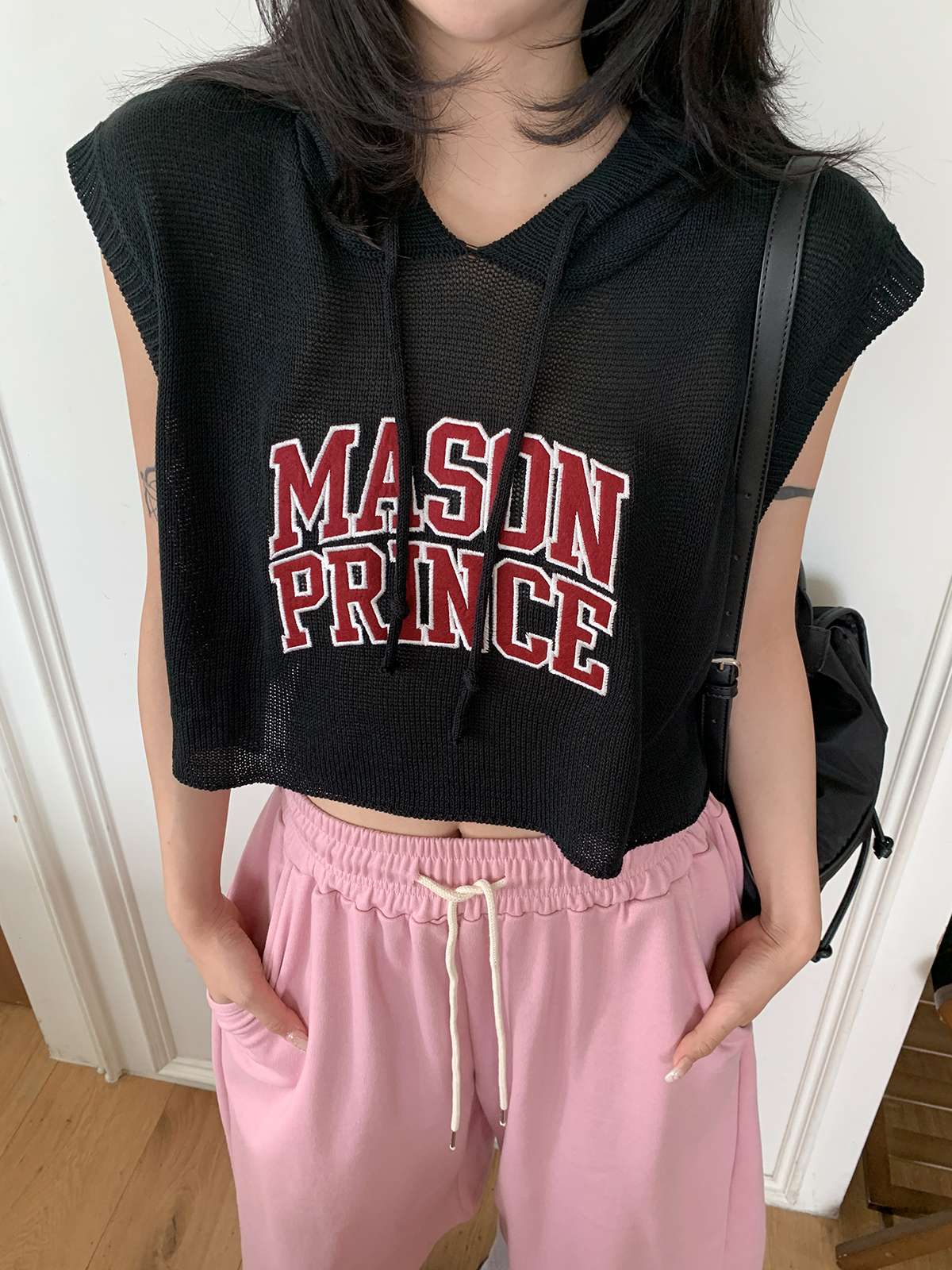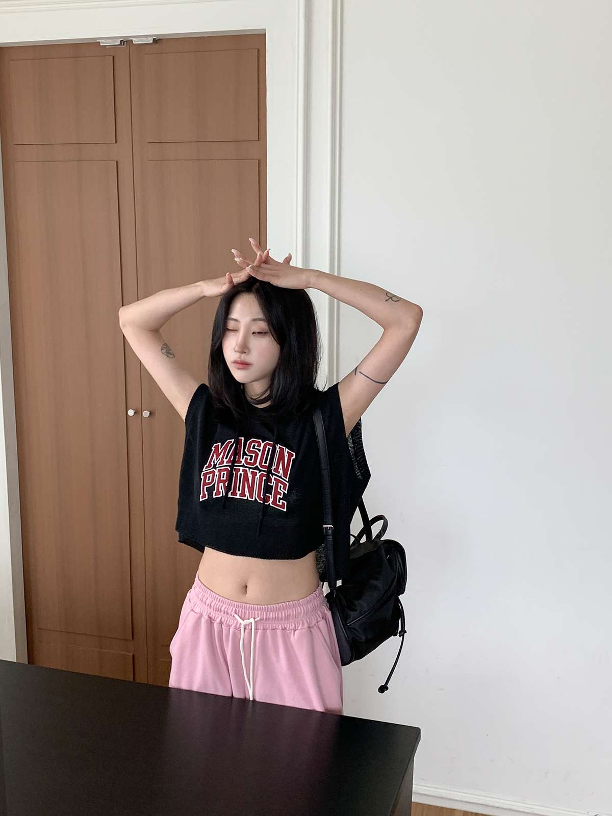NT5950K55-케이원 메이슨 레터링 크롭 후드 니트