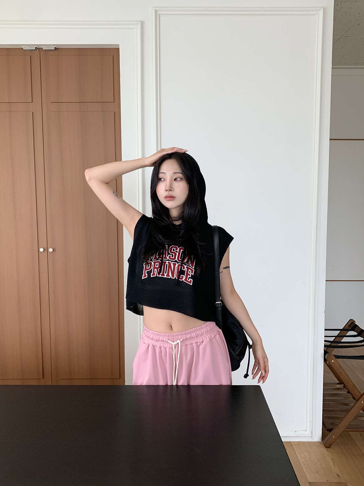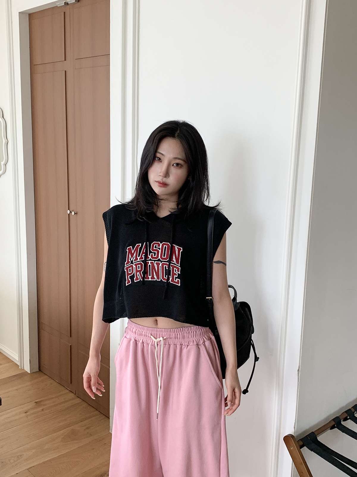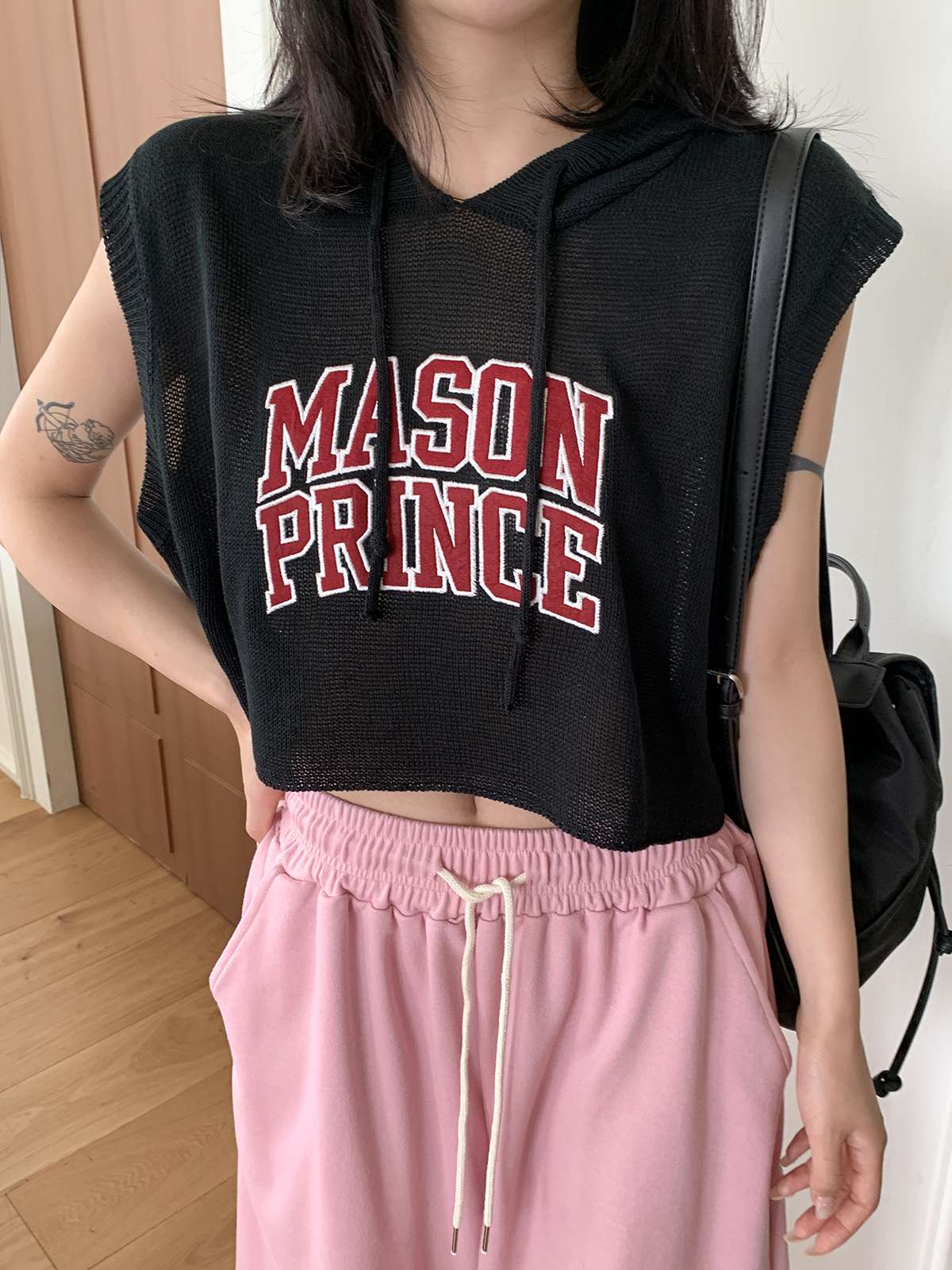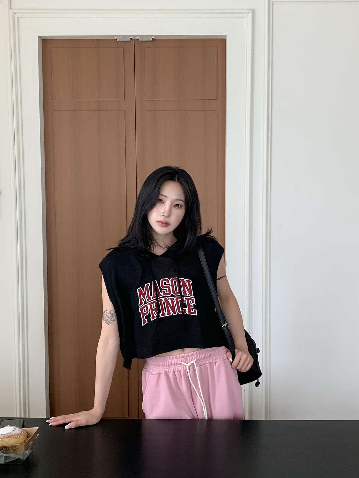 NT5950K55-케이원 메이슨 레터링 크롭 후드 니트