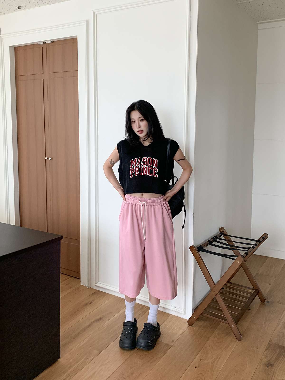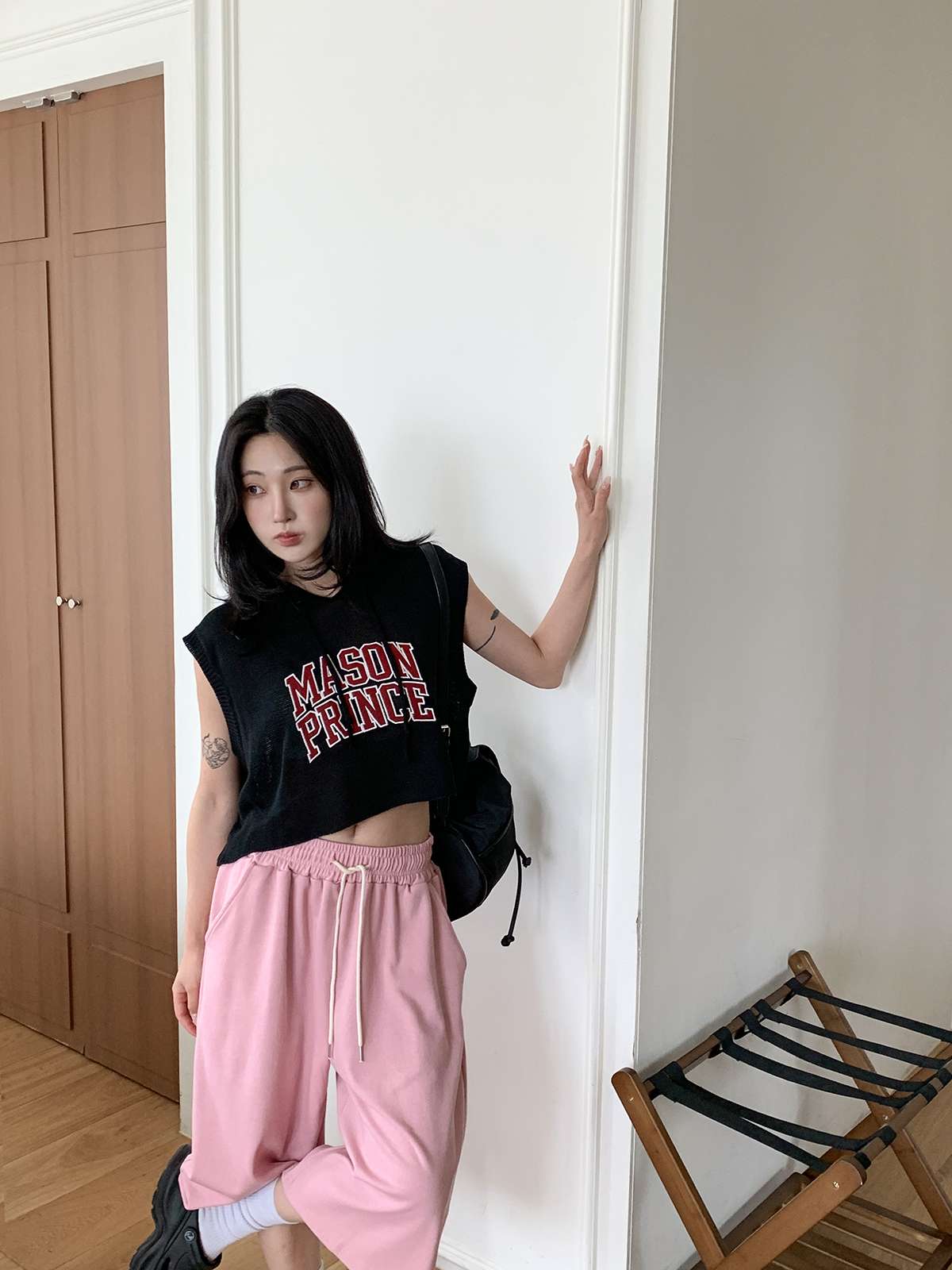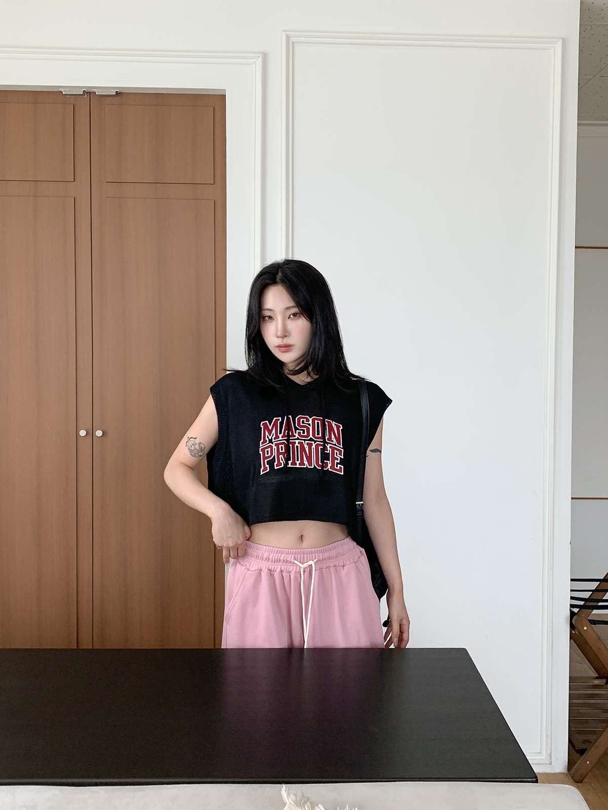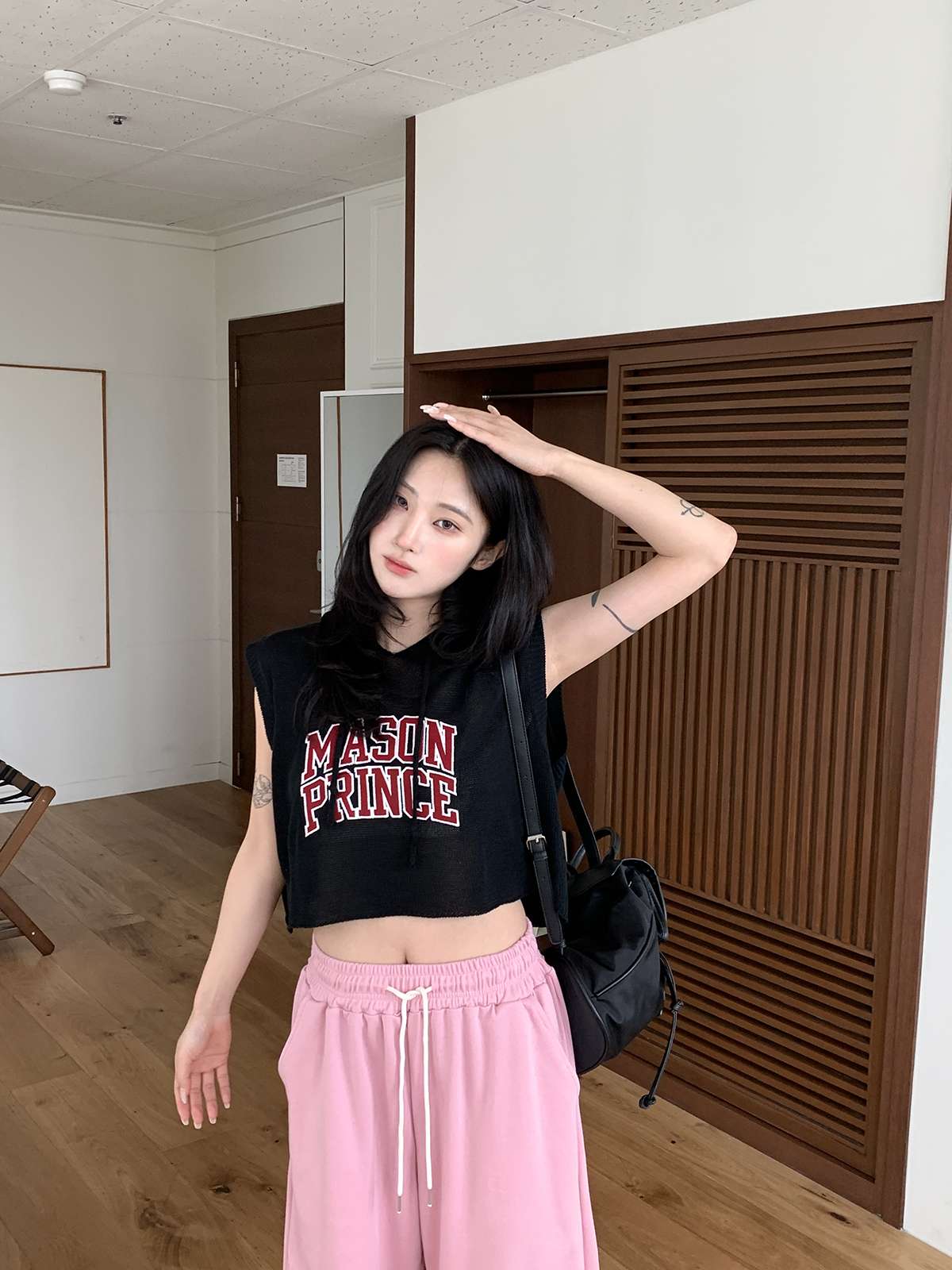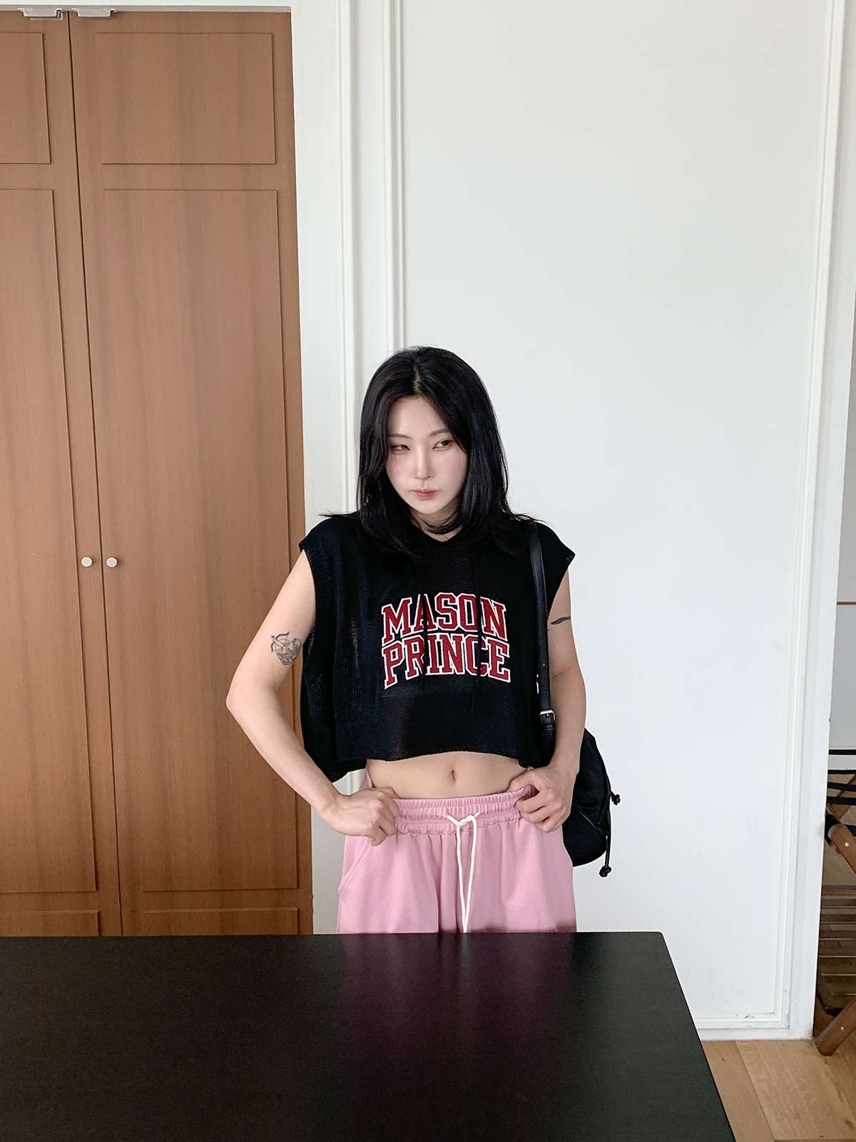 NT5950K55-케이원 메이슨 레터링 크롭 후드 니트