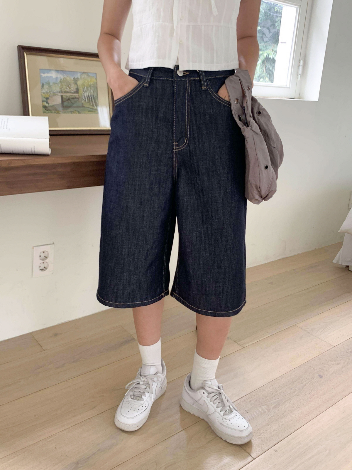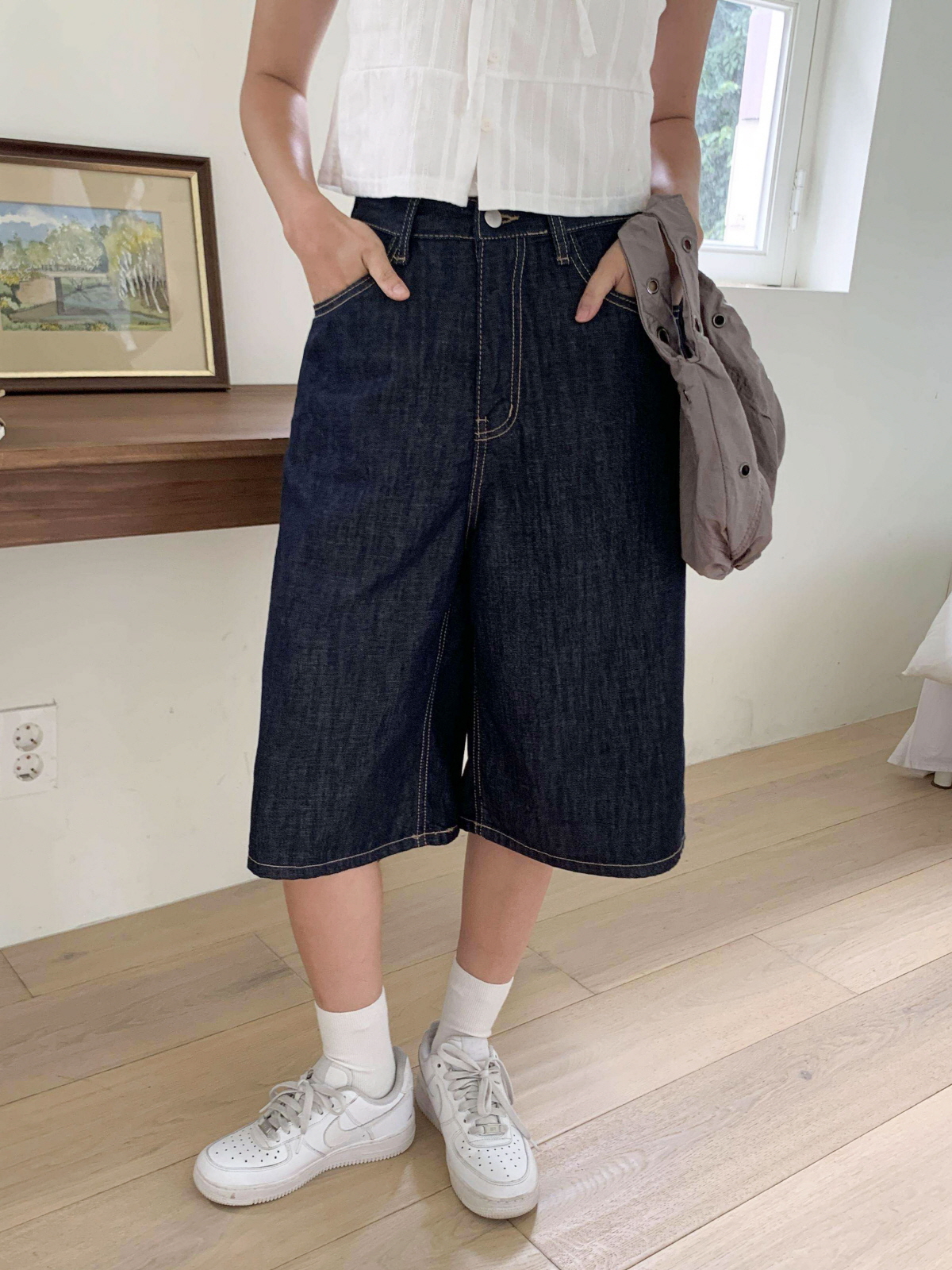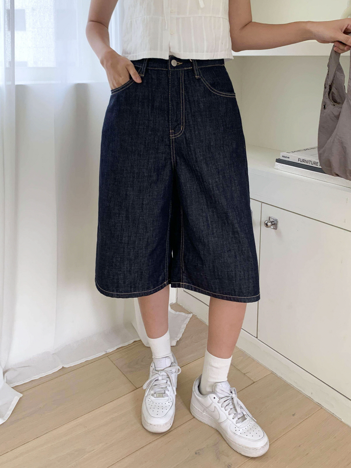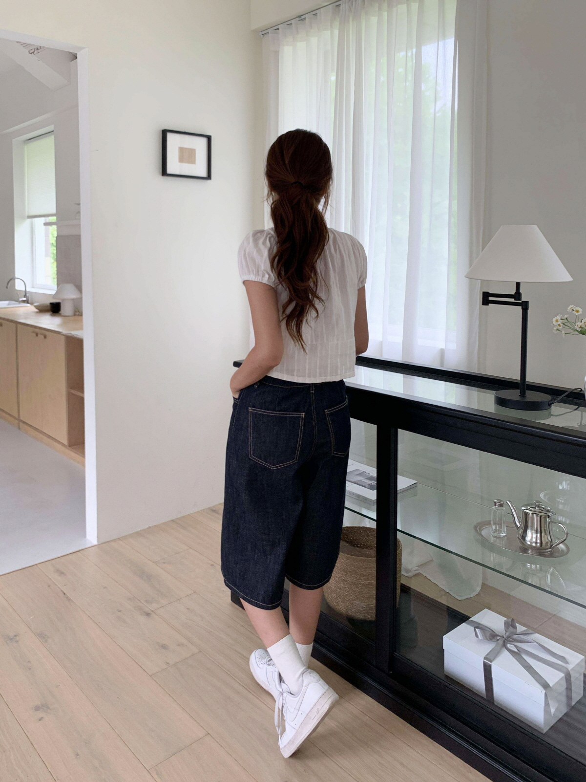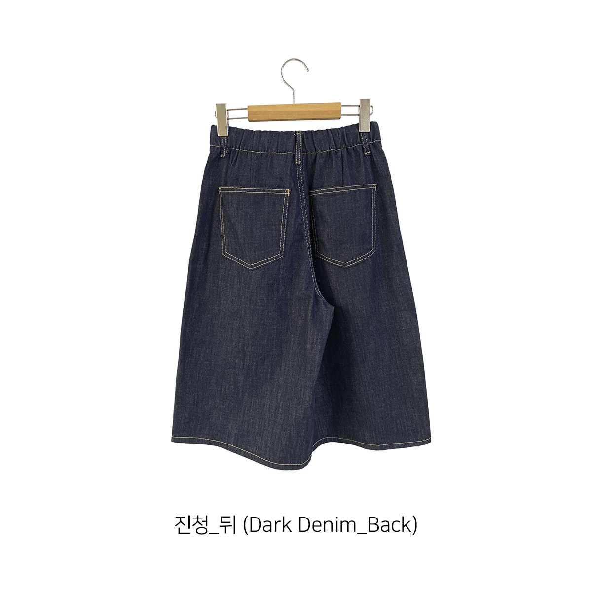PT15291K57-유진리 스티치 포인트 뒷밴딩 데님 버뮤다 팬츠