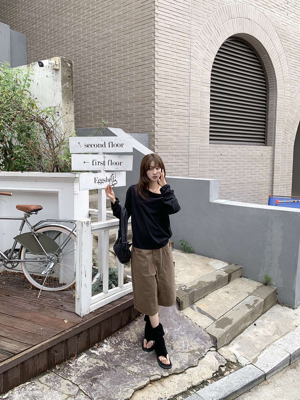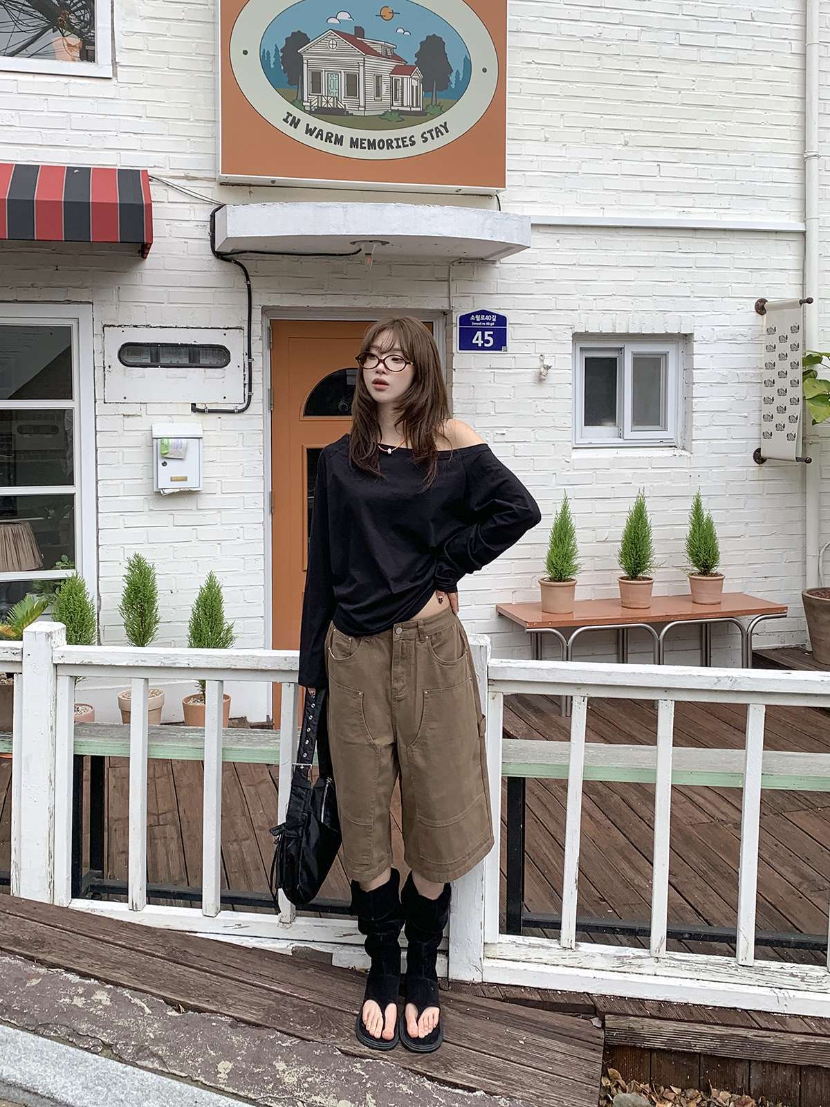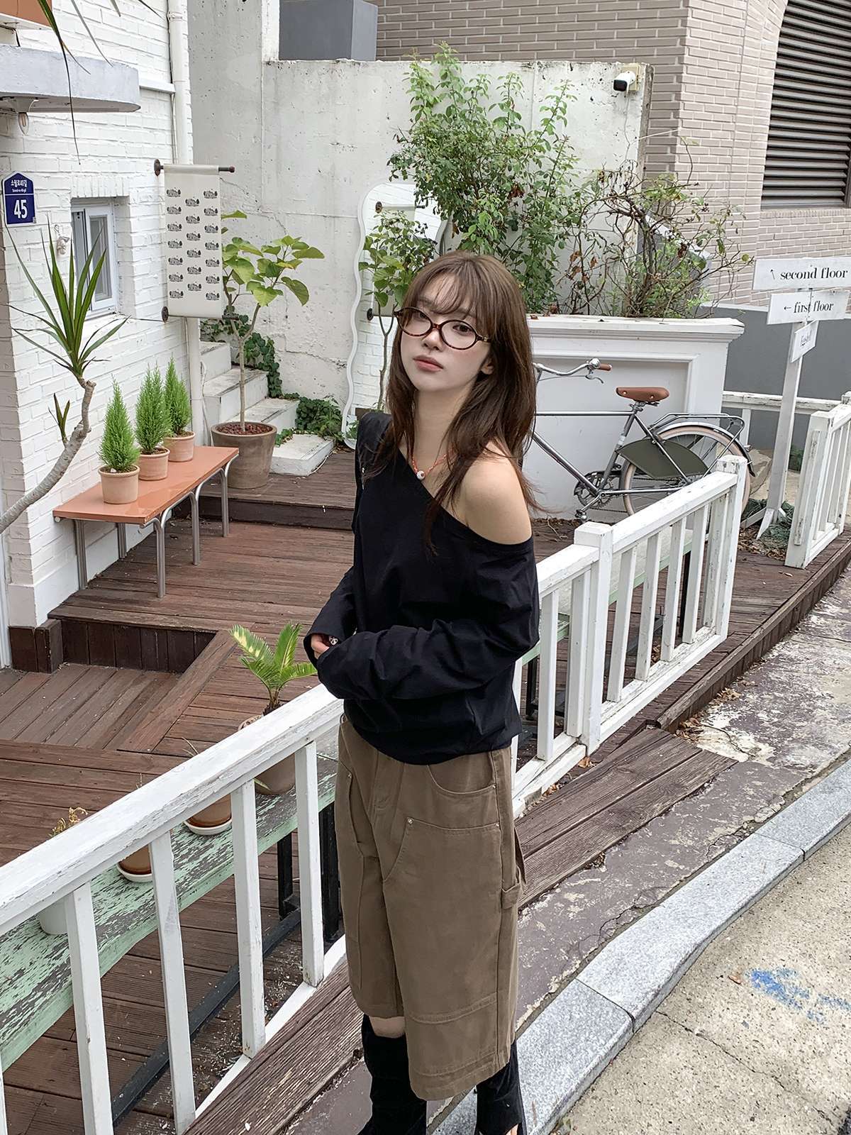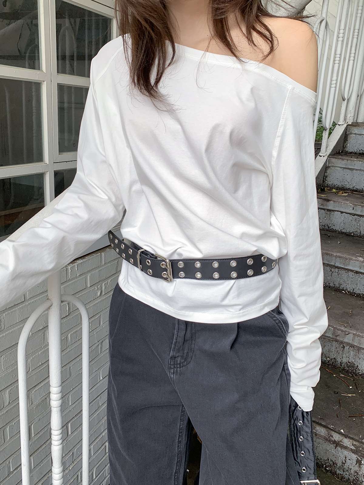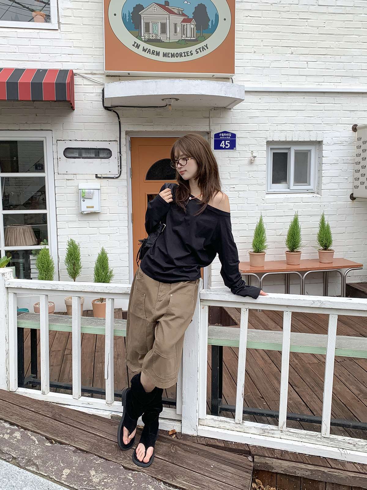 [ T16998C57-이지댄 원 오프숄더 루즈핏 무지 긴팔 티셔츠 ]