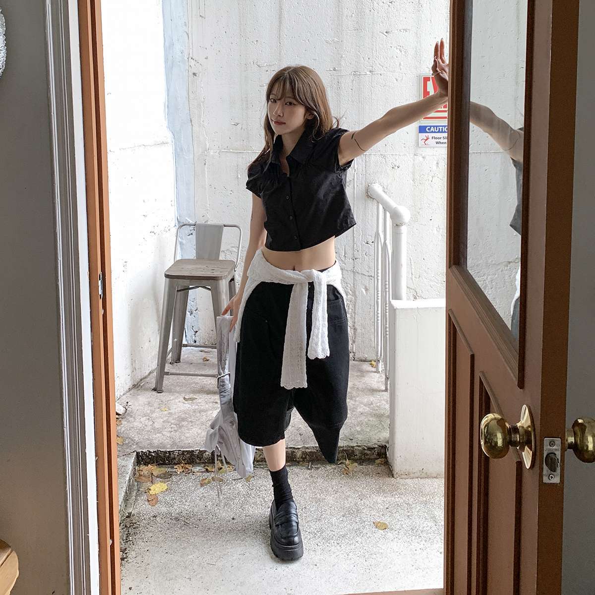 [ PT15312K57-아린치 코튼 데님 와이드 버뮤다 팬츠 ]