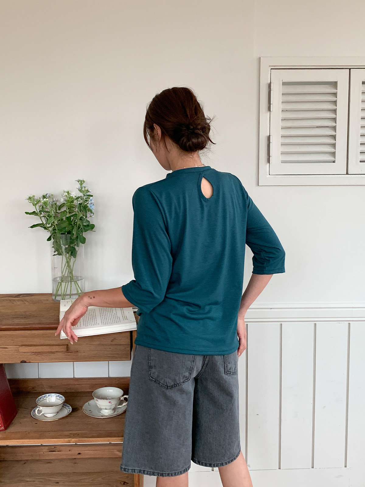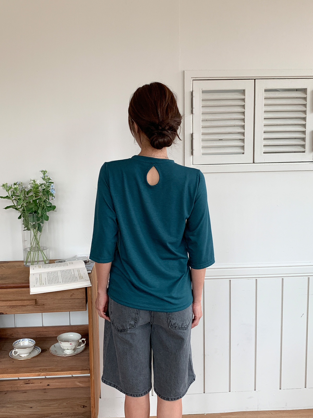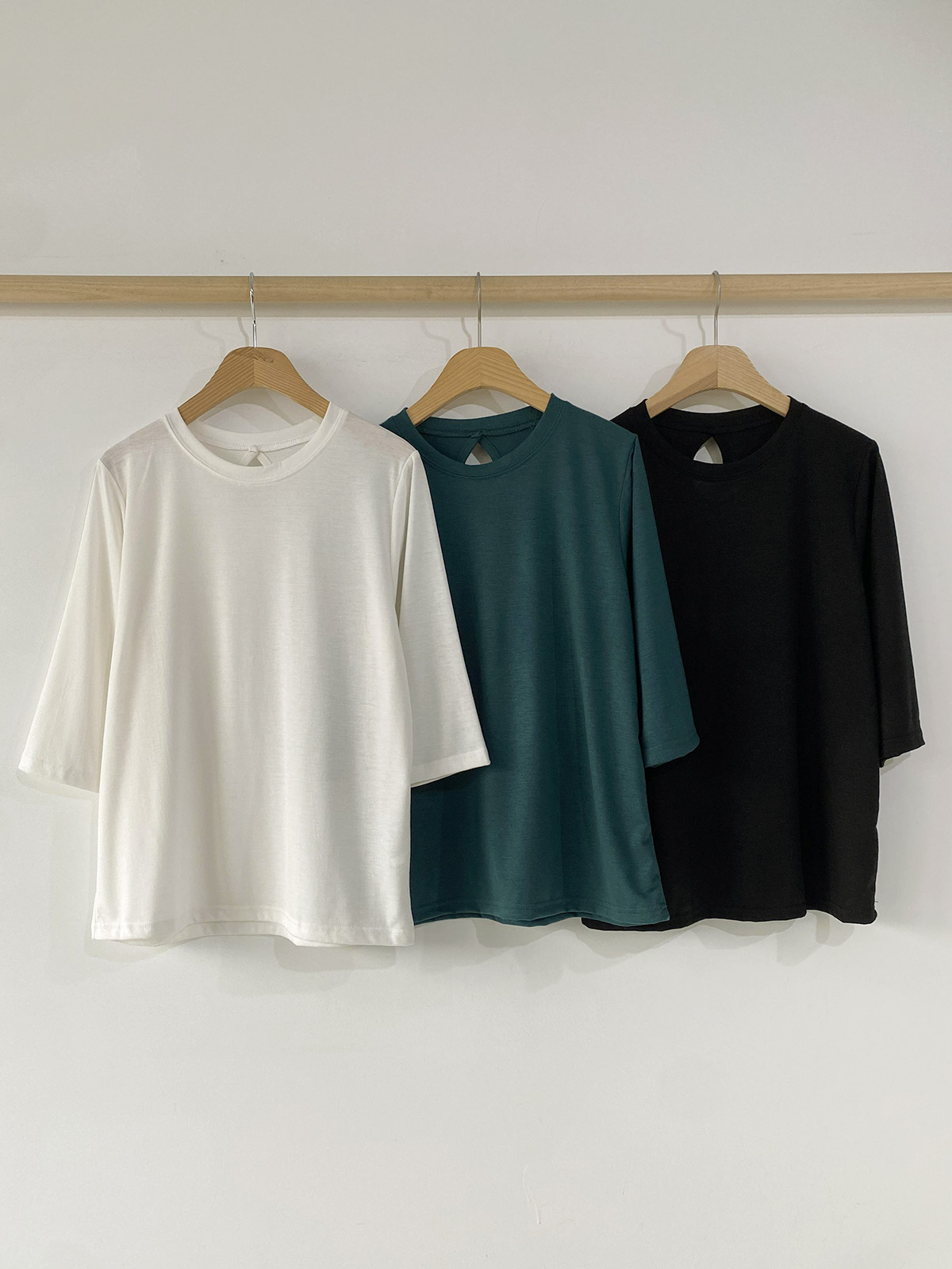 [ T17021K57-인벤션 스판 뒷트임 8부 티셔츠 ]