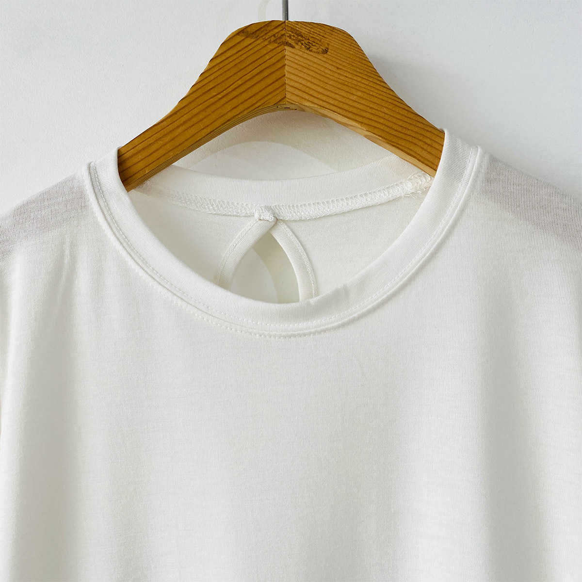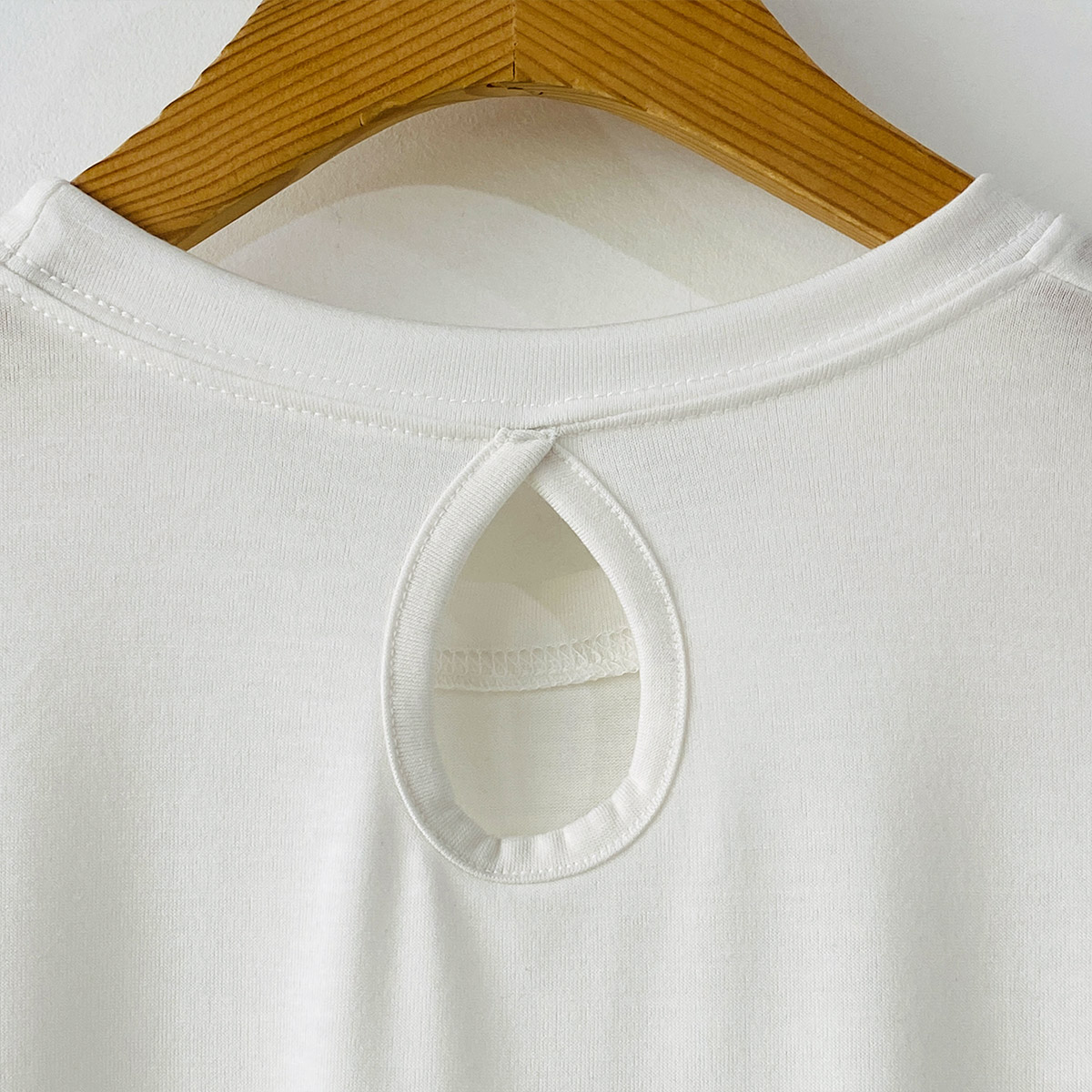 작은 물방울 모양 트임 포인트가 있는 스판 8부 티셔츠
