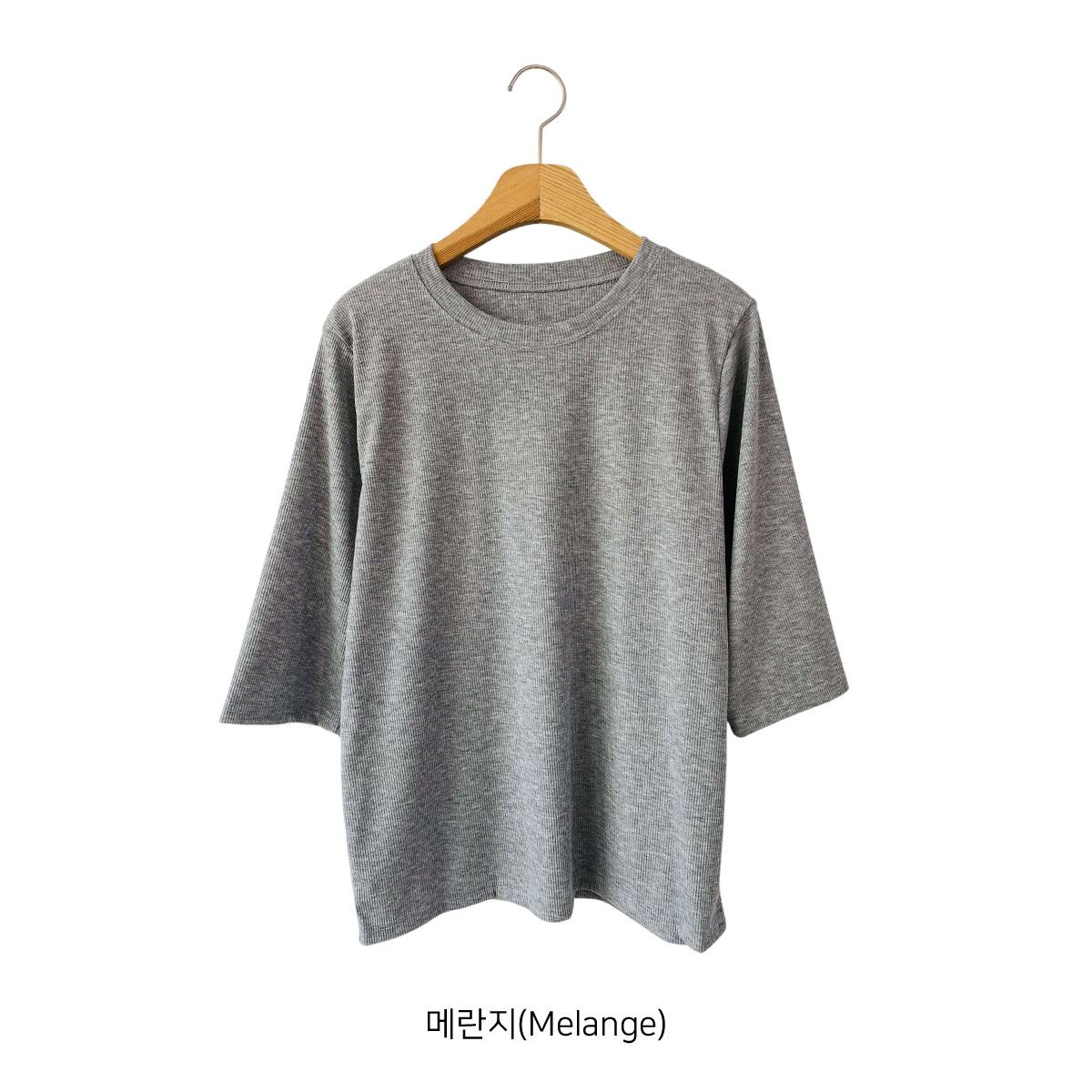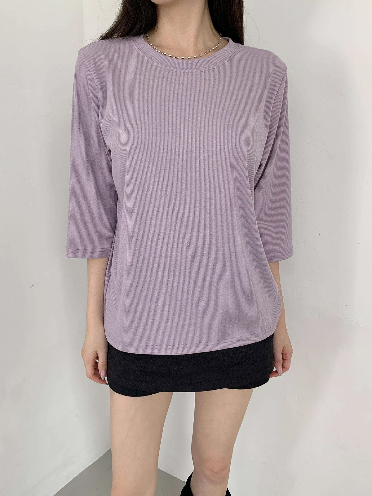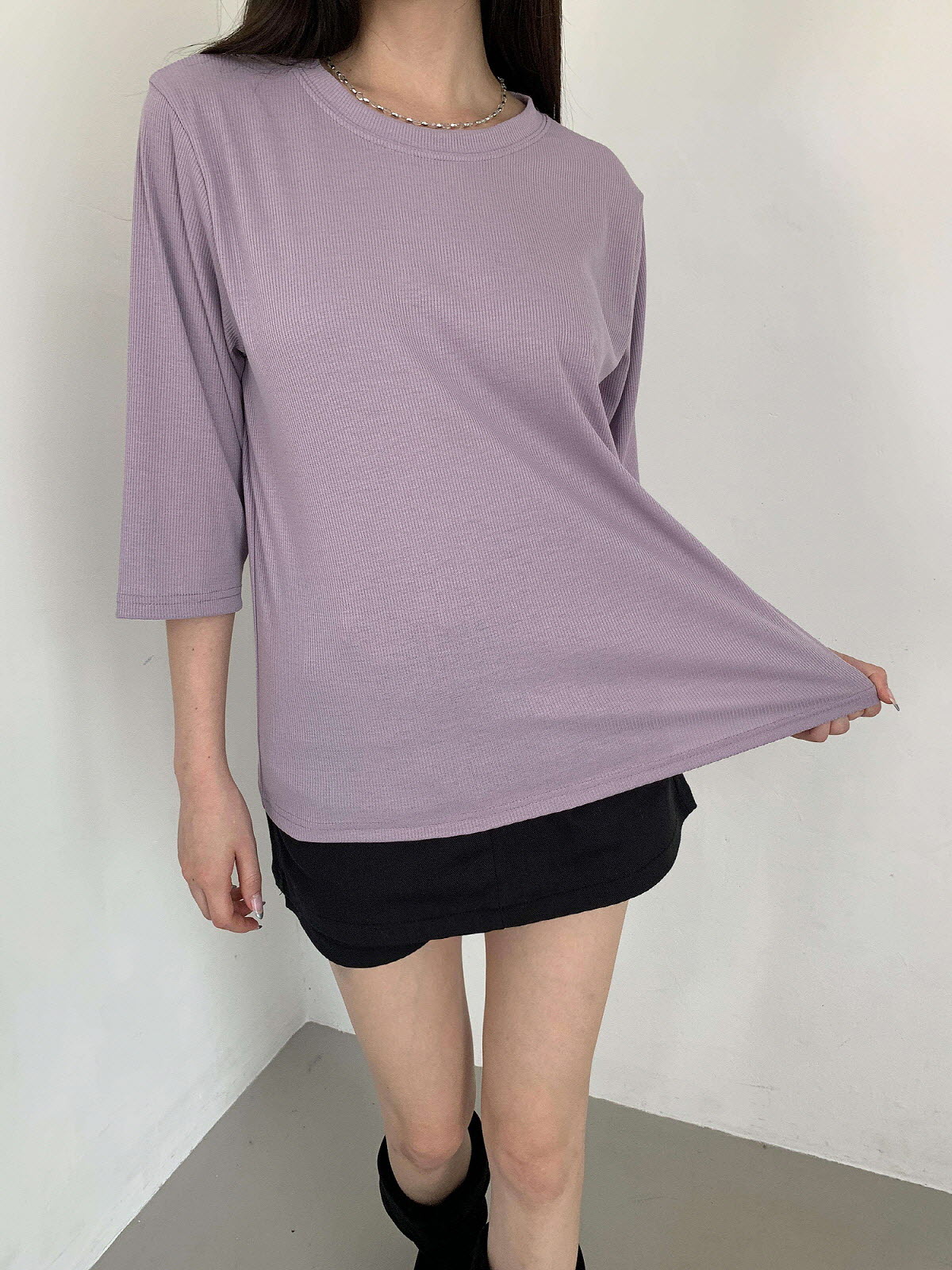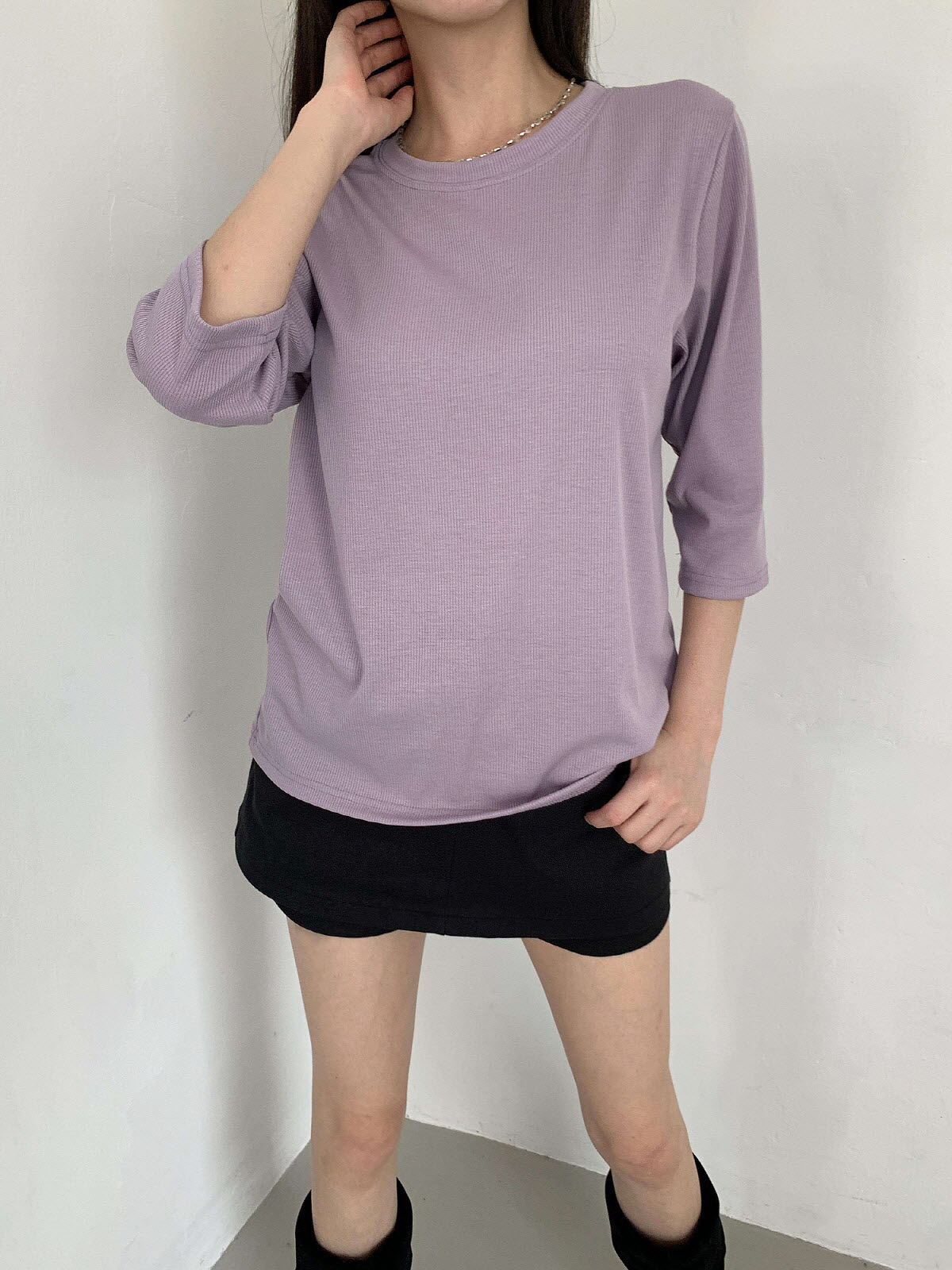 T17031K57-서앤사 스판 골지 루즈핏 8부 티