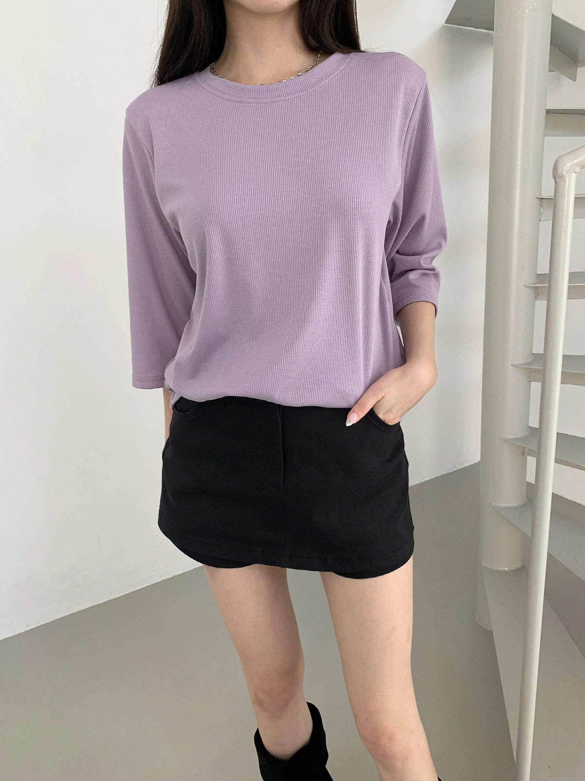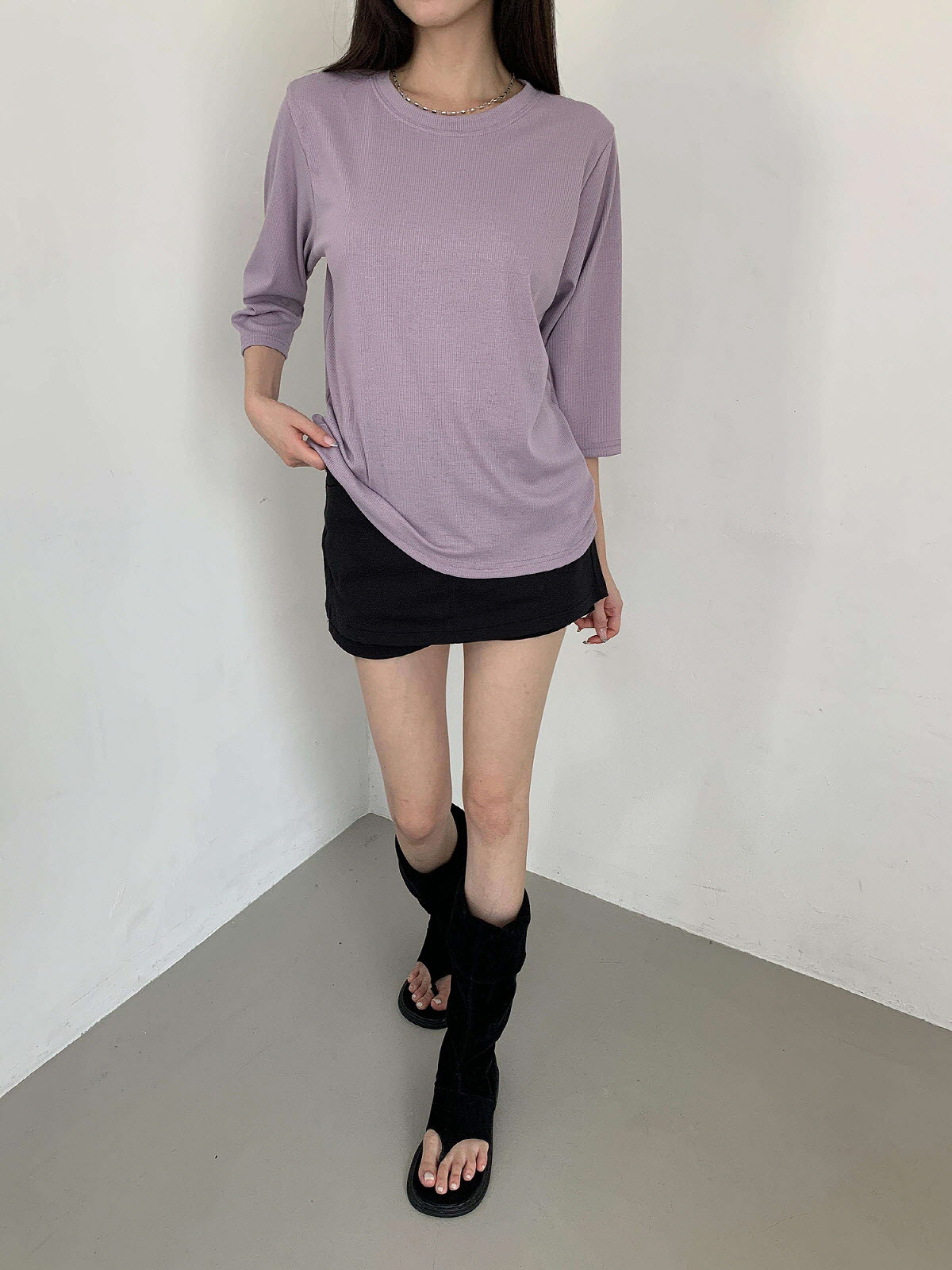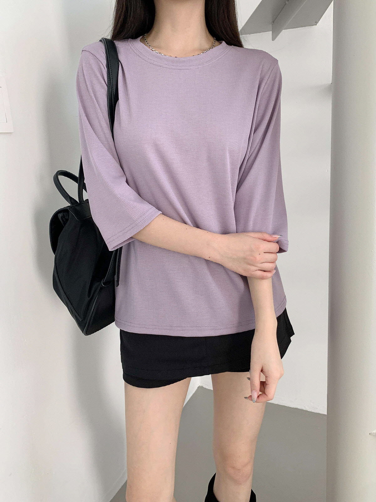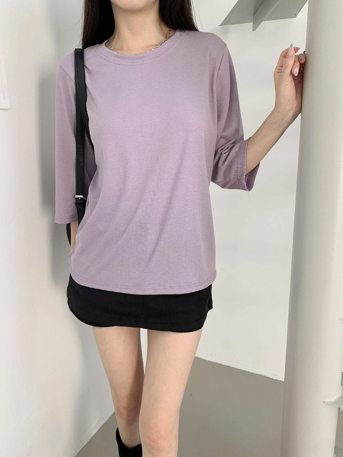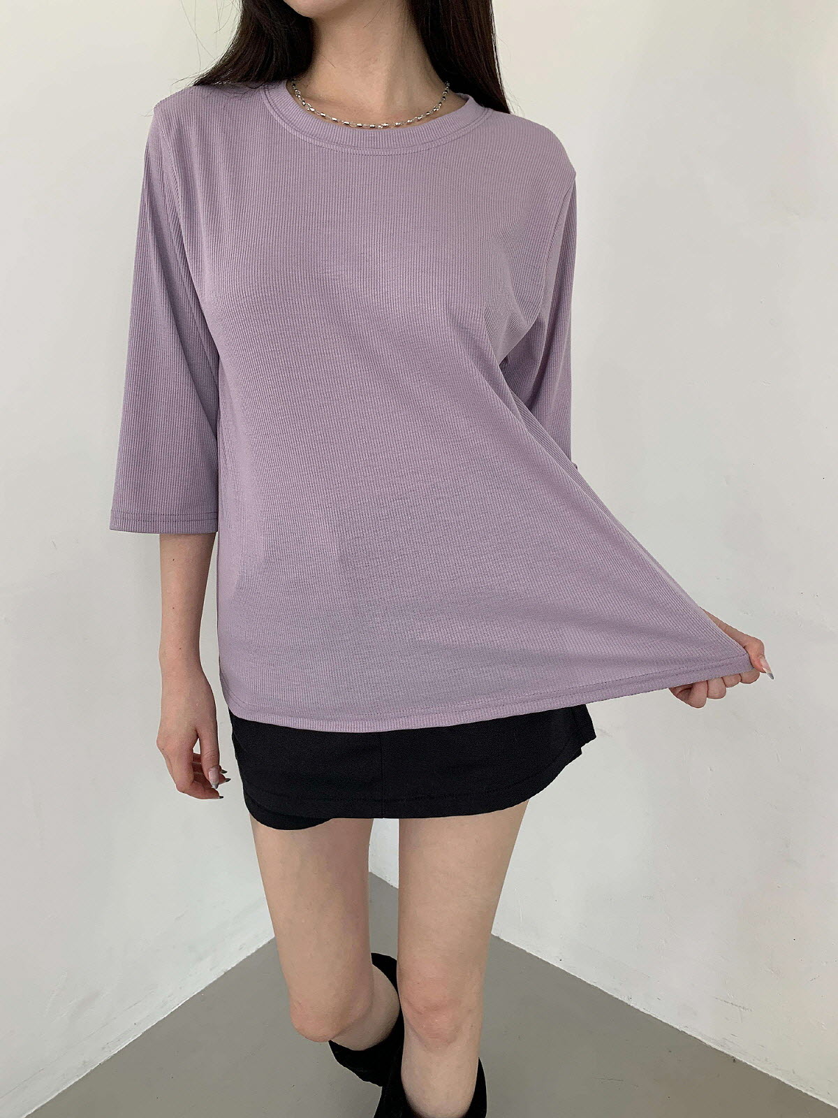 T17031K57-서앤사 스판 골지 루즈핏 8부 티