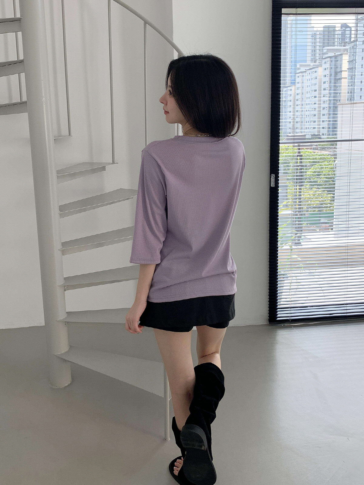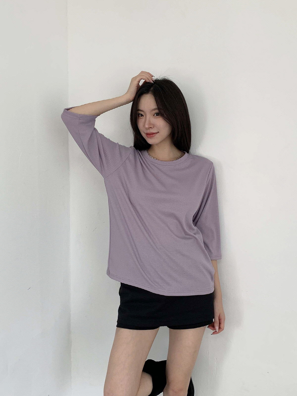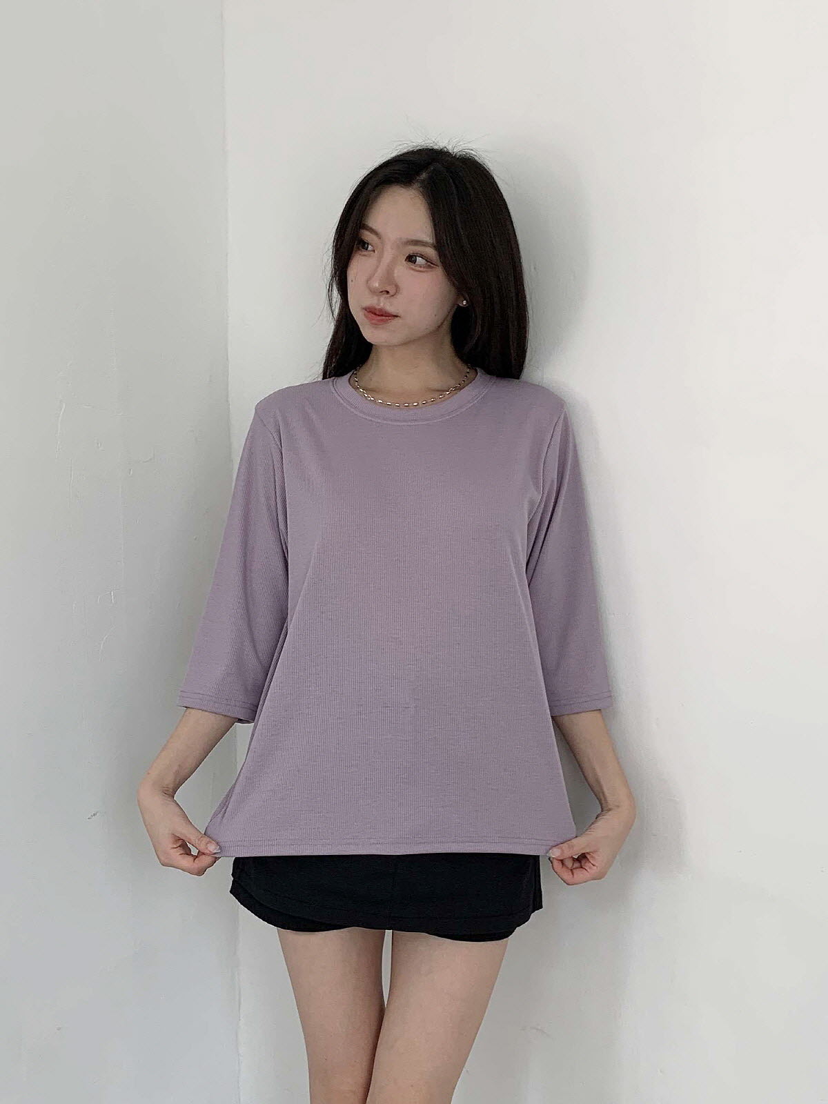[ T17031K57-서앤사 스판 골지 루즈핏 8부 티 ]