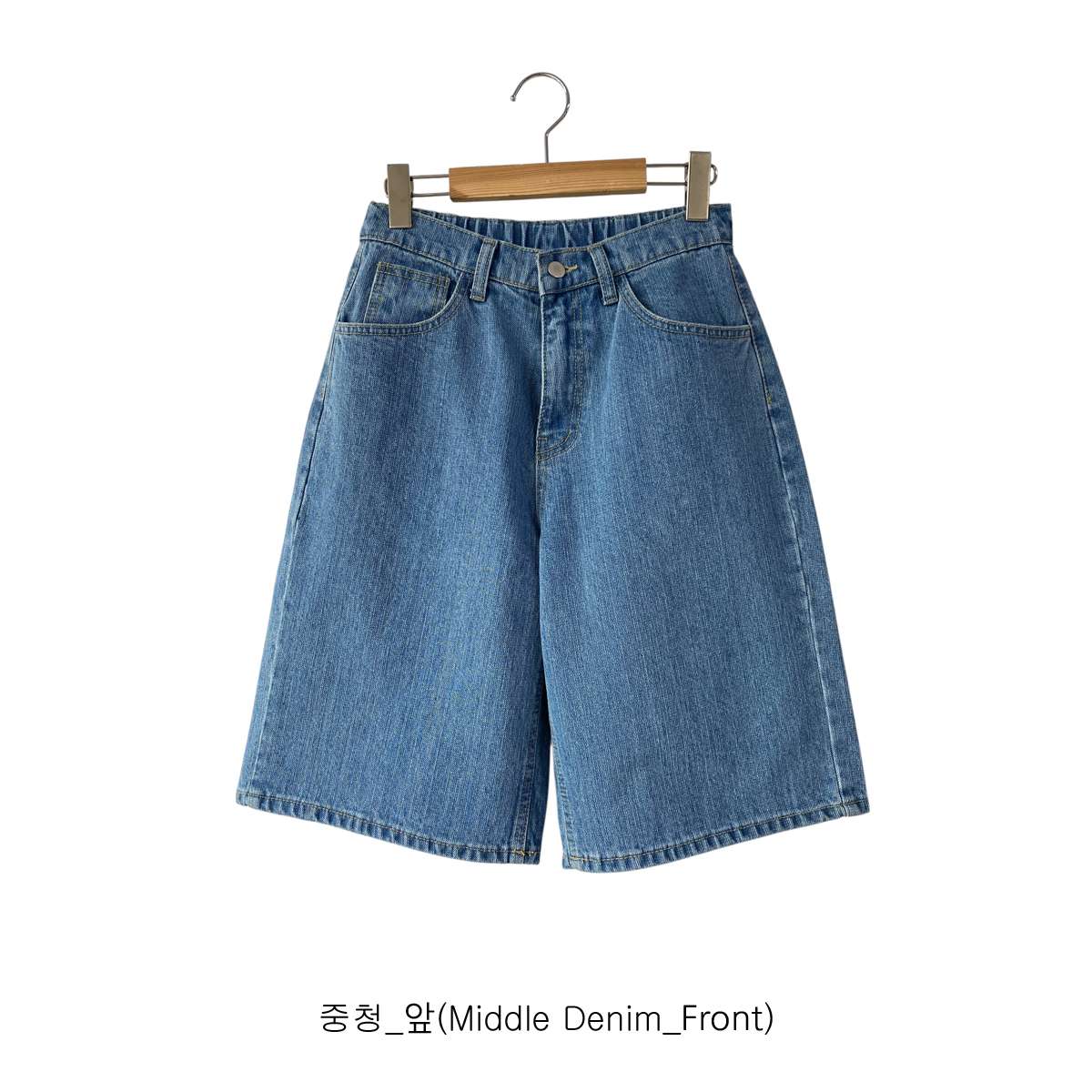 PT15342K57-이리논 캐주얼 워싱 밴딩 버뮤다 데님 팬츠