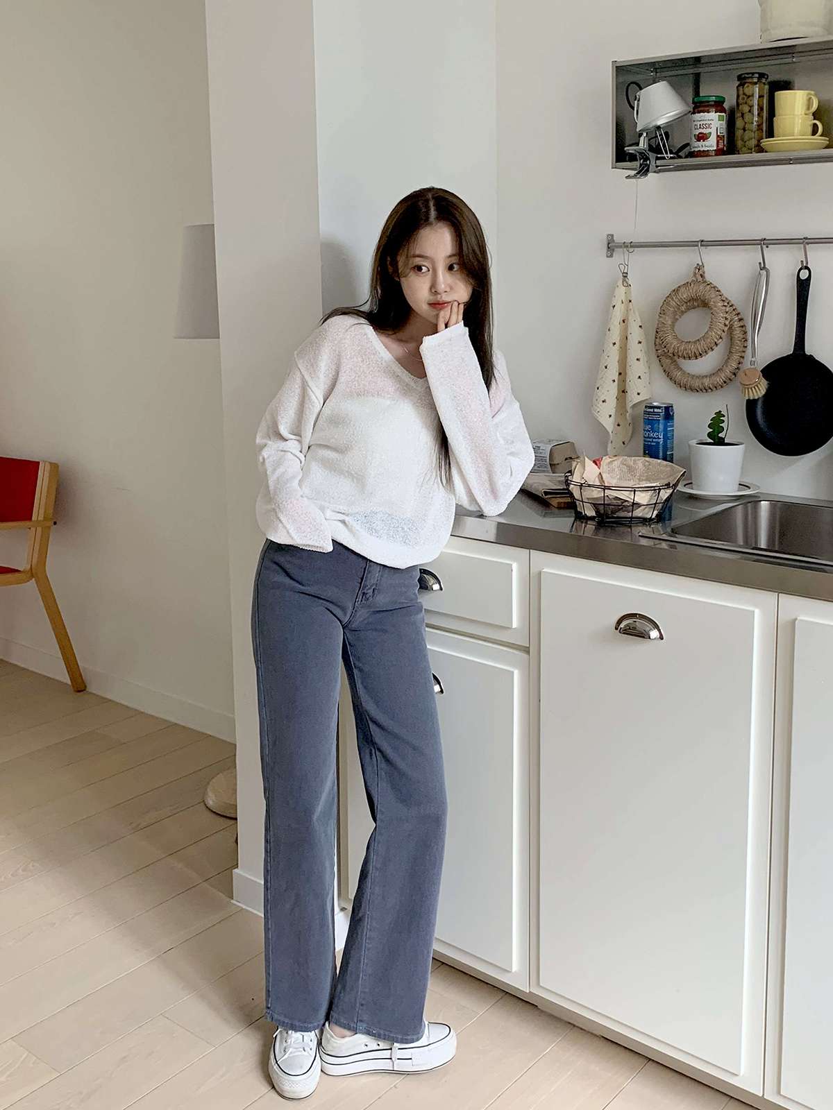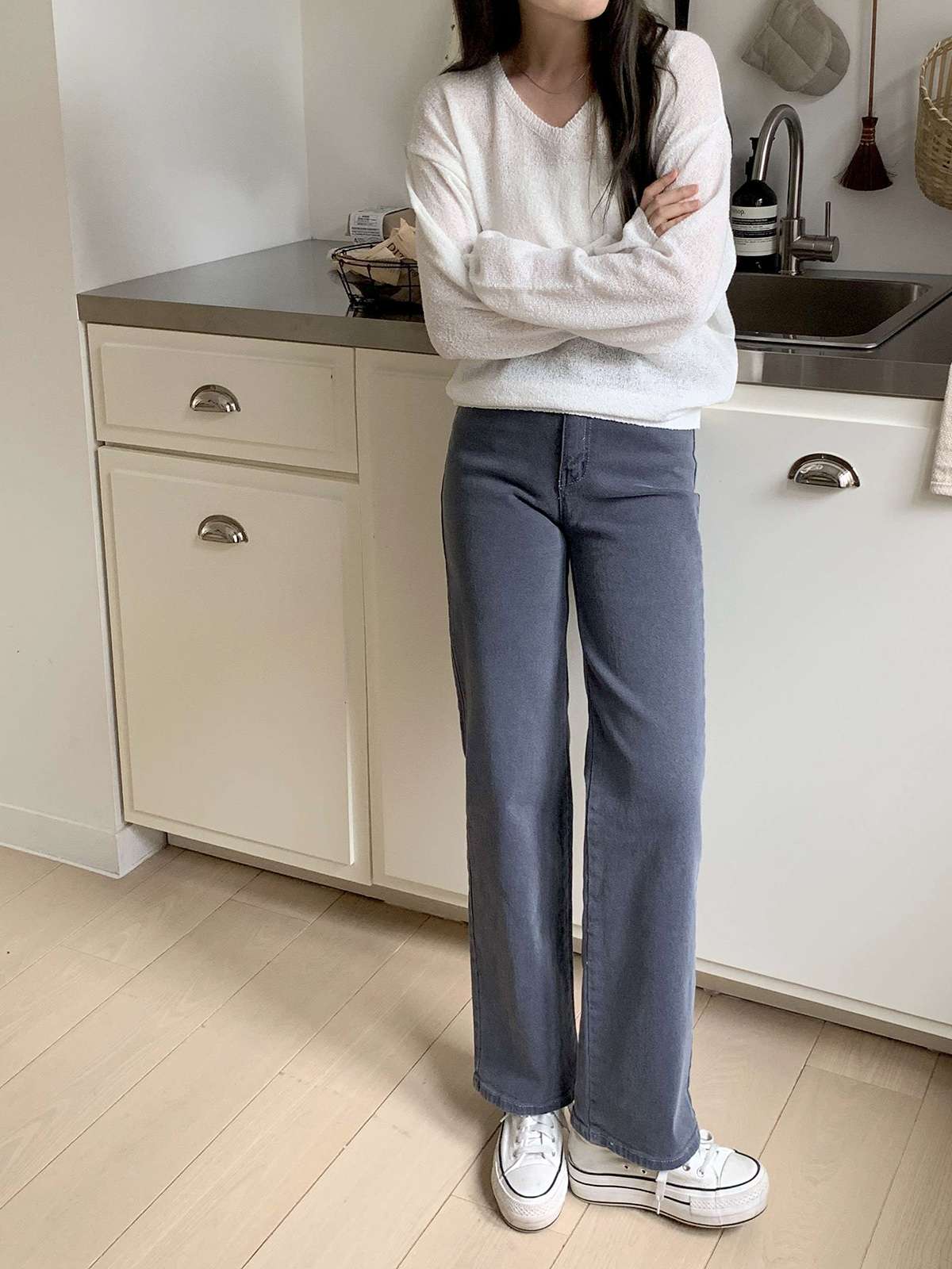 깔끔하게 떨어지는 세미 와이드 핏의 코튼 팬츠