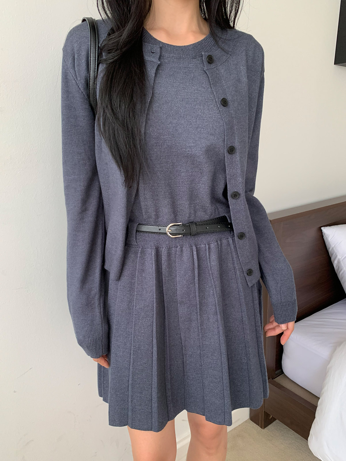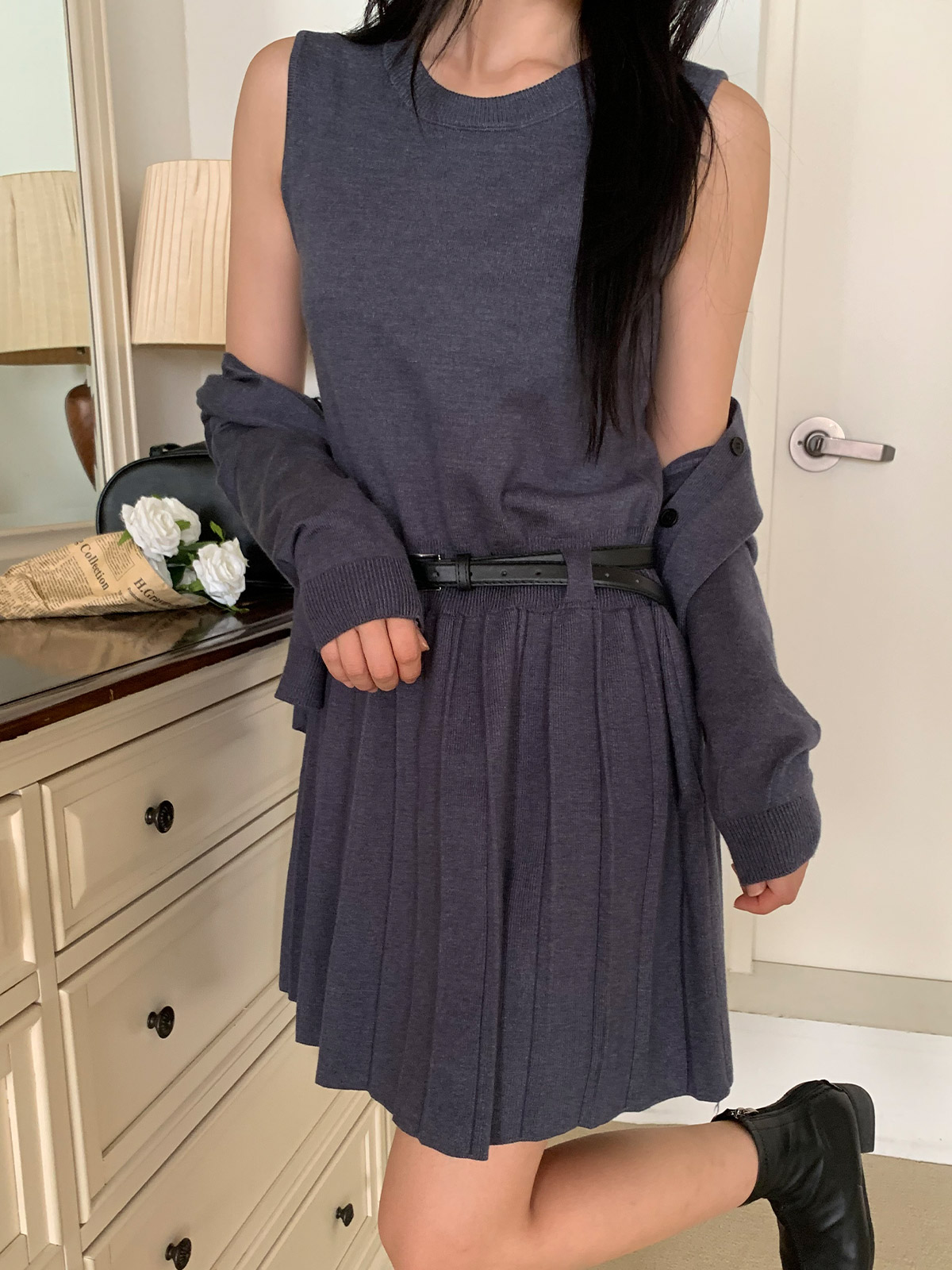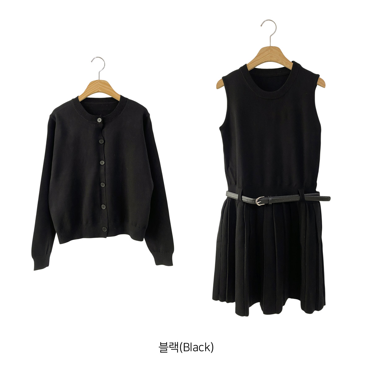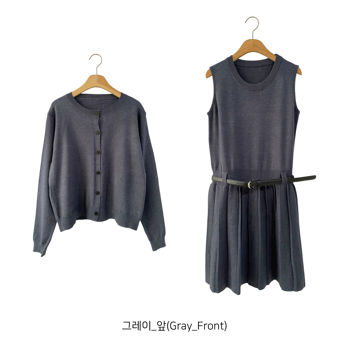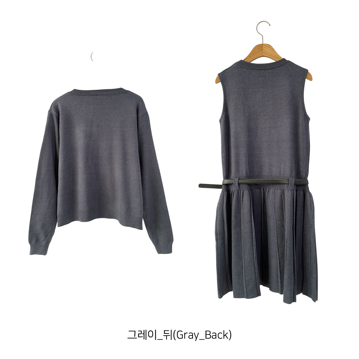 [ SET3818K58-커리나 니트 가디건 민소매 플리츠 니트 원피스 벨트 세트 ]