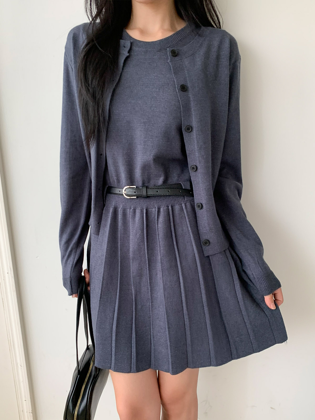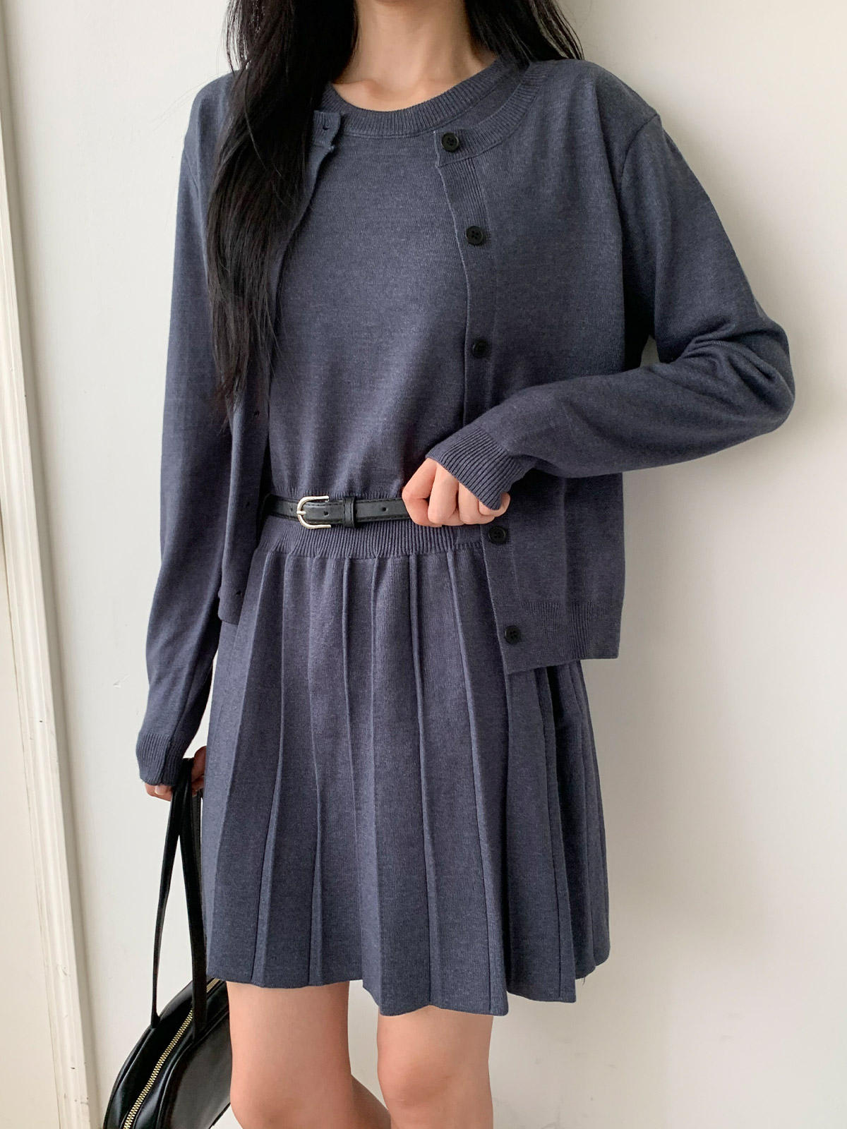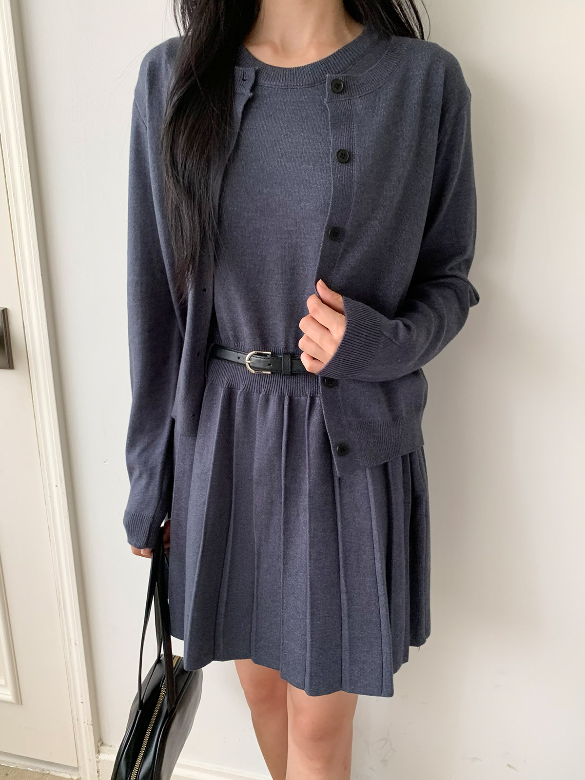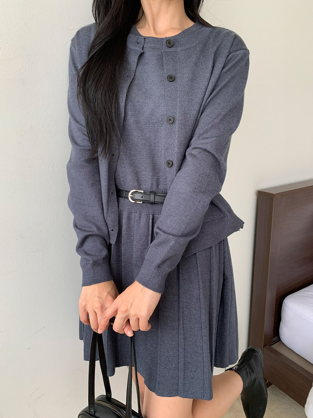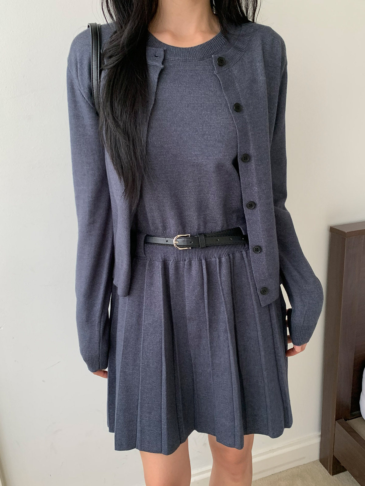[ SET3818K58-커리나 니트 가디건 민소매 플리츠 니트 원피스 벨트 세트 ]