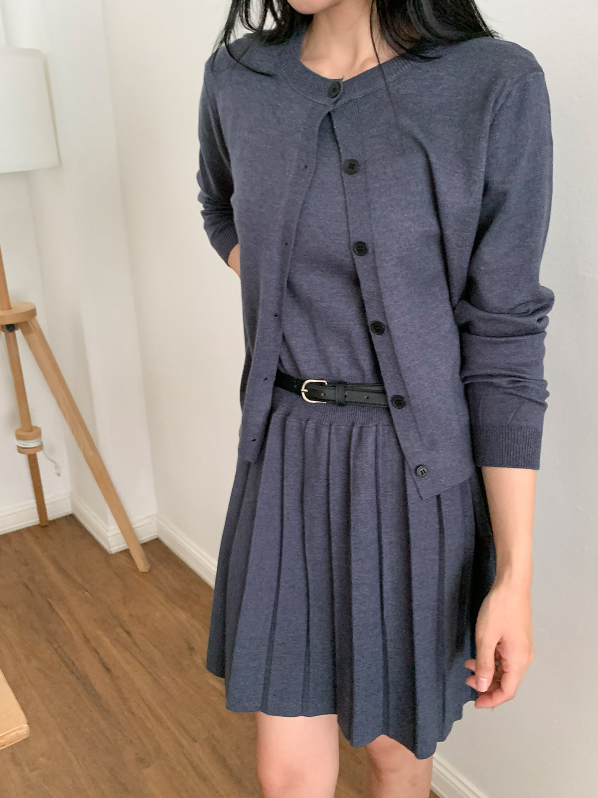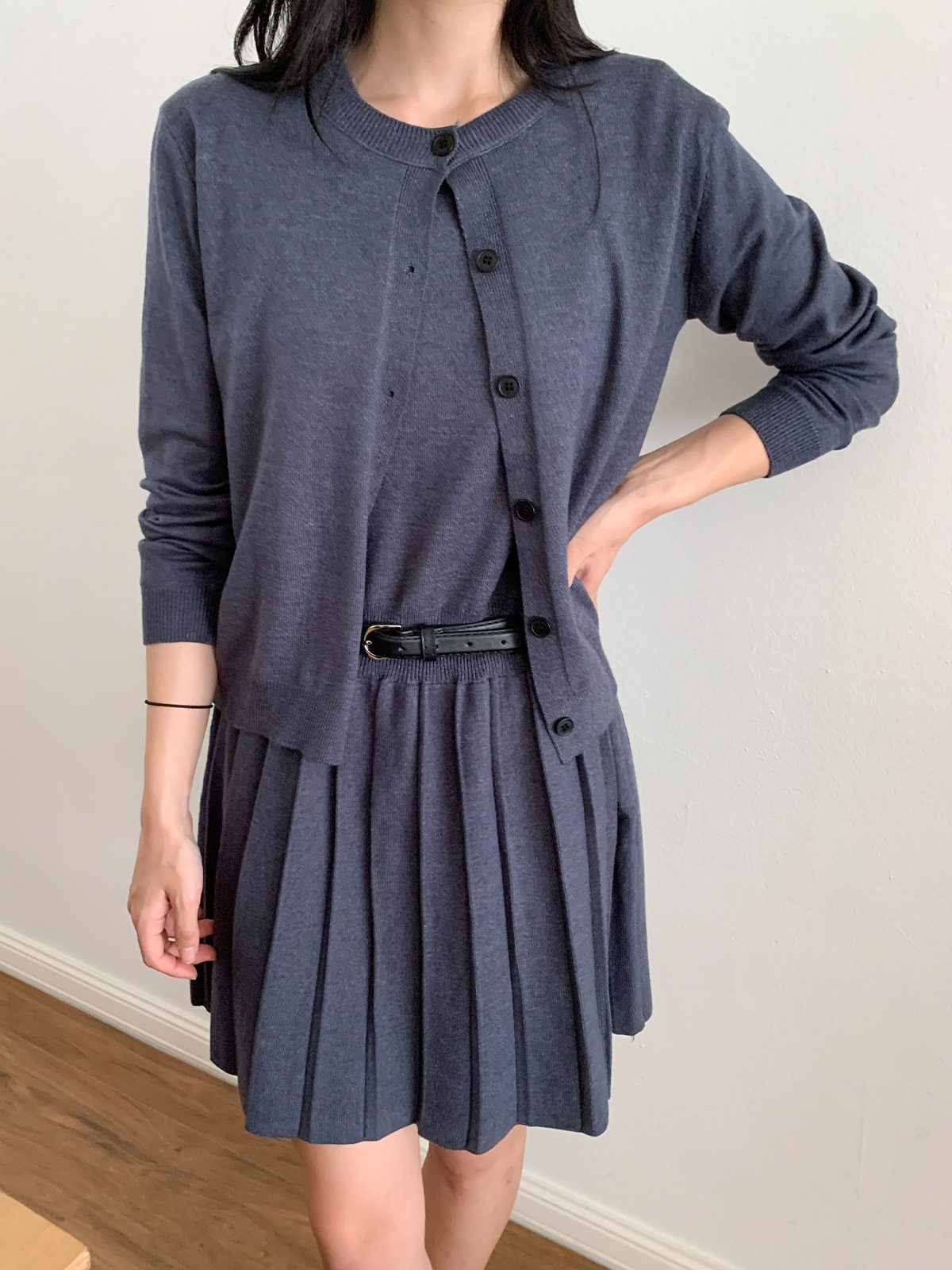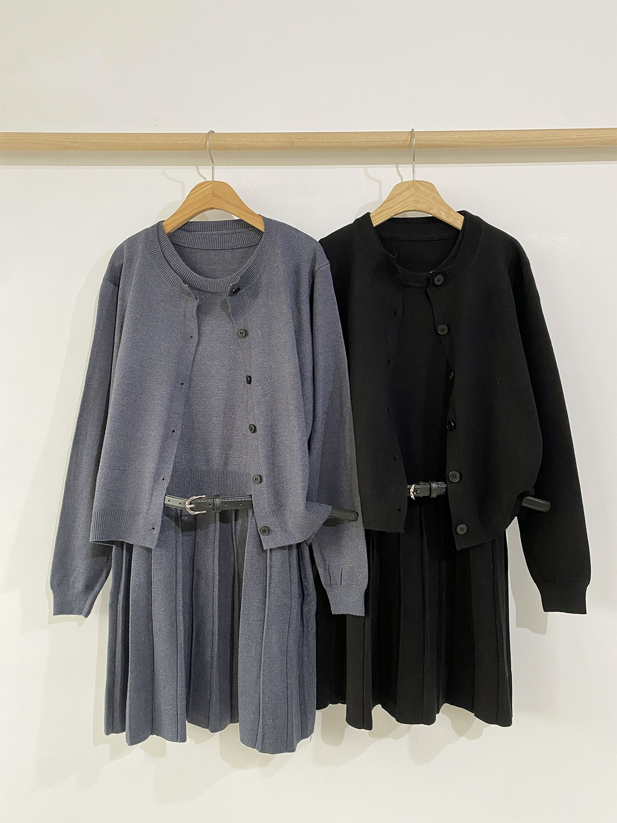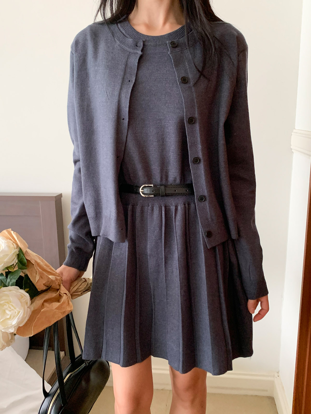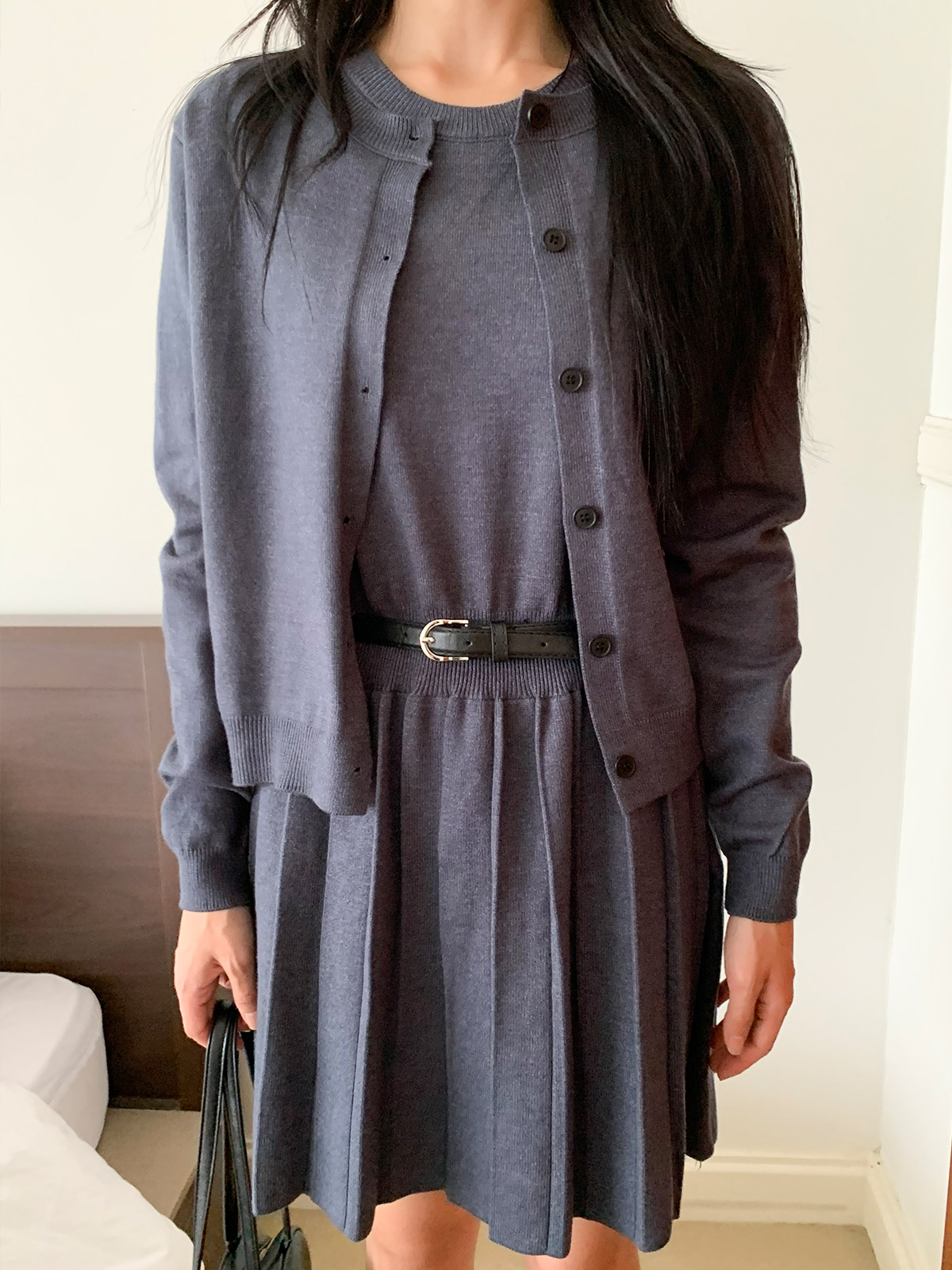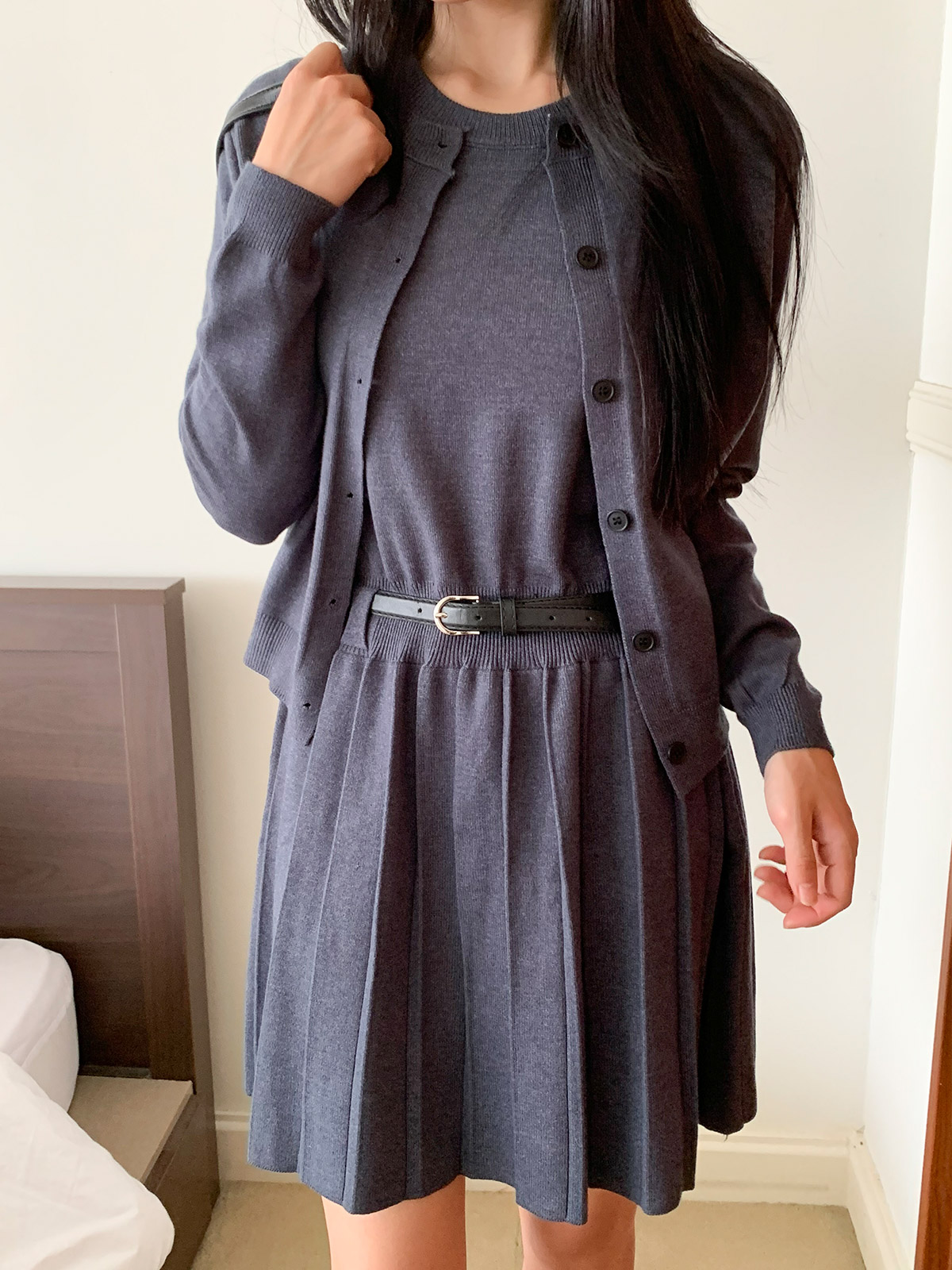 [ SET3818K58-커리나 니트 가디건 민소매 플리츠 니트 원피스 벨트 세트 ]