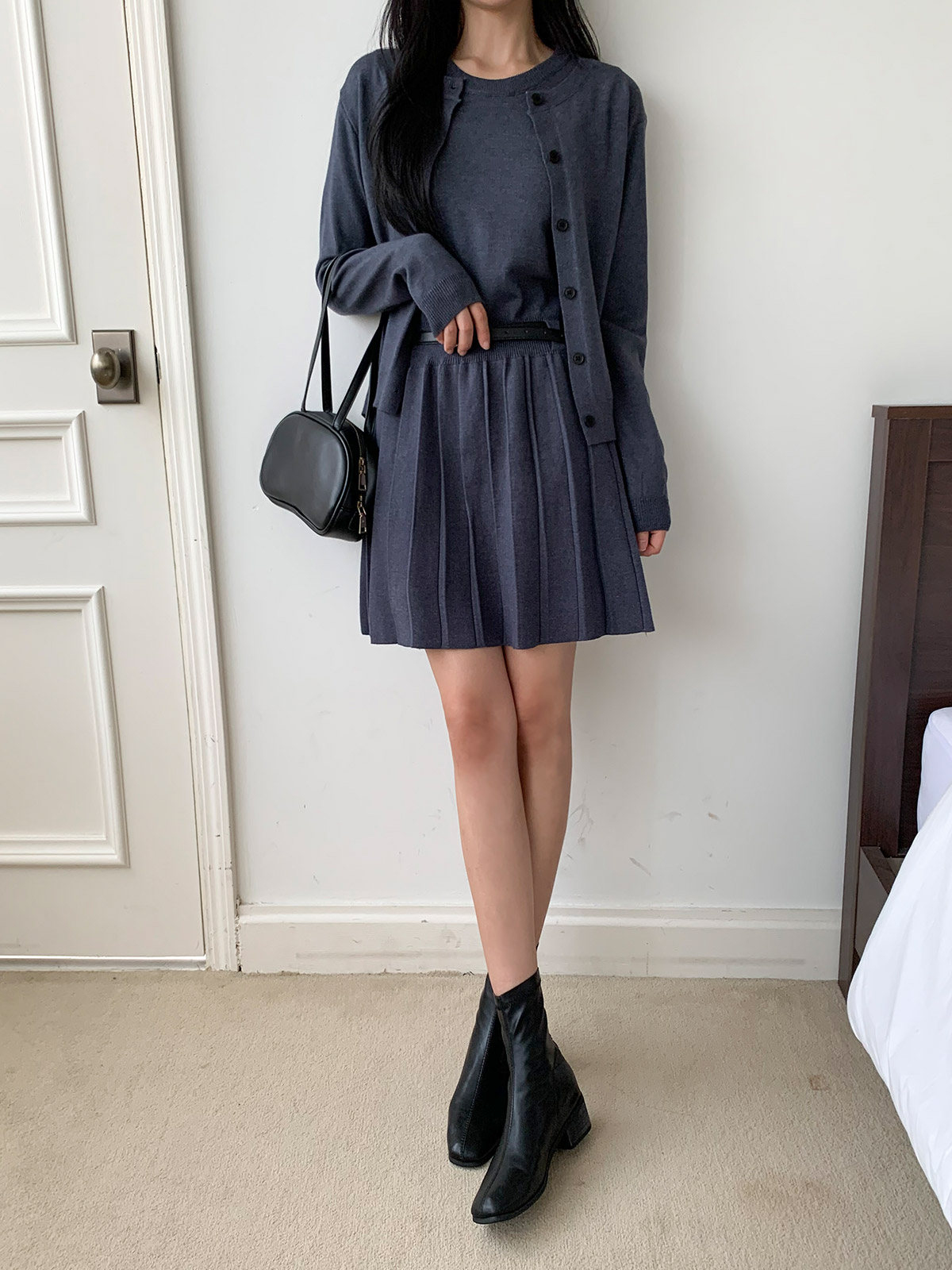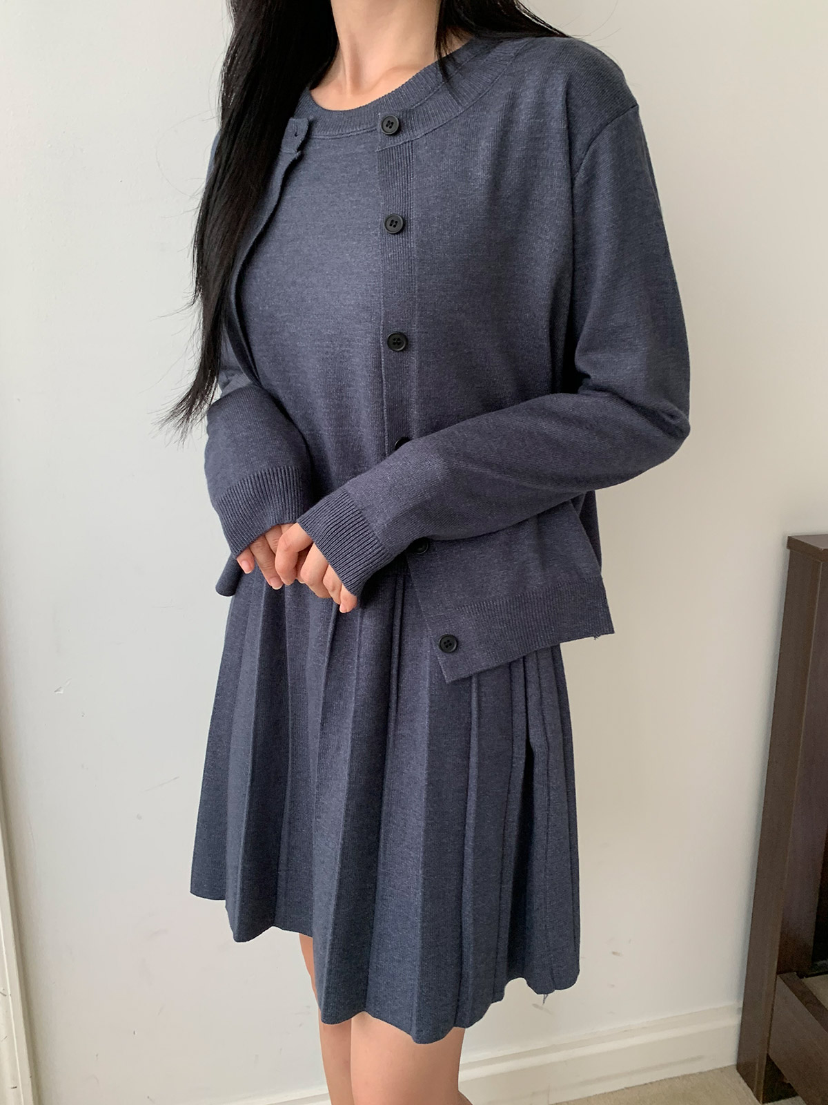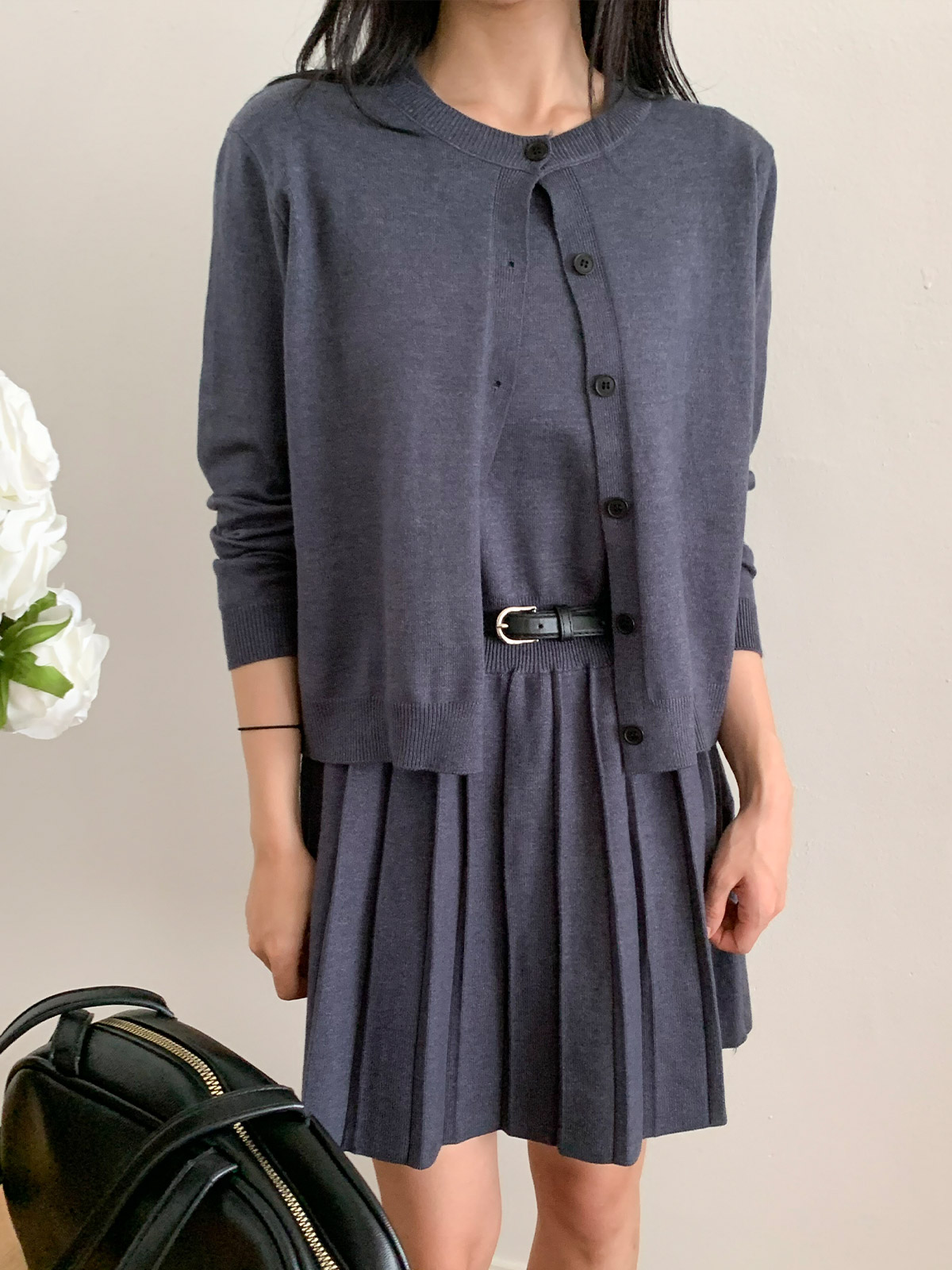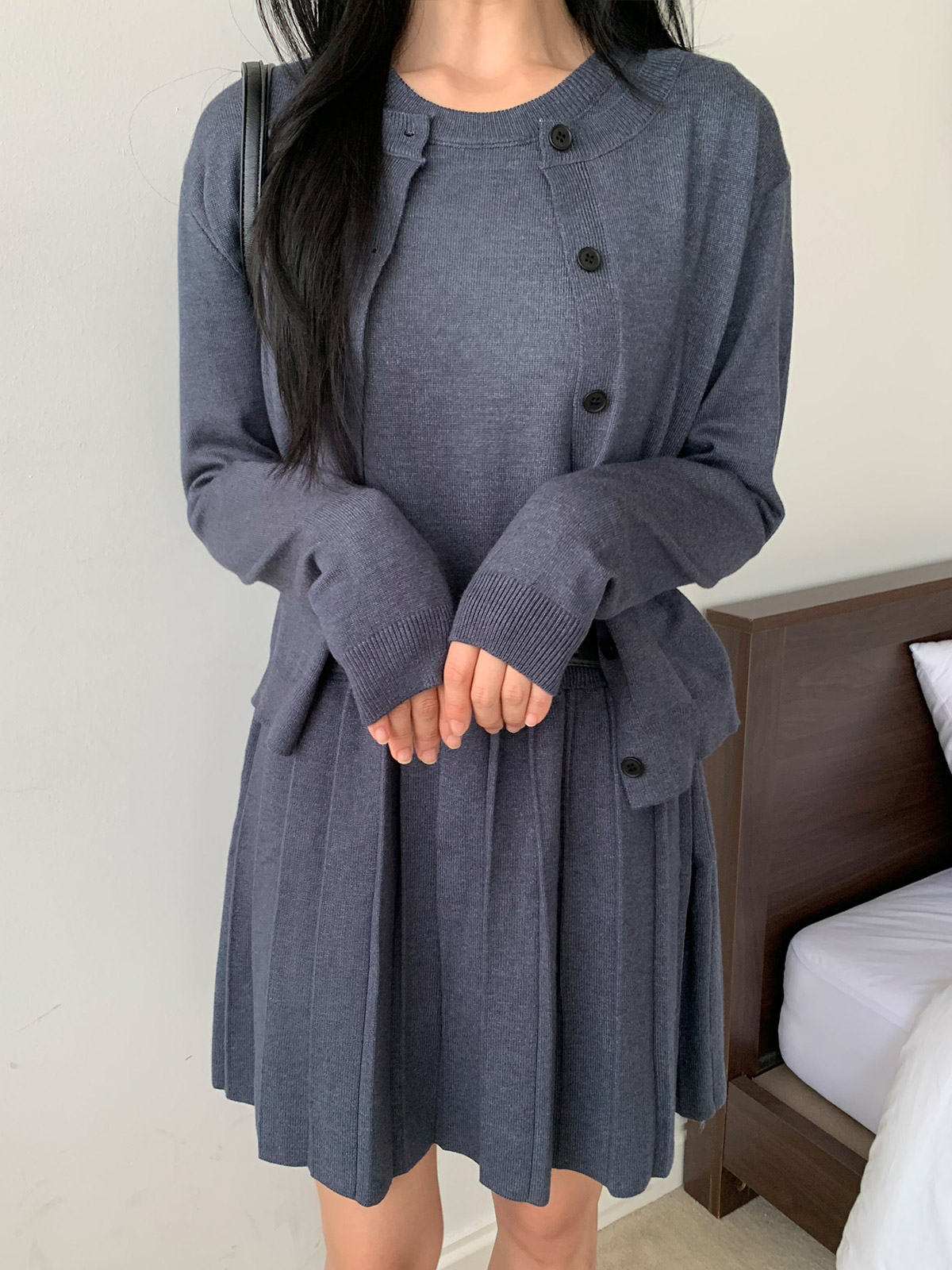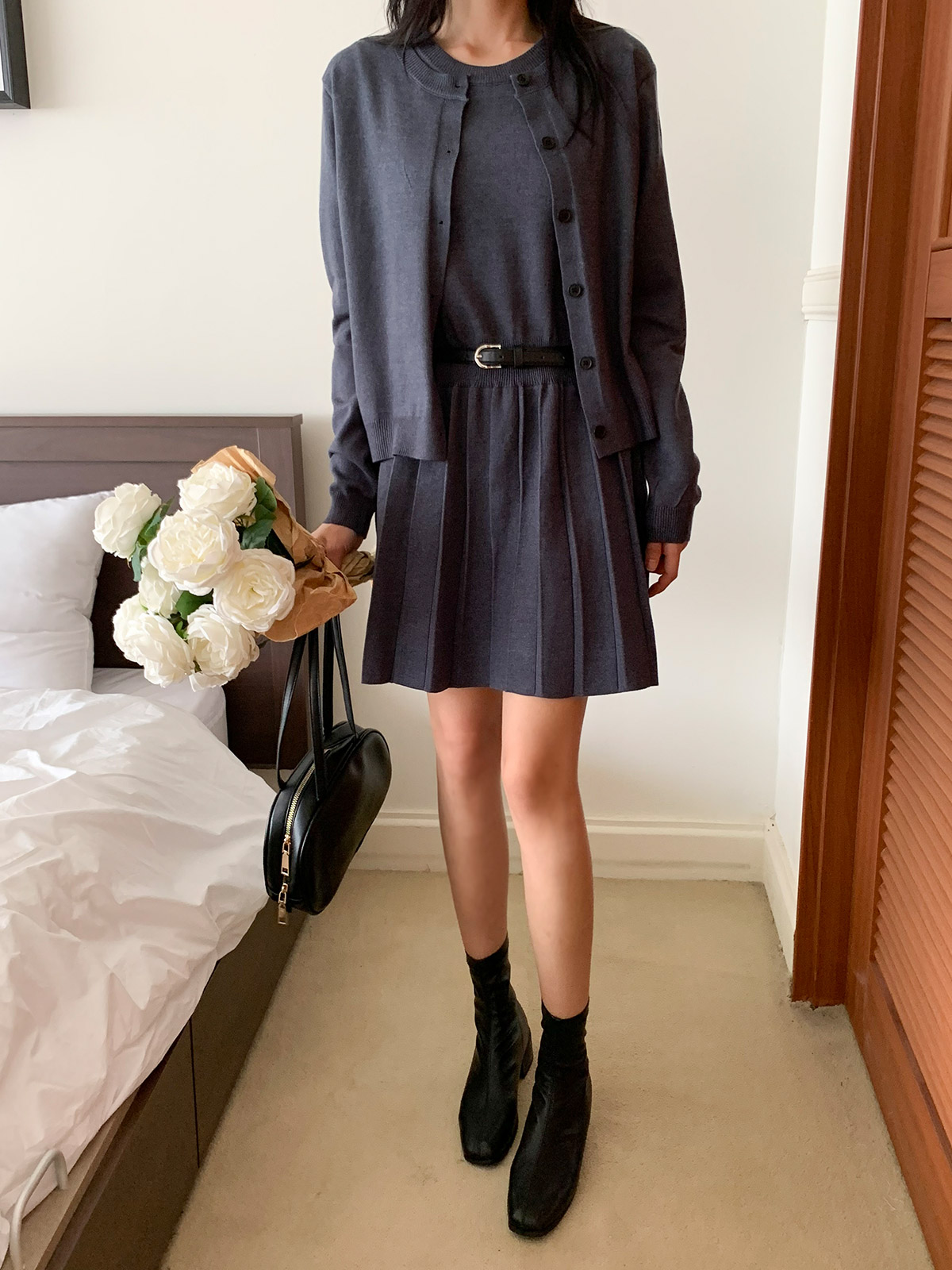[ SET3818K58-커리나 니트 가디건 민소매 플리츠 니트 원피스 벨트 세트 ]