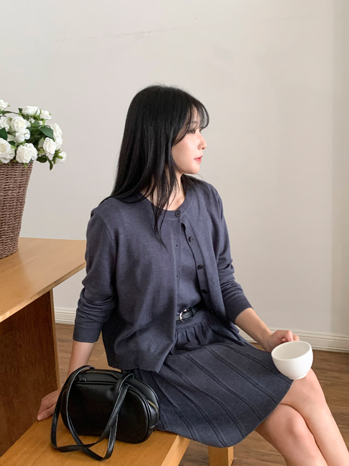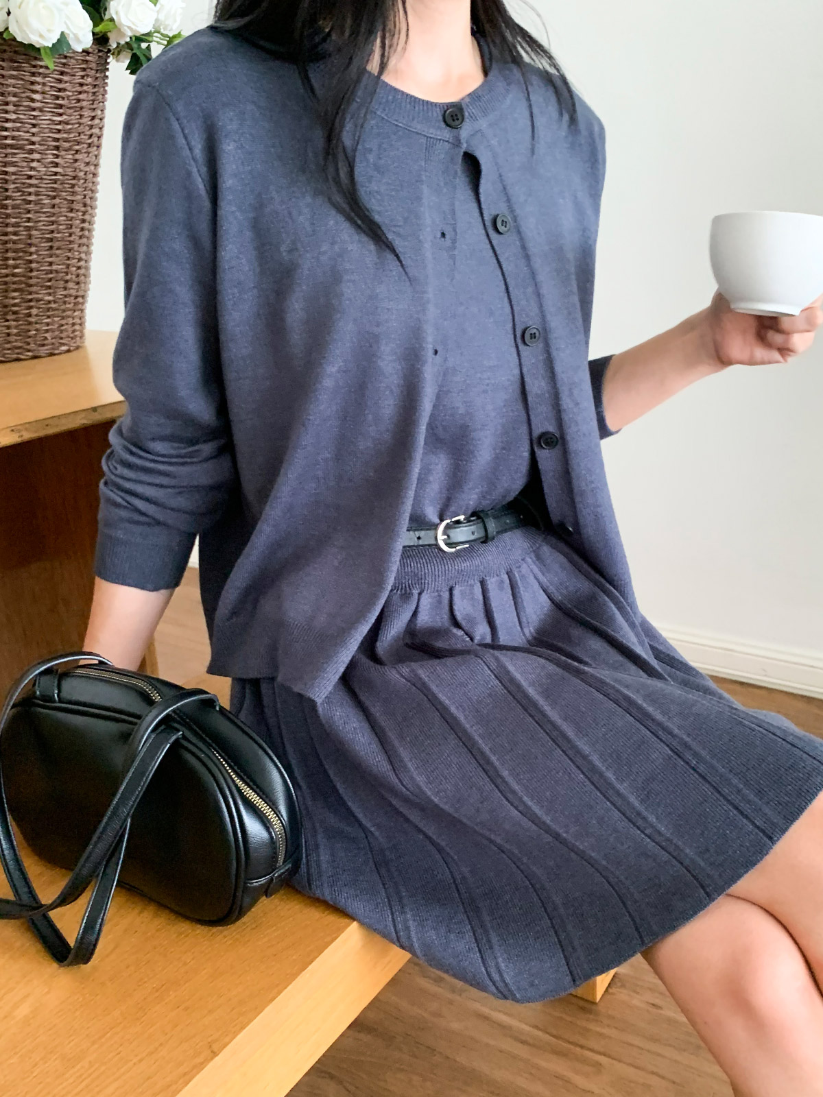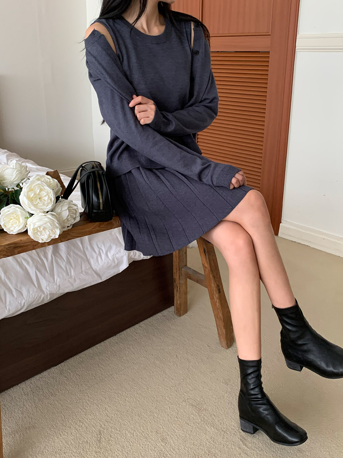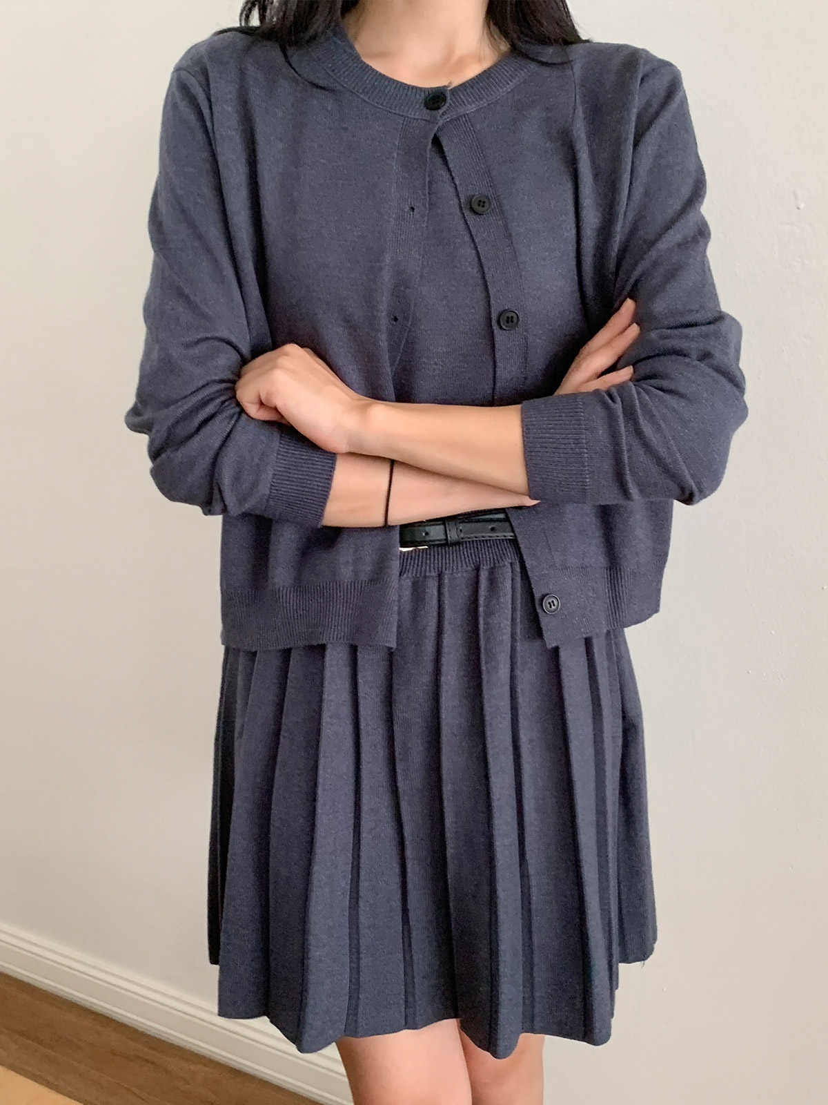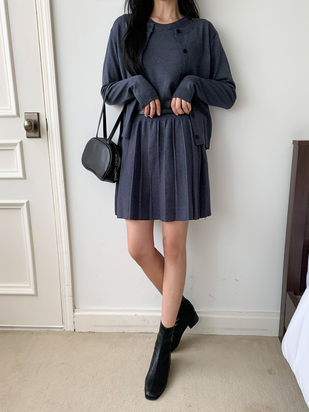 [ SET3818K58-커리나 니트 가디건 민소매 플리츠 니트 원피스 벨트 세트 ]