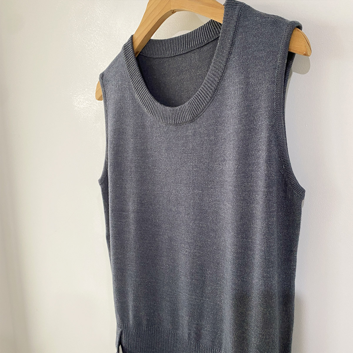 민소매 니트 원피스는 플리츠 디테일이 있어