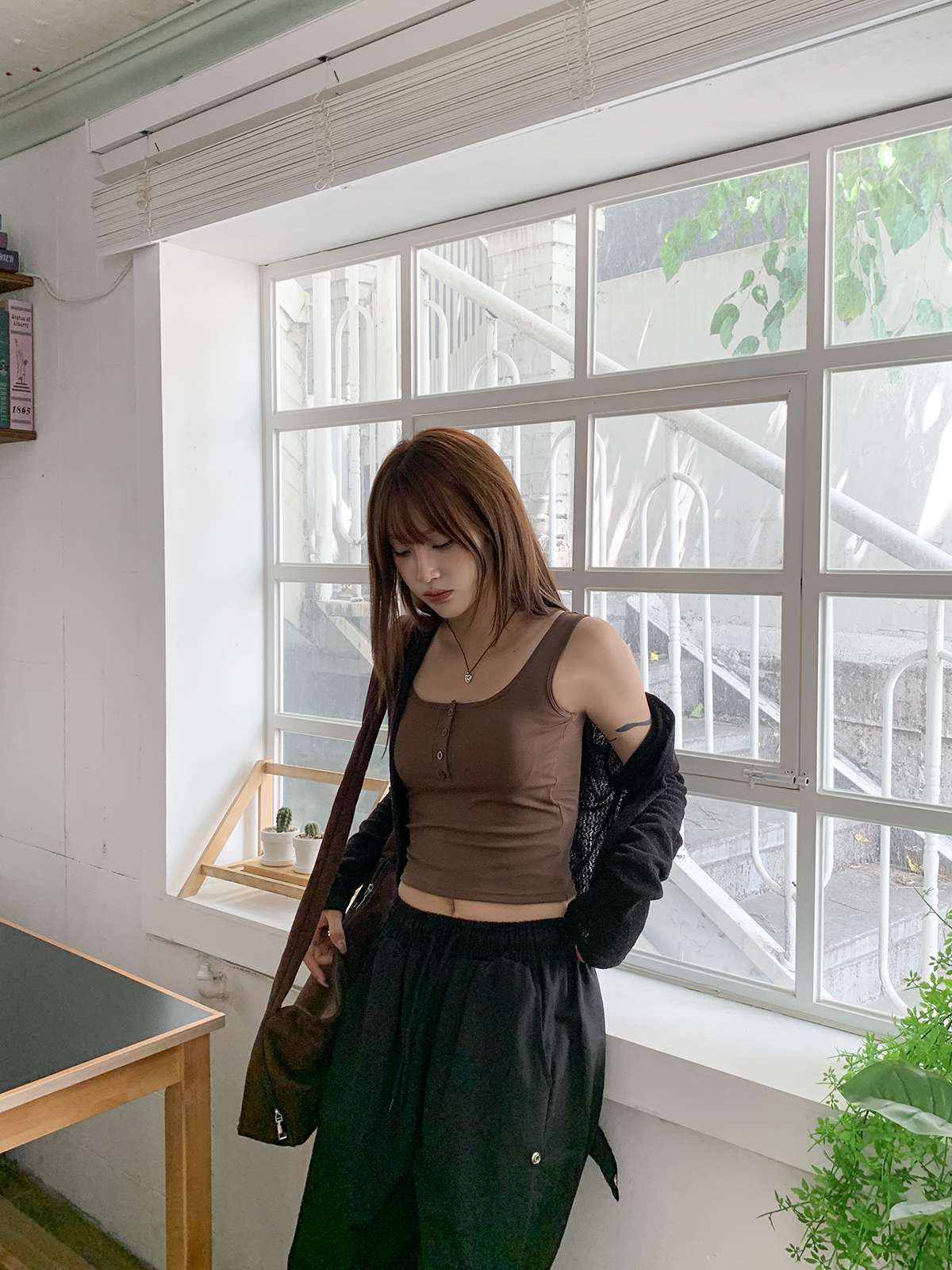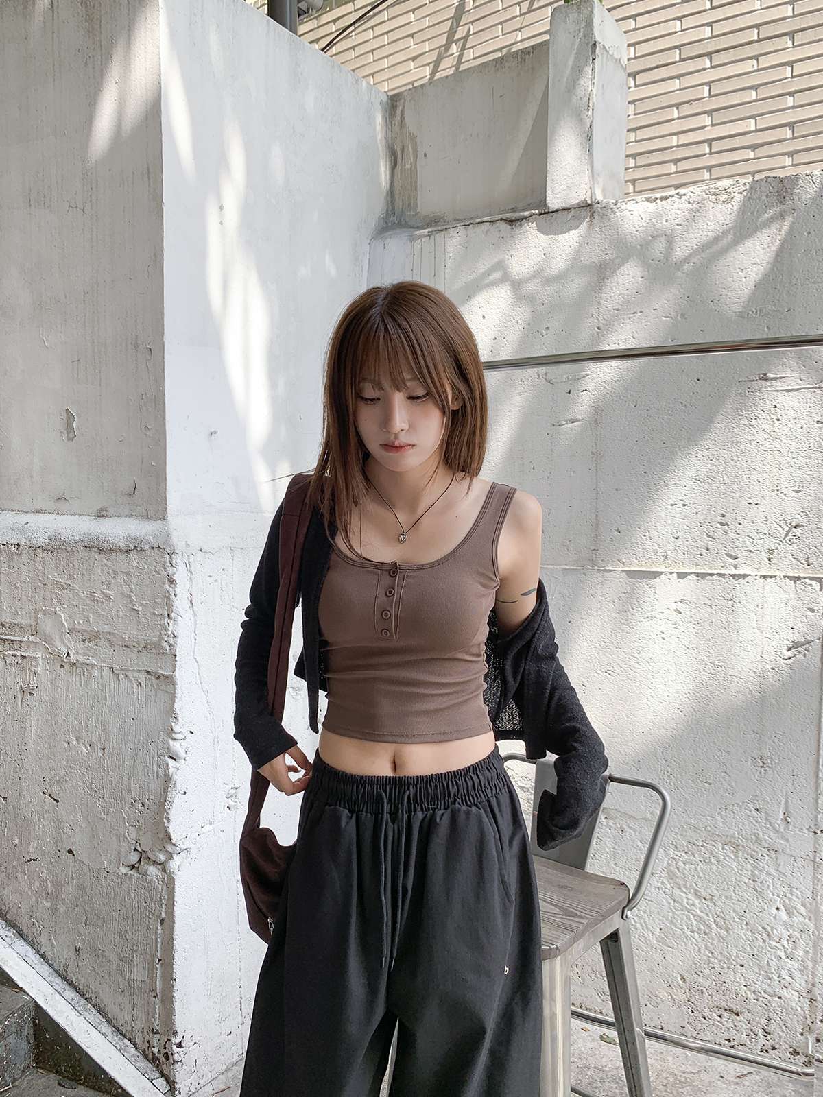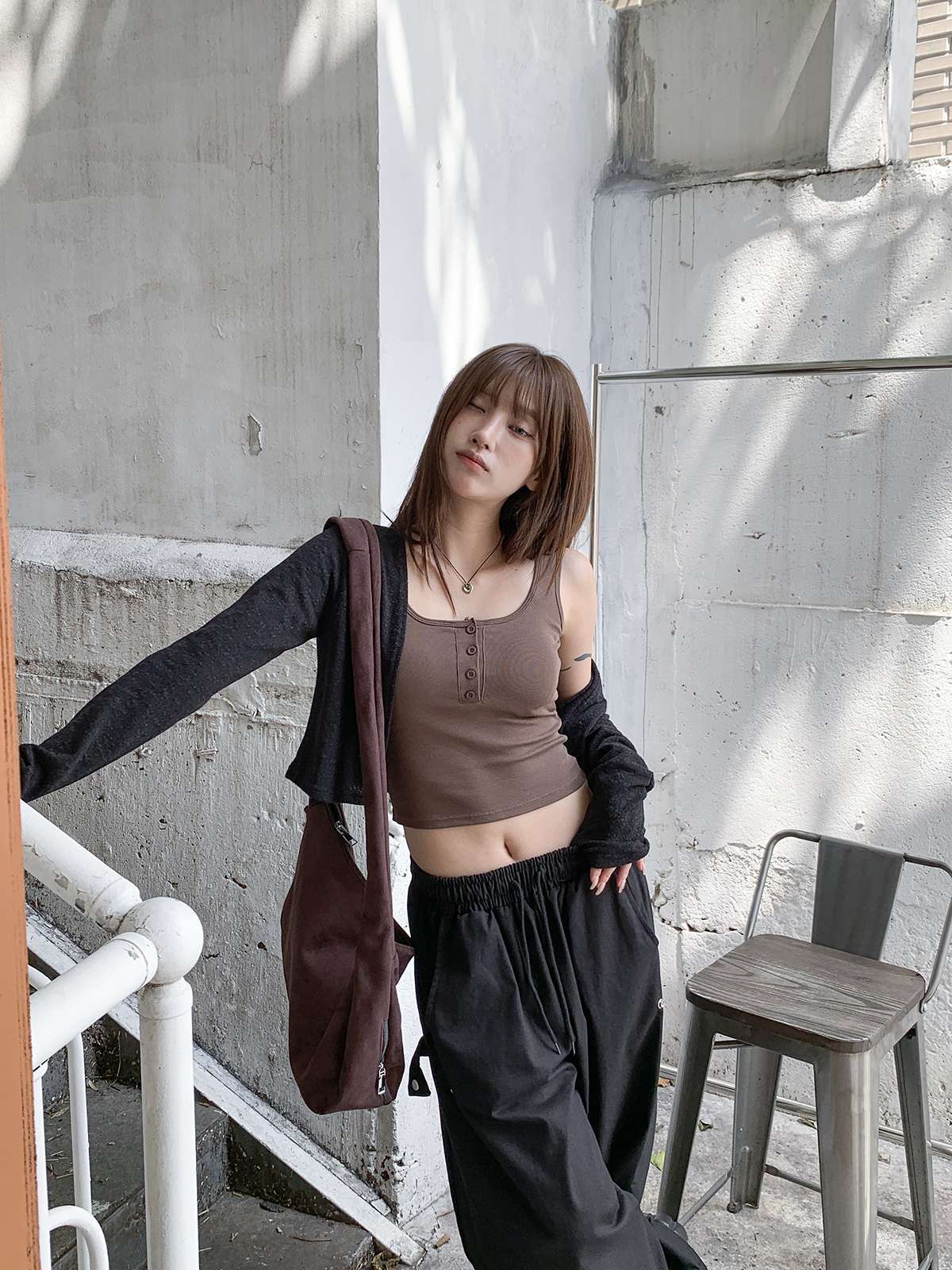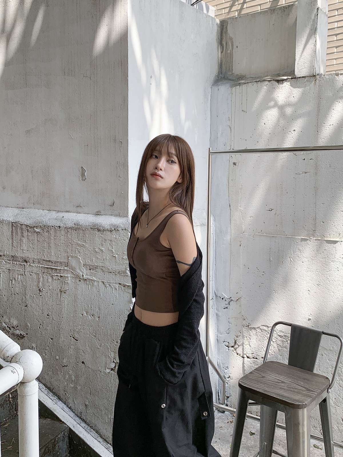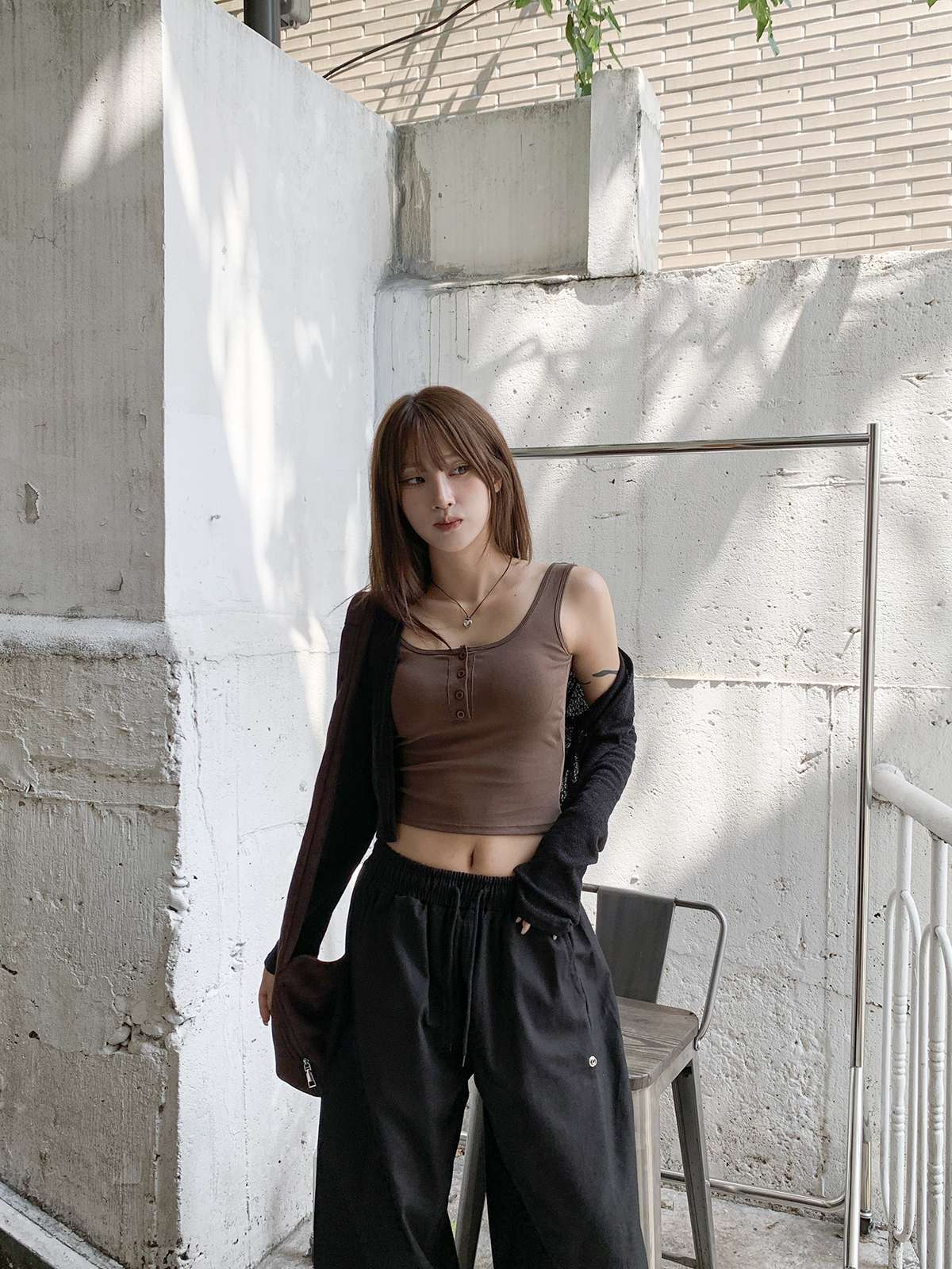 크롭 기장감과 슬림하게 떨어지는 핏감의 기본 나시