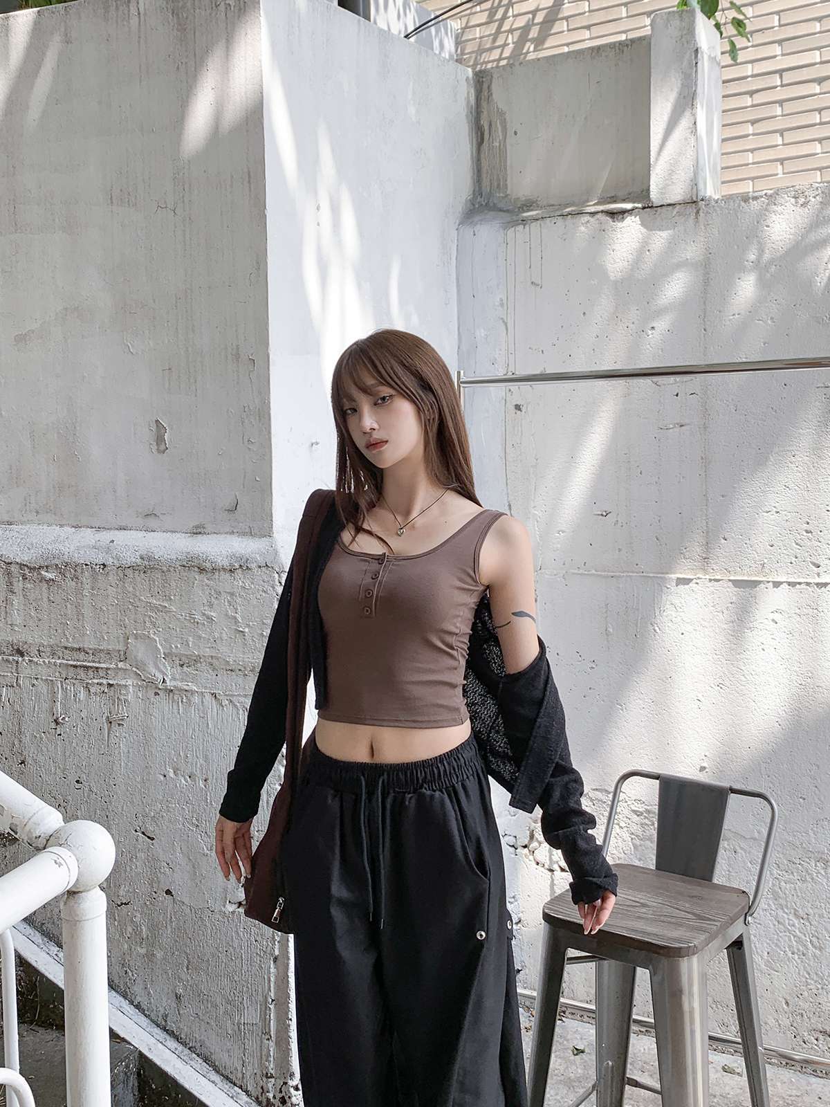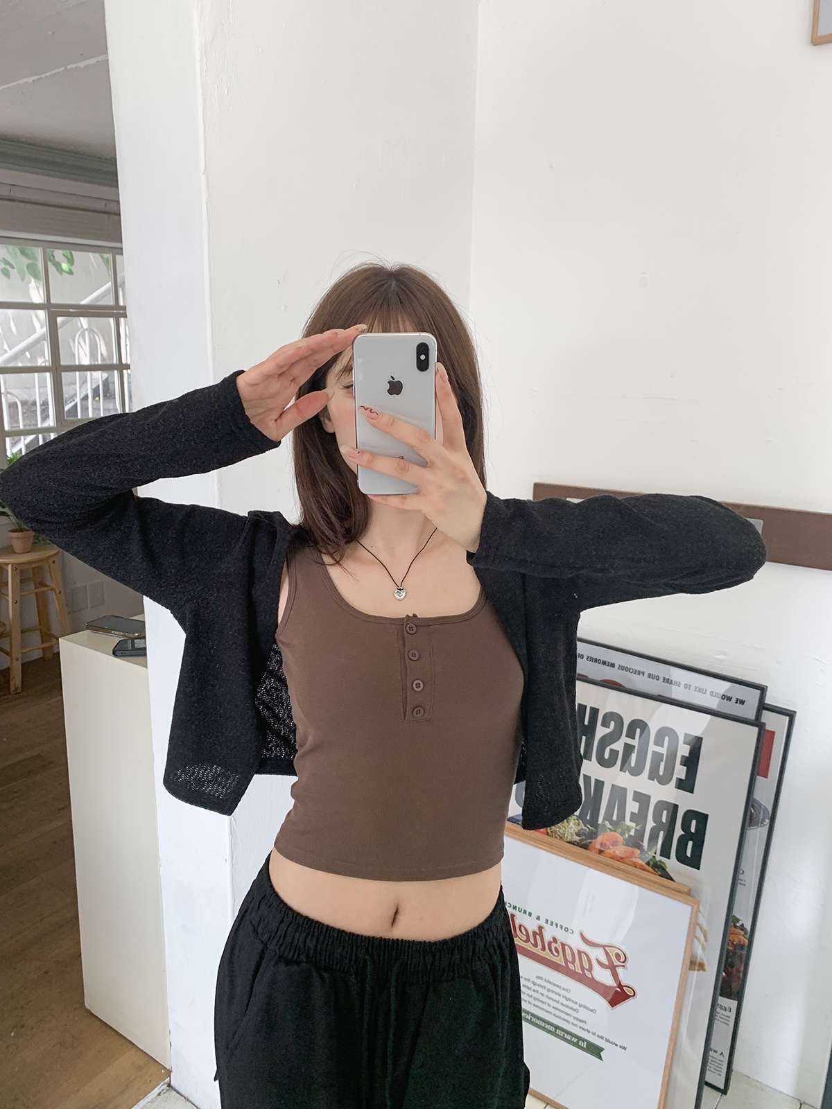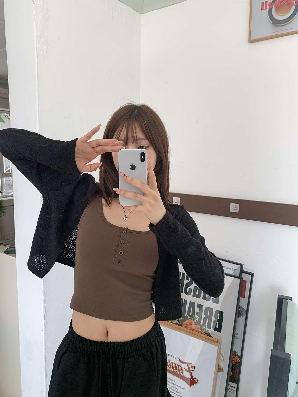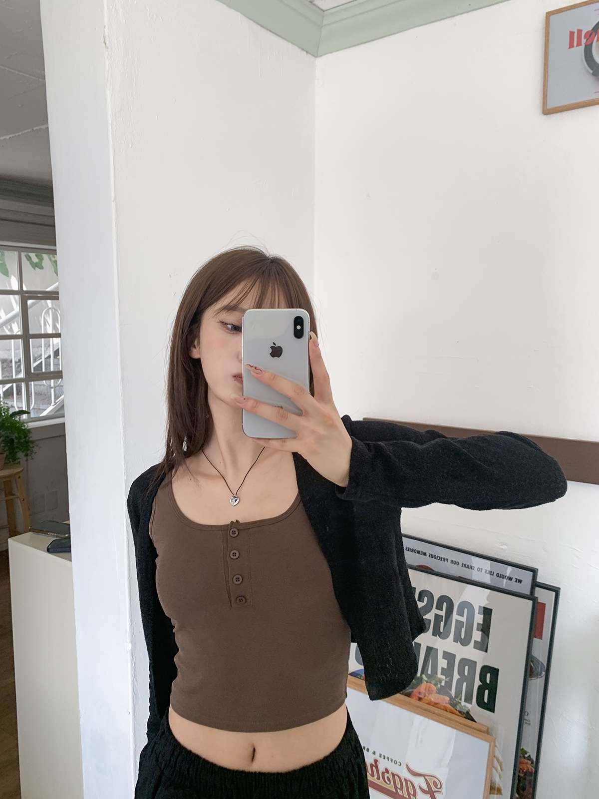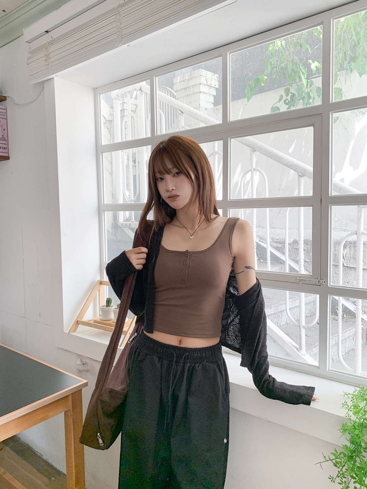 크롭 기장감과 슬림하게 떨어지는 핏감의 기본 나시