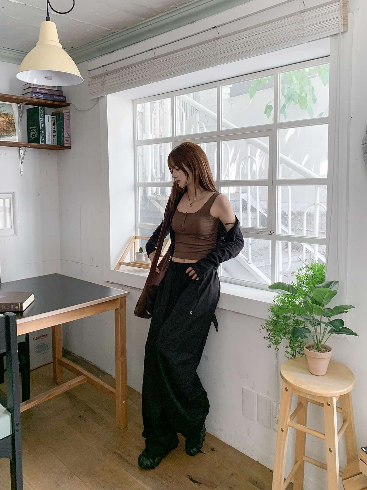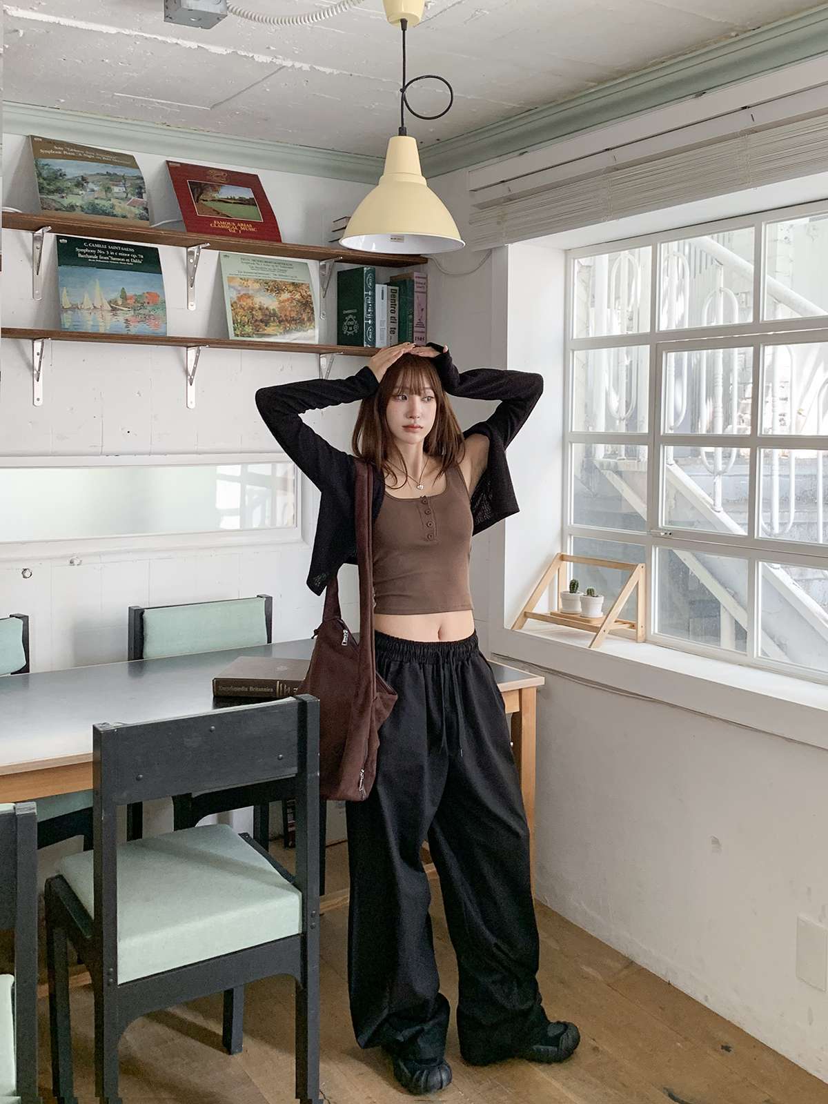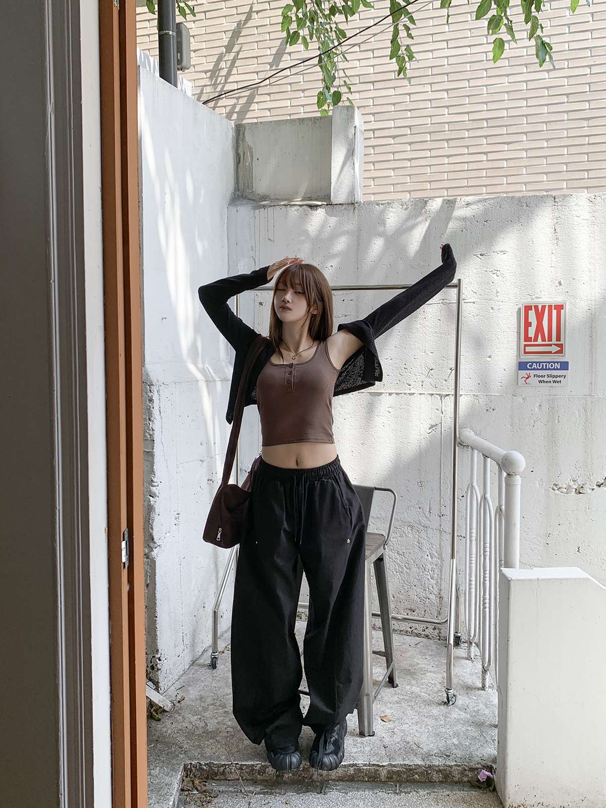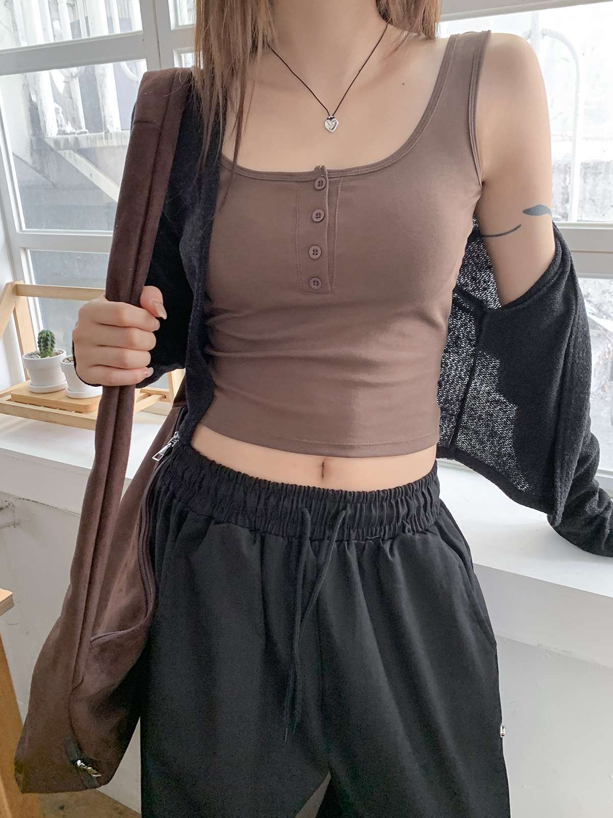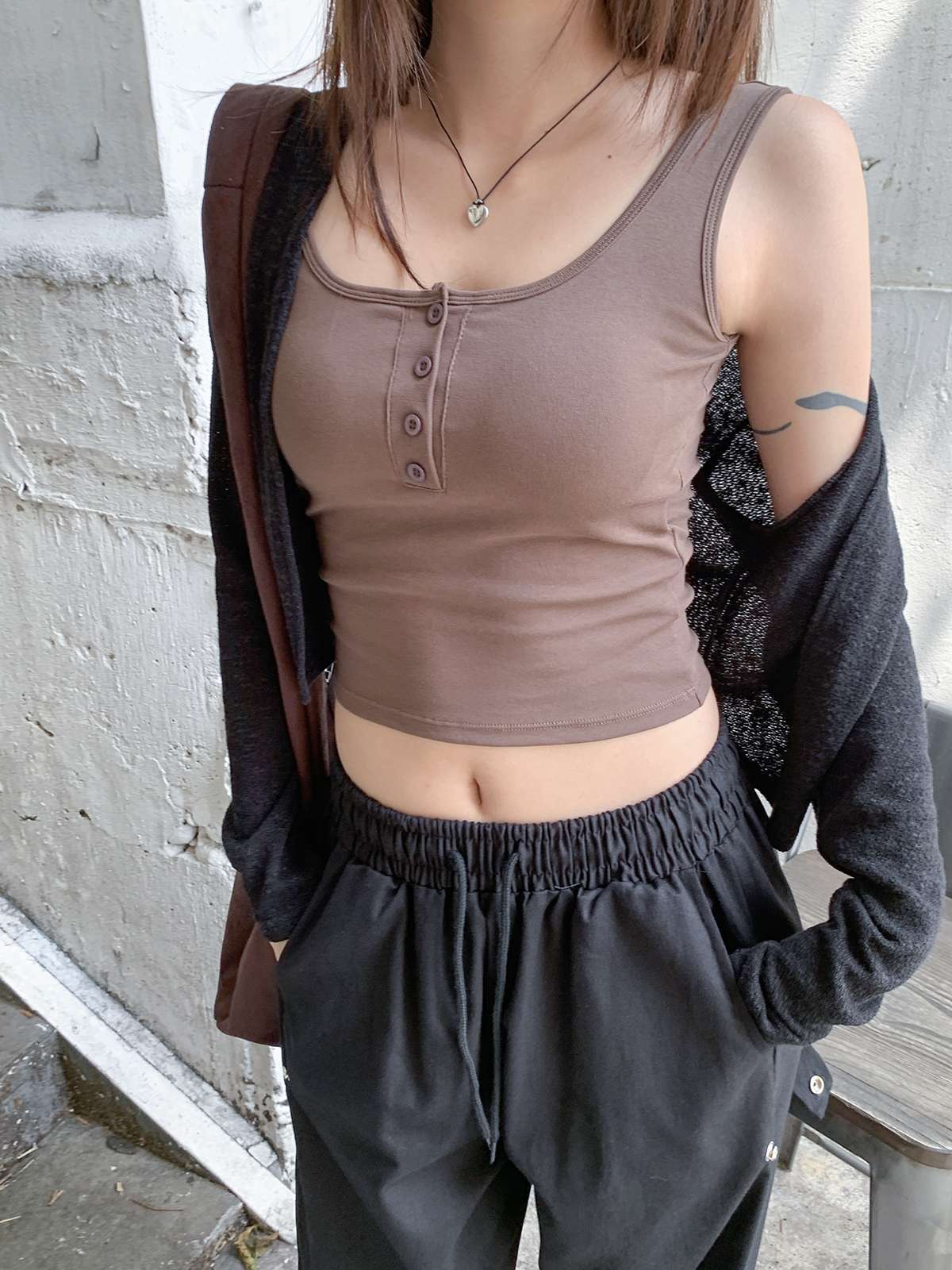 크롭 기장감과 슬림하게 떨어지는 핏감의 기본 나시