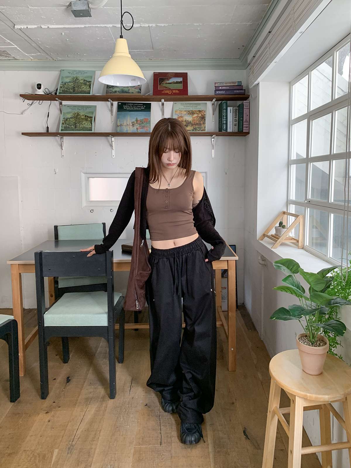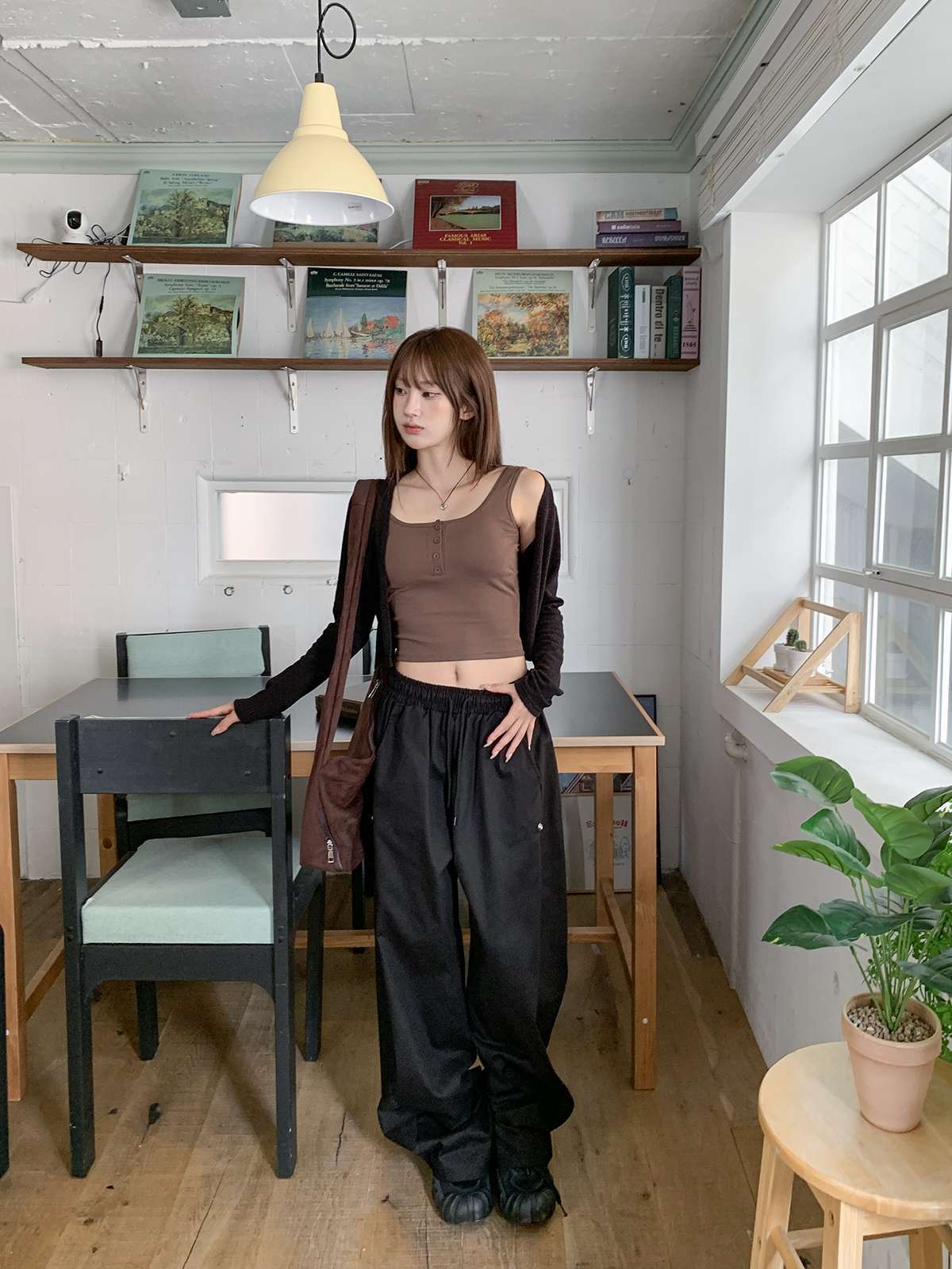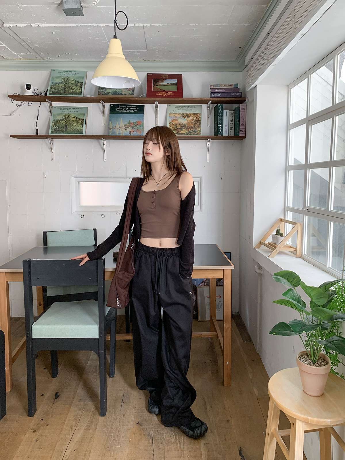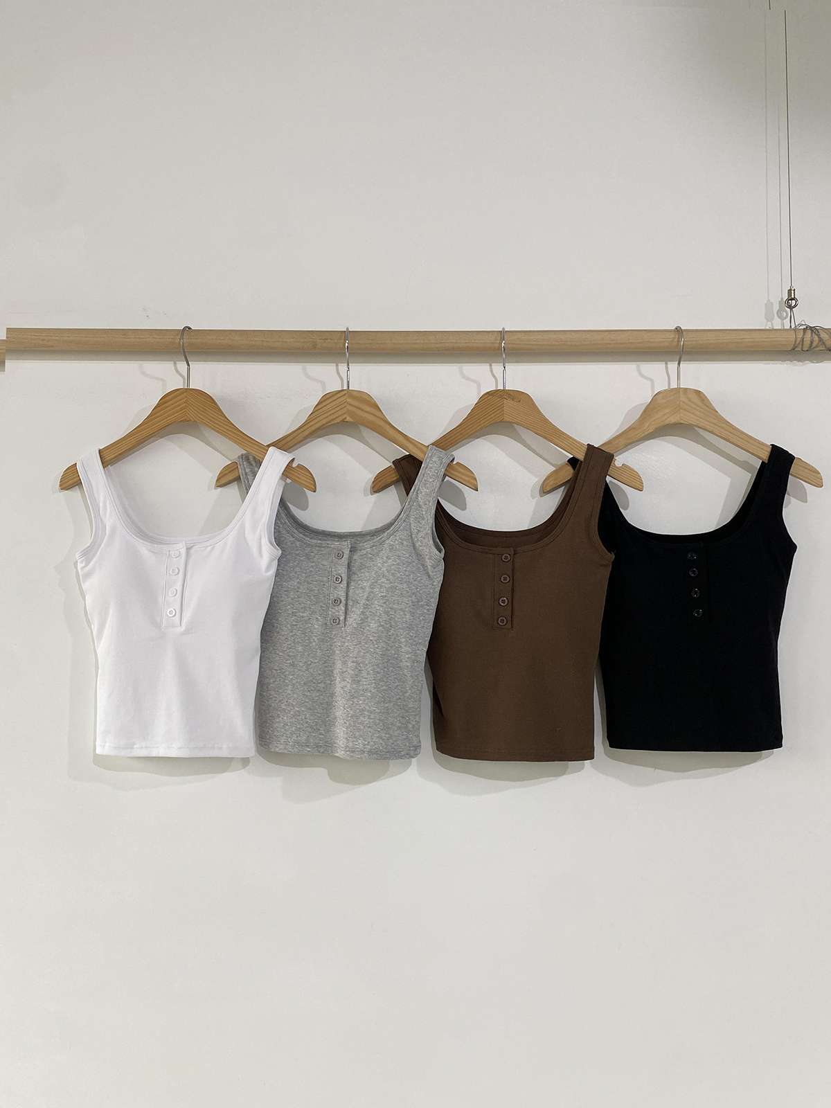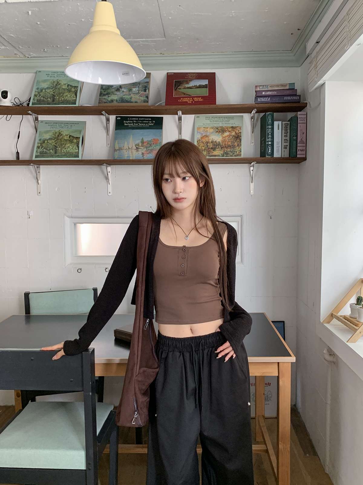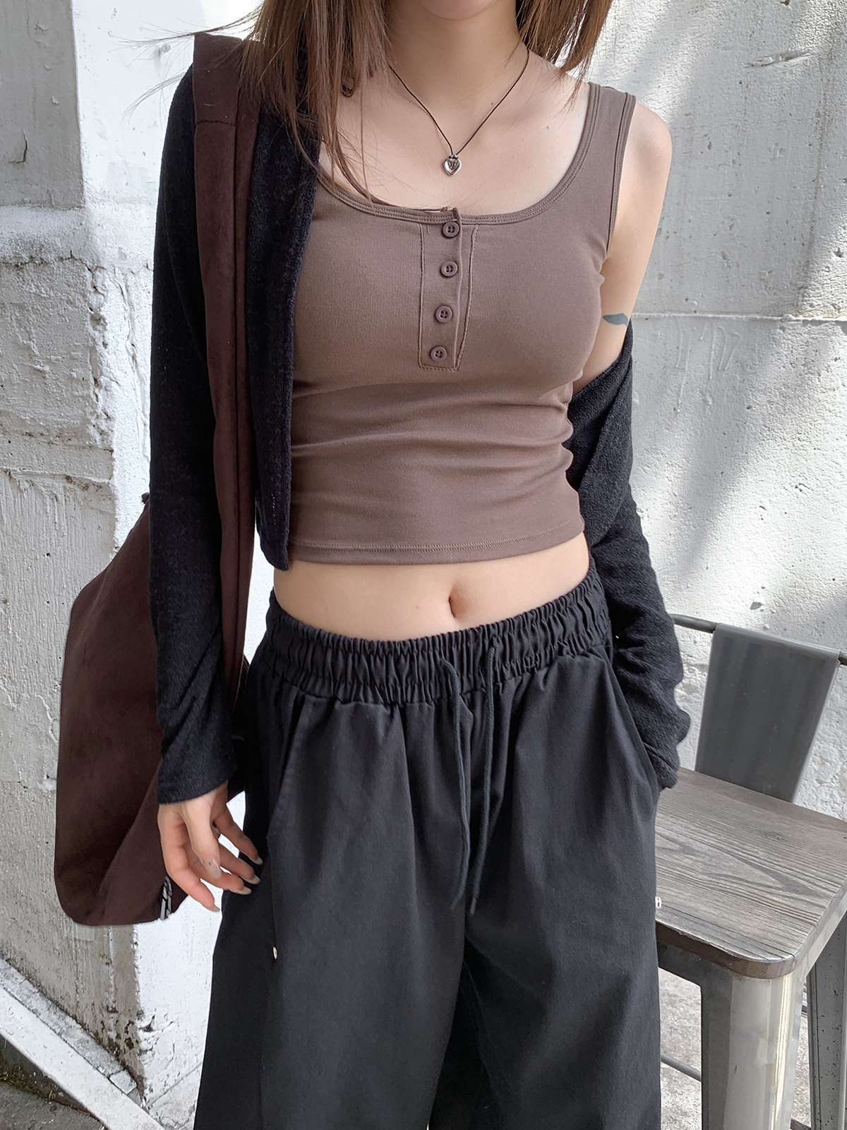 크롭 기장감과 슬림하게 떨어지는 핏감의 기본 나시