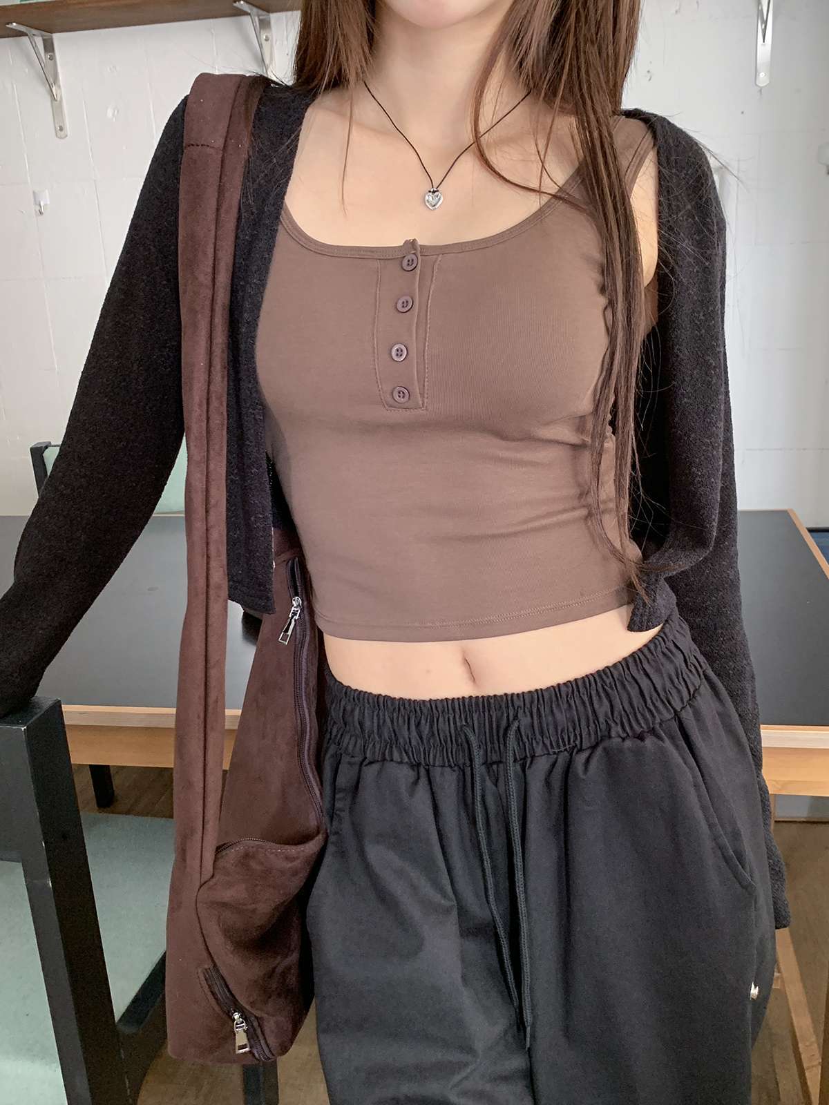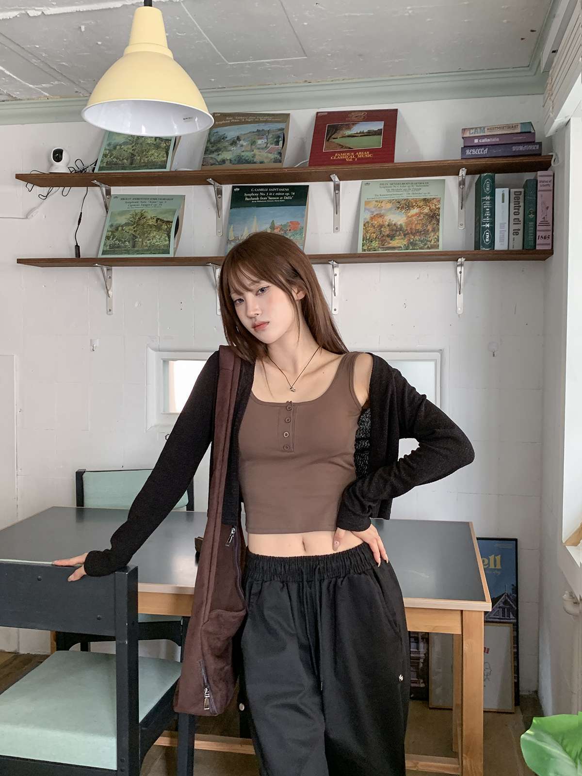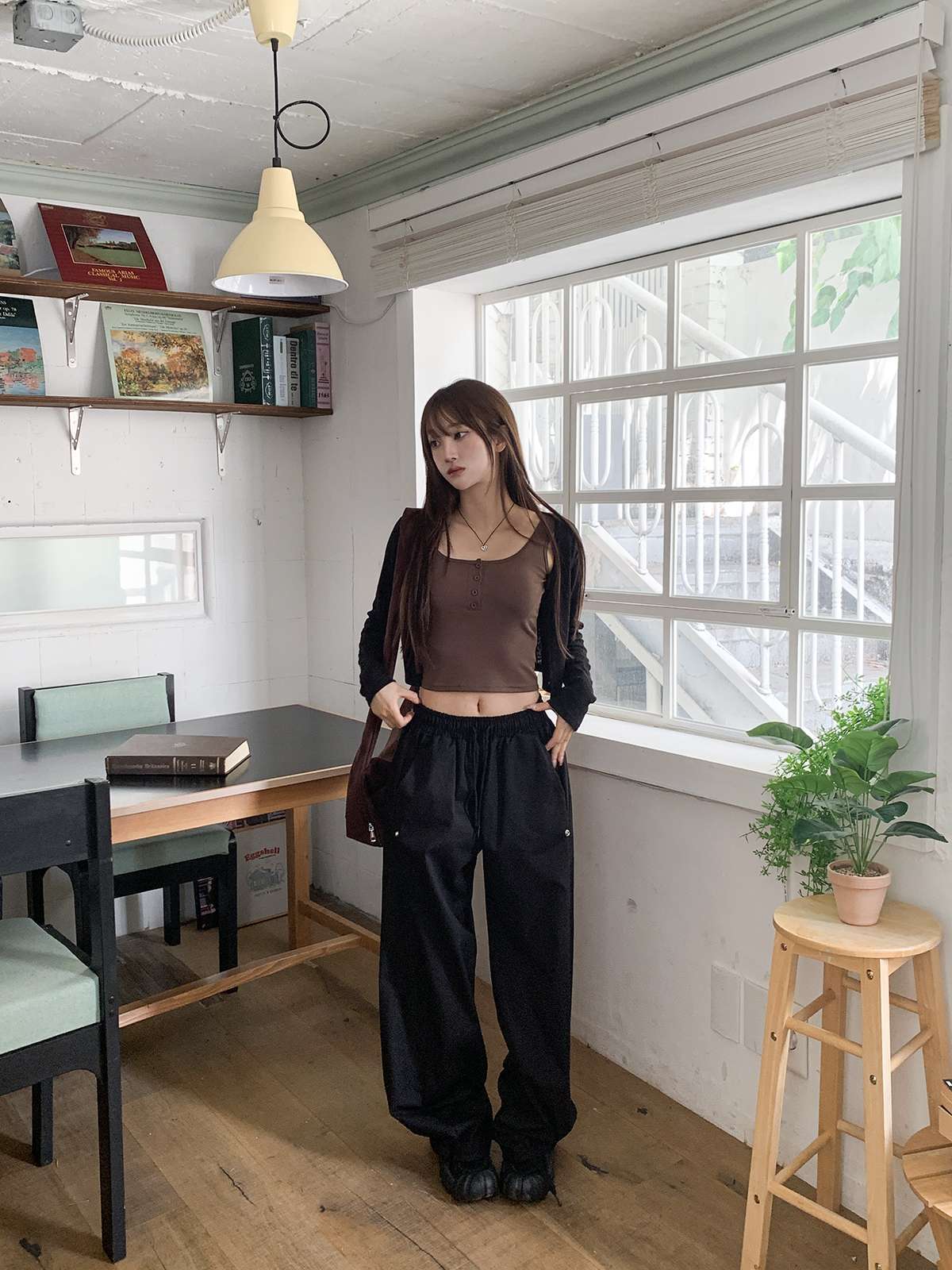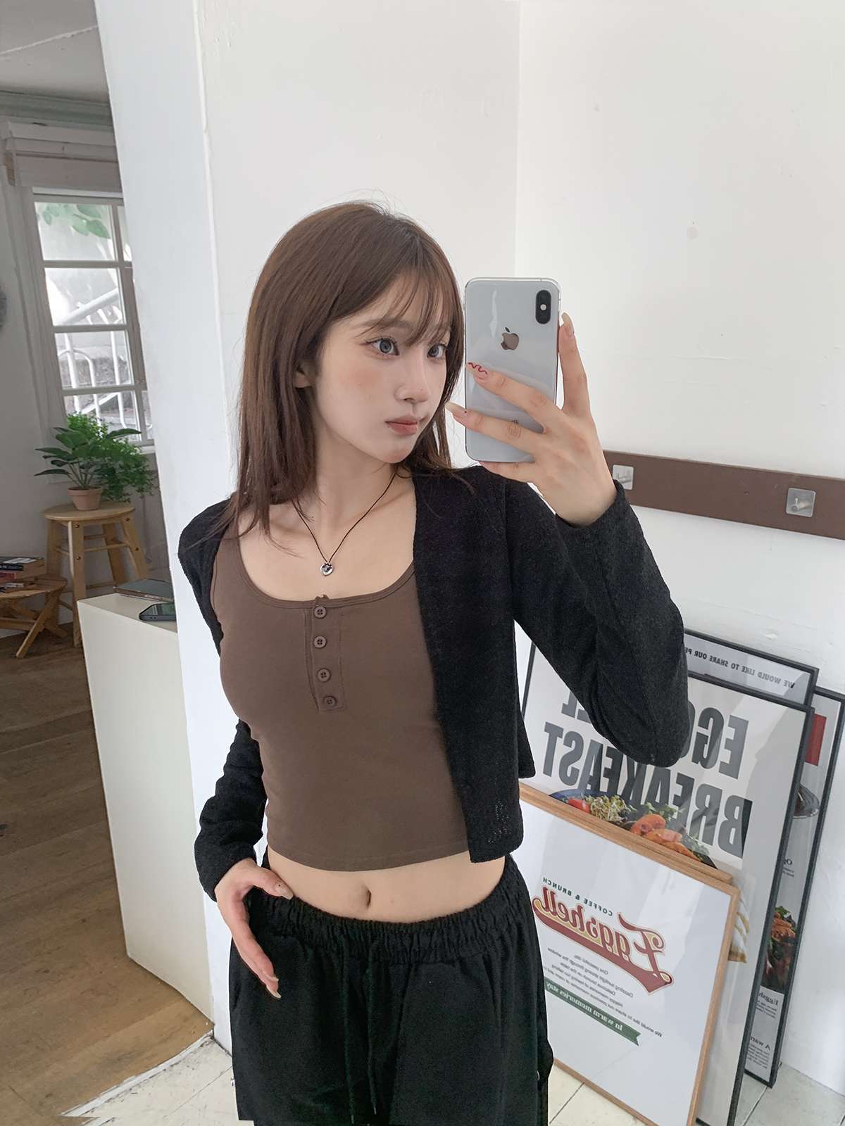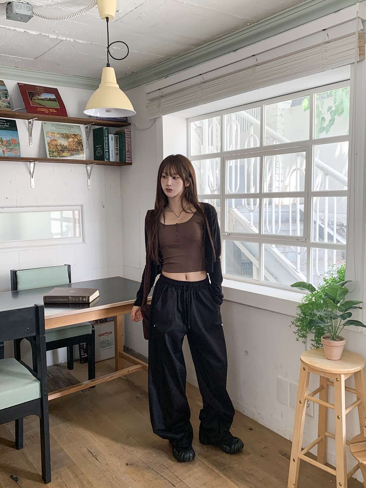 크롭 기장감과 슬림하게 떨어지는 핏감의 기본 나시