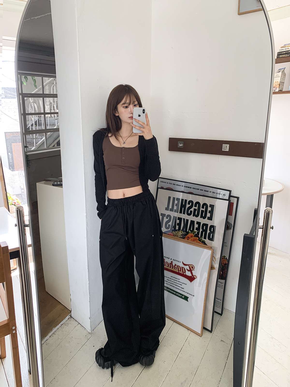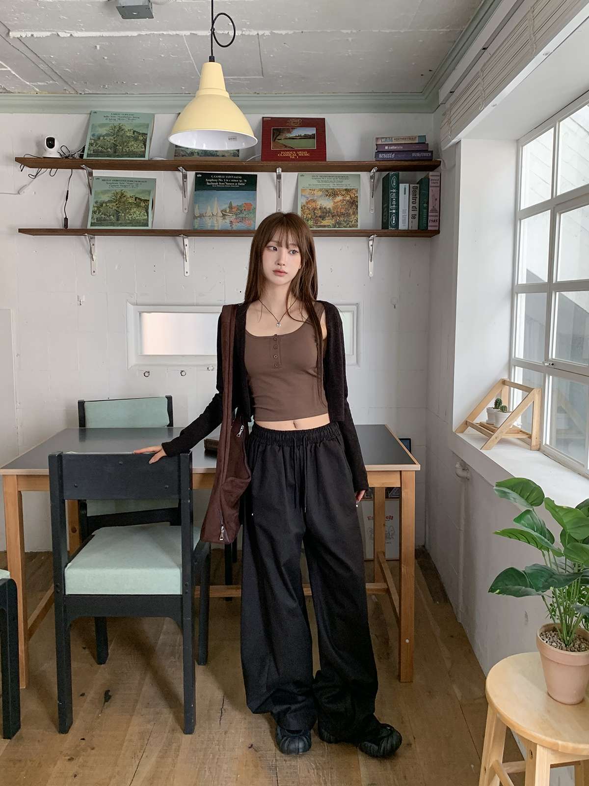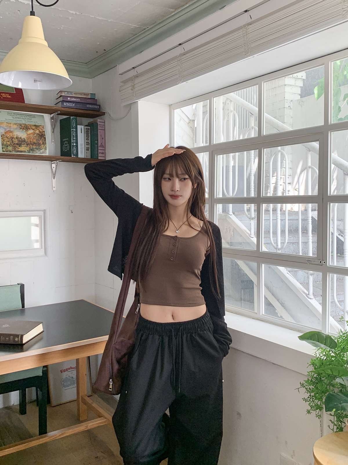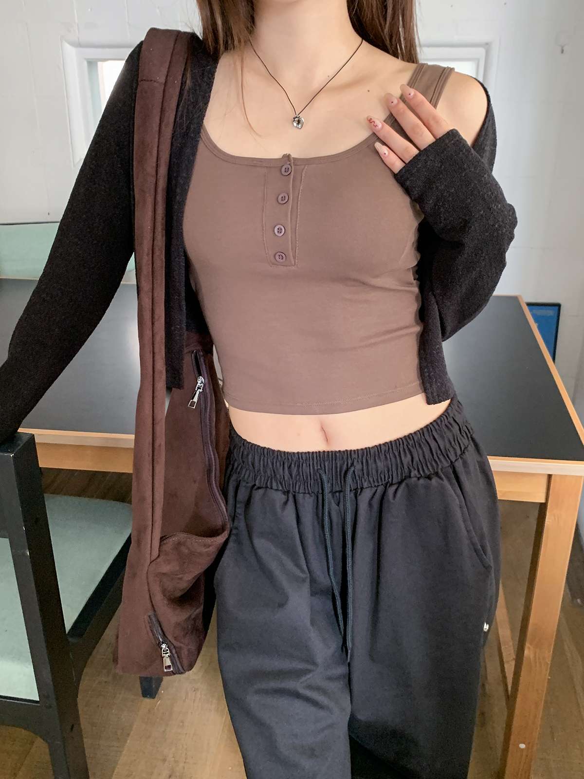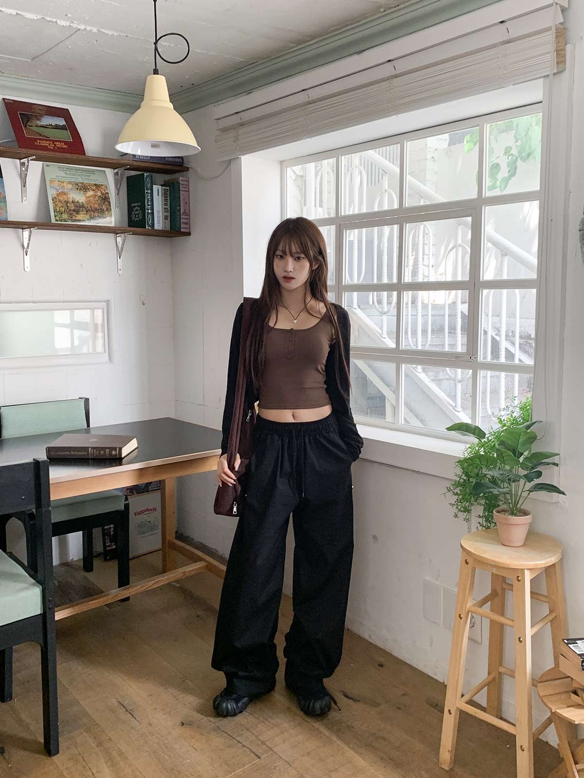 크롭 기장감과 슬림하게 떨어지는 핏감의 기본 나시