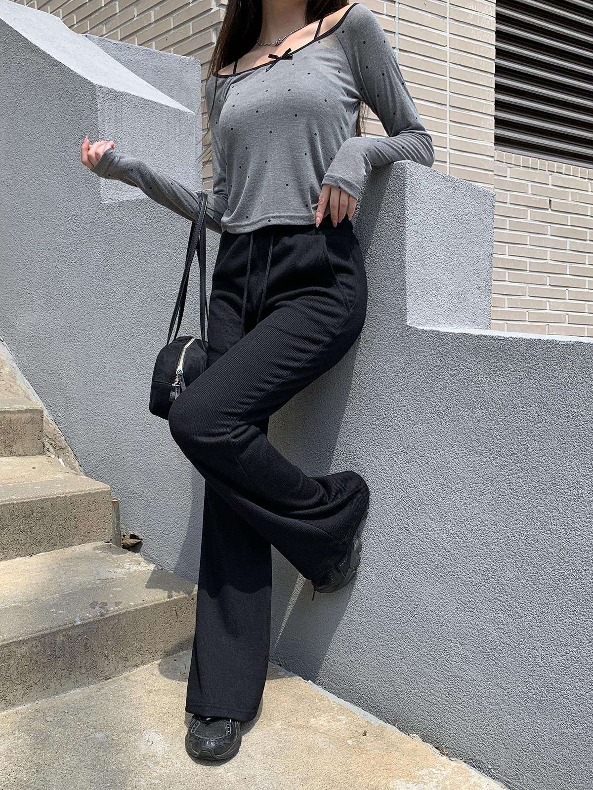 편안한 착용감과 트렌디한 디자인을 모두 갖춘 밴딩 골지 부츠컷 팬츠