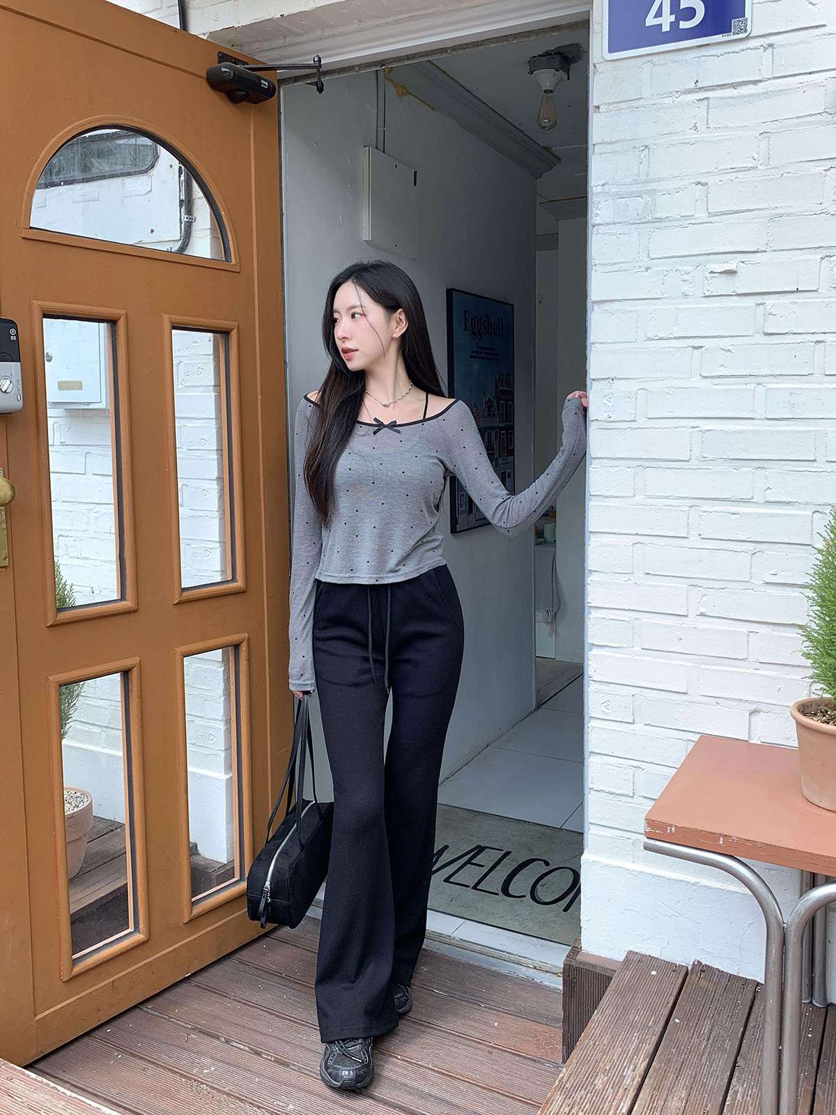 [ PT15388K58-그이큐 골지 부츠컷 허리밴딩 팬츠 ]