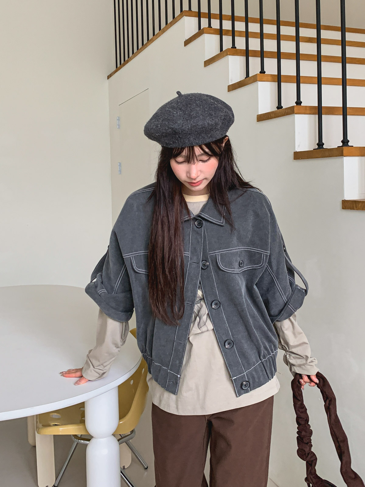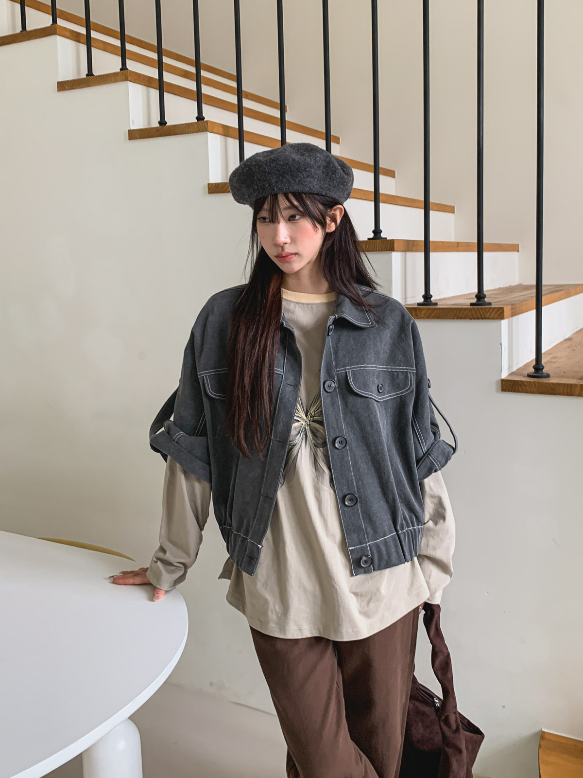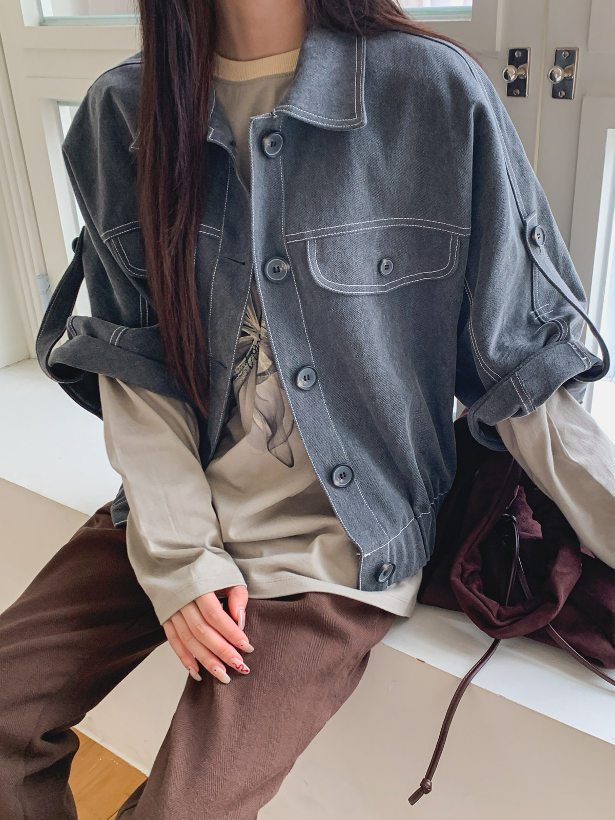 JK6026K58-겔하데 피그먼트 워싱 오버핏 롤업 자켓