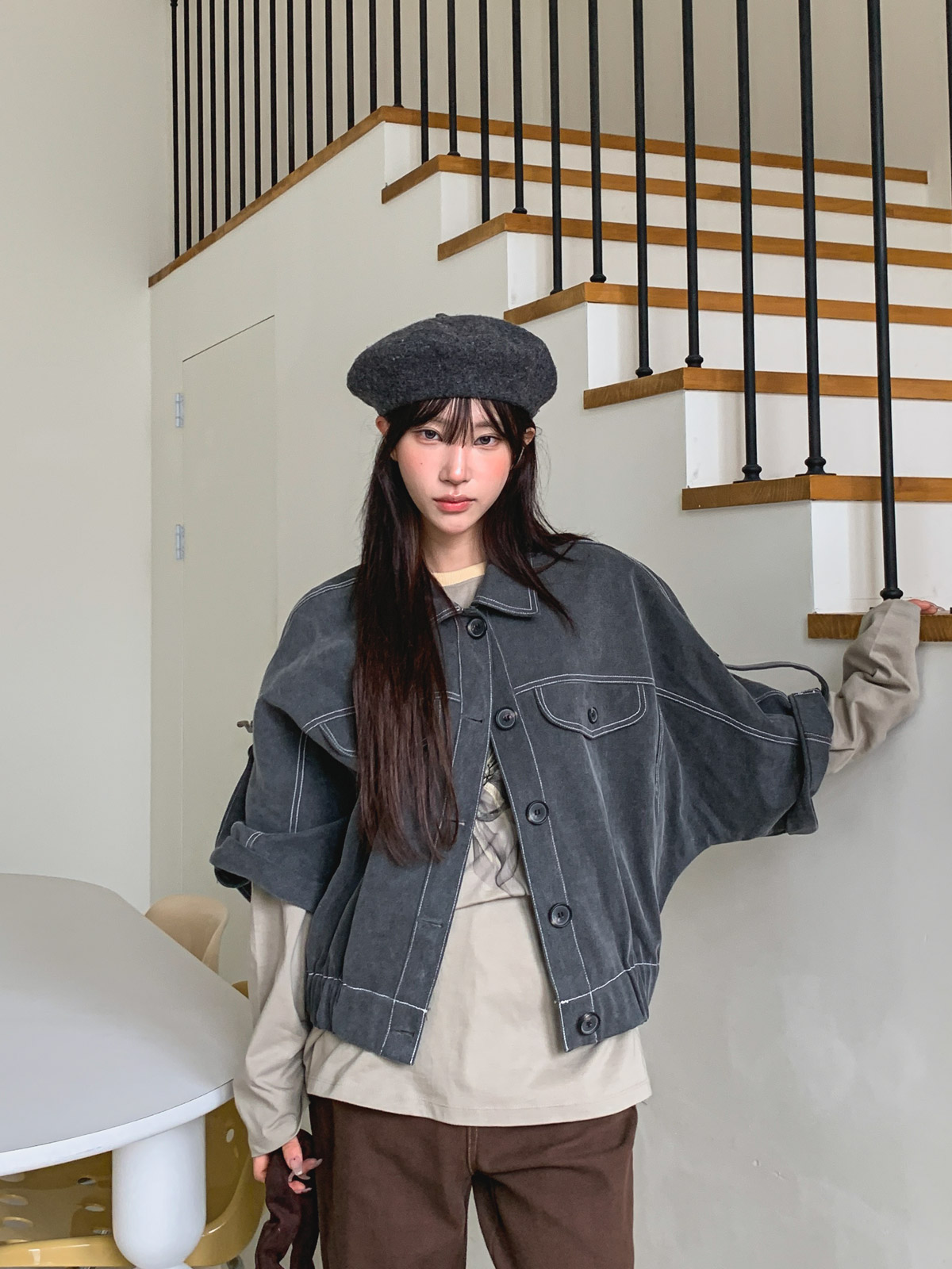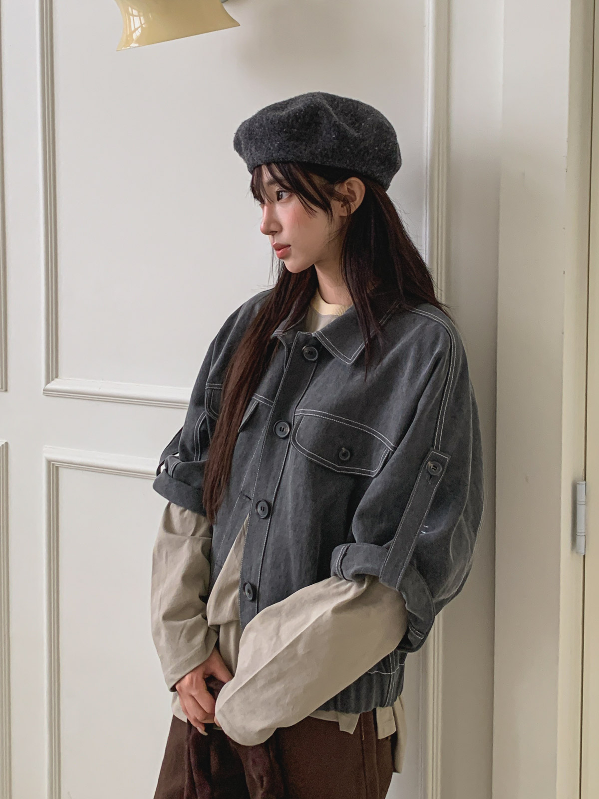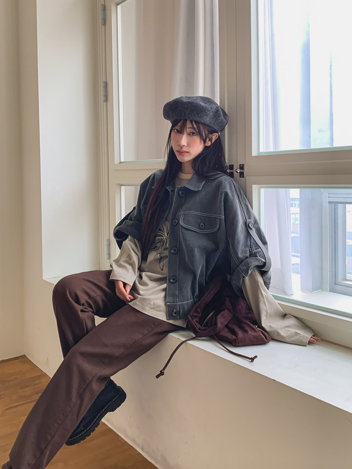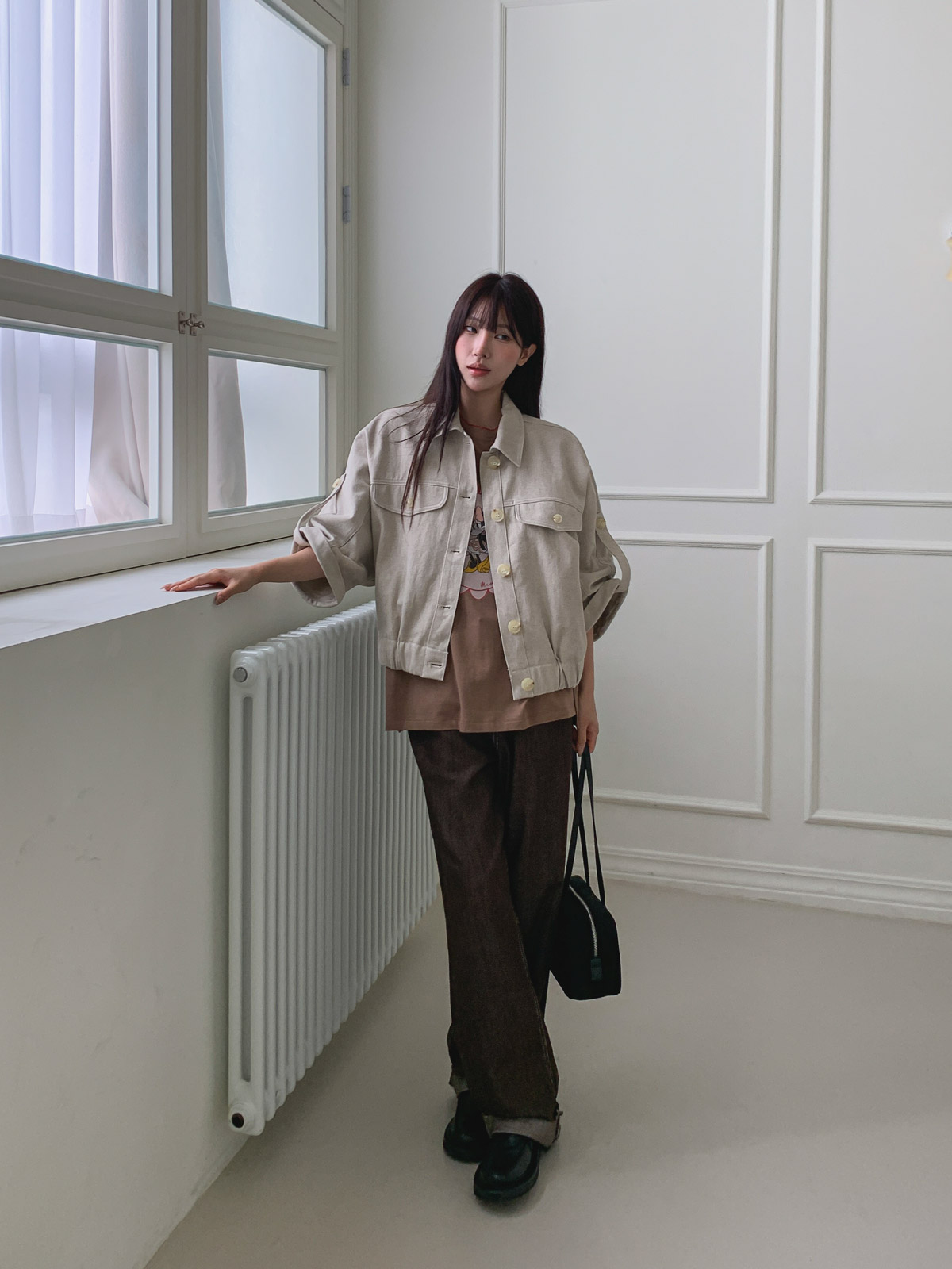 JK6026K58-겔하데 피그먼트 워싱 오버핏 롤업 자켓