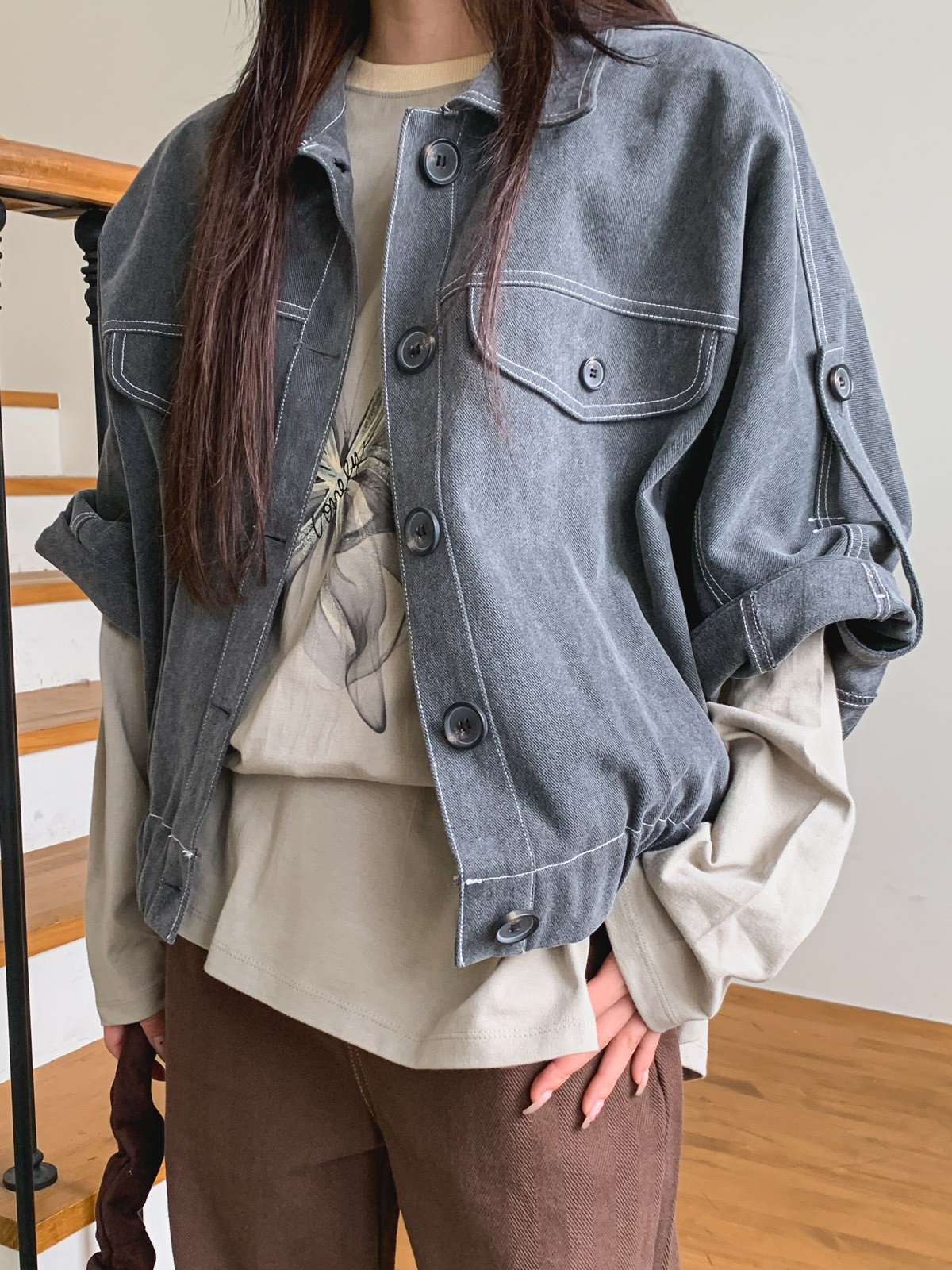 빈티지한 워싱 처리와 루즈한 오버핏 롤업 자켓