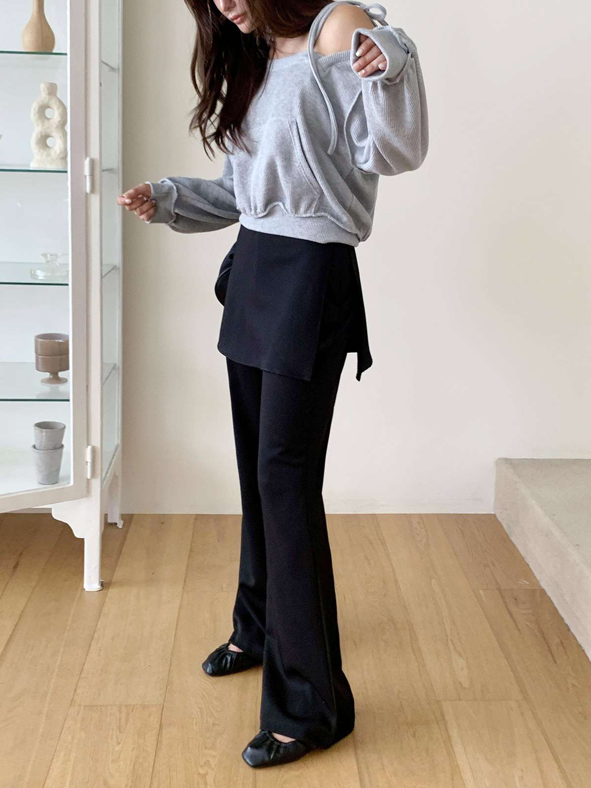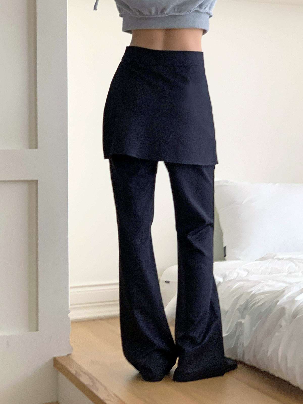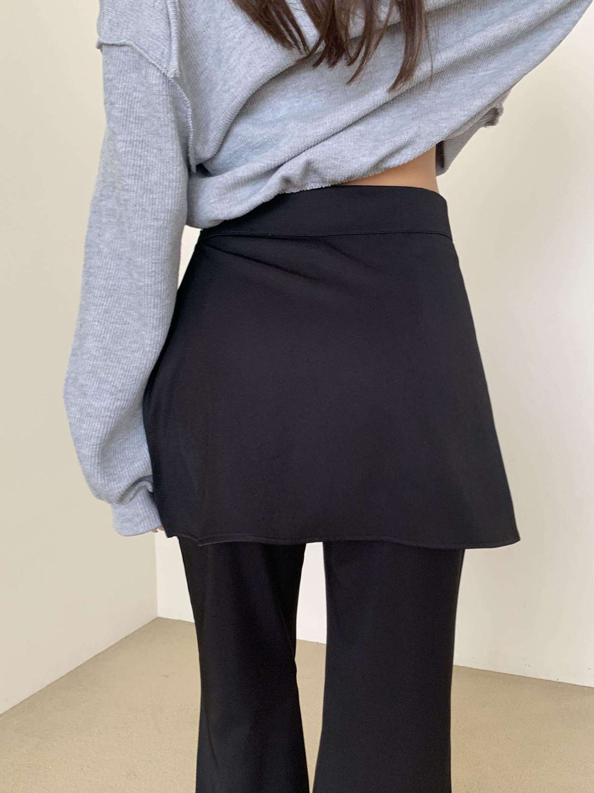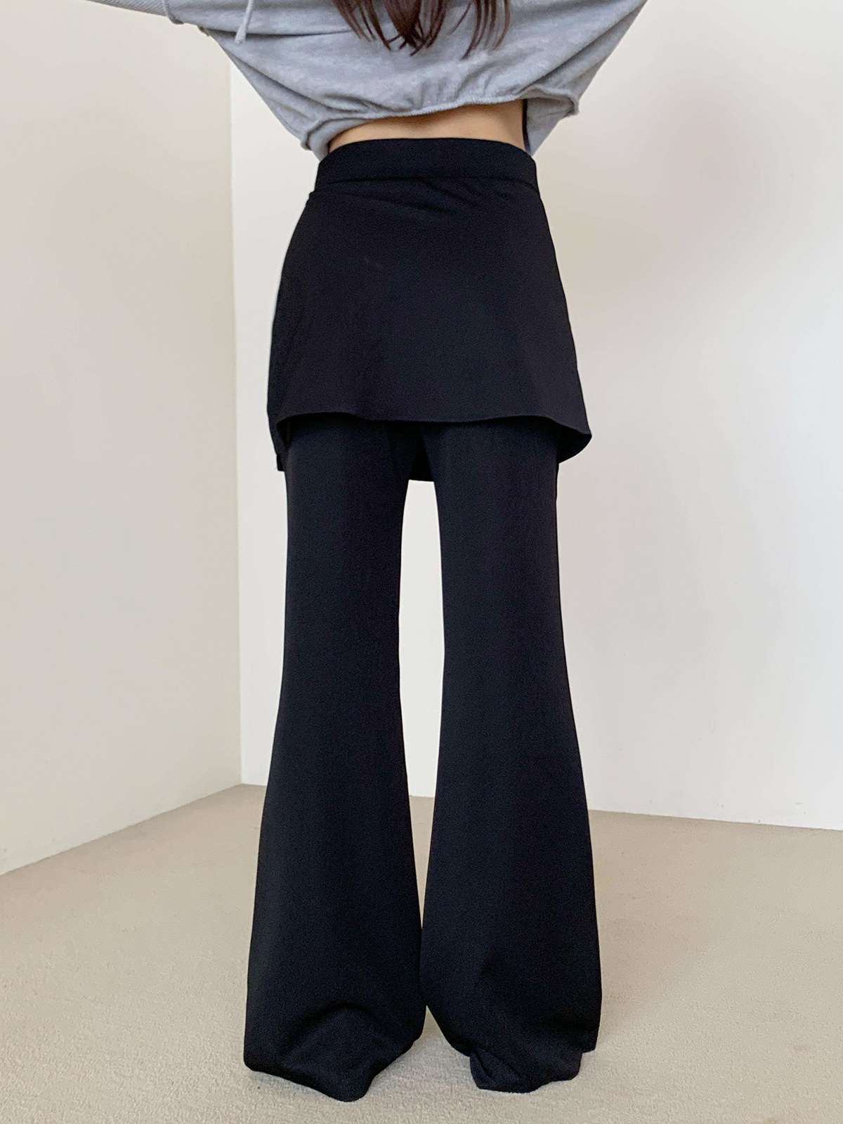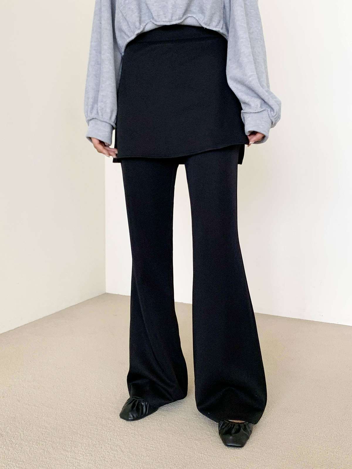슬랙스와 미니 랩 스커트가 하나로 연결된 유니크한 디자인의 부츠컷 슬랙스