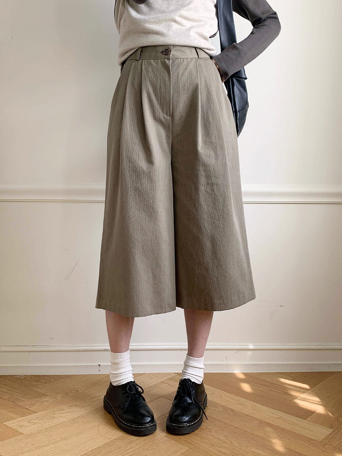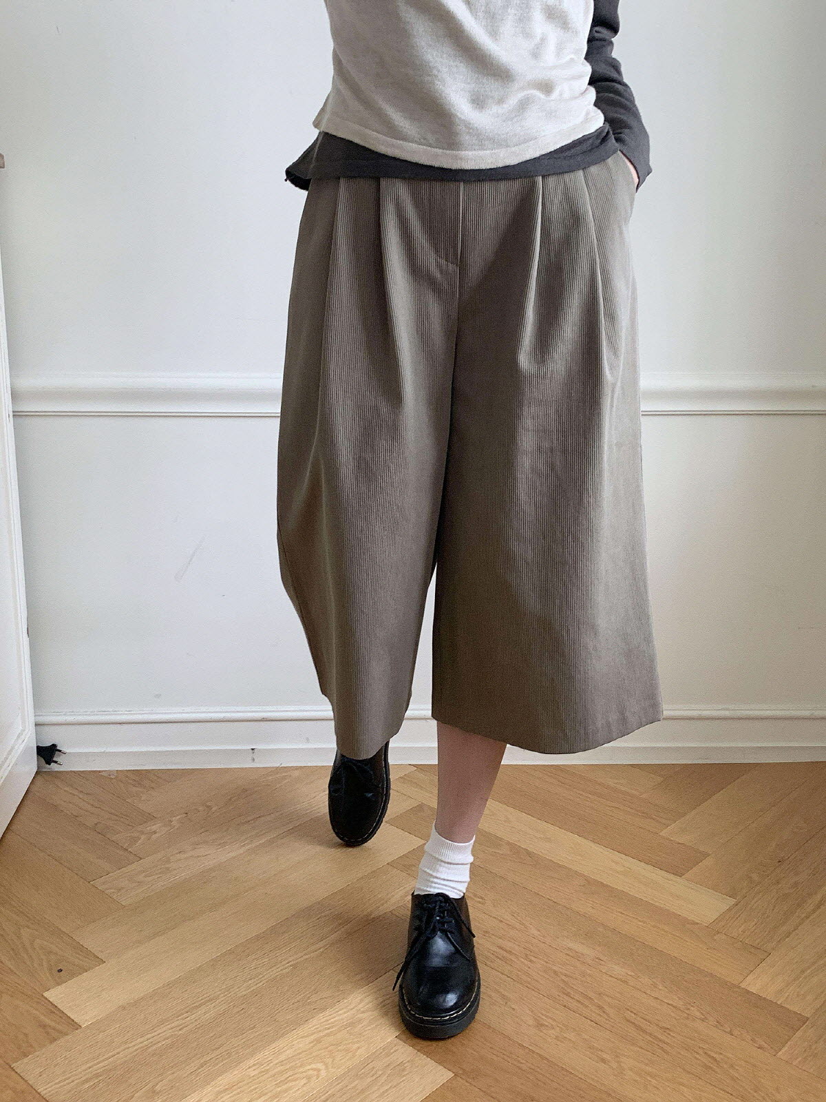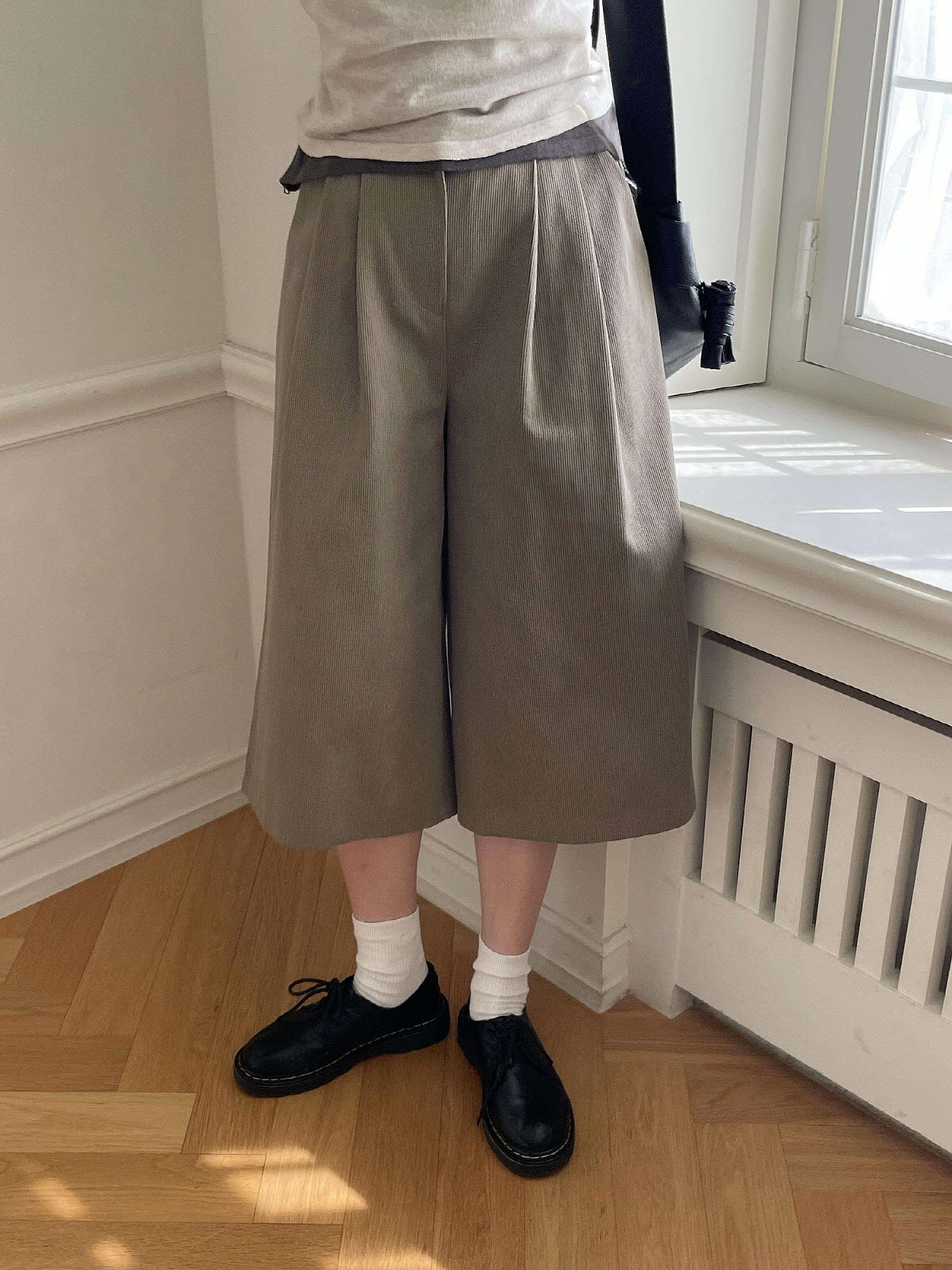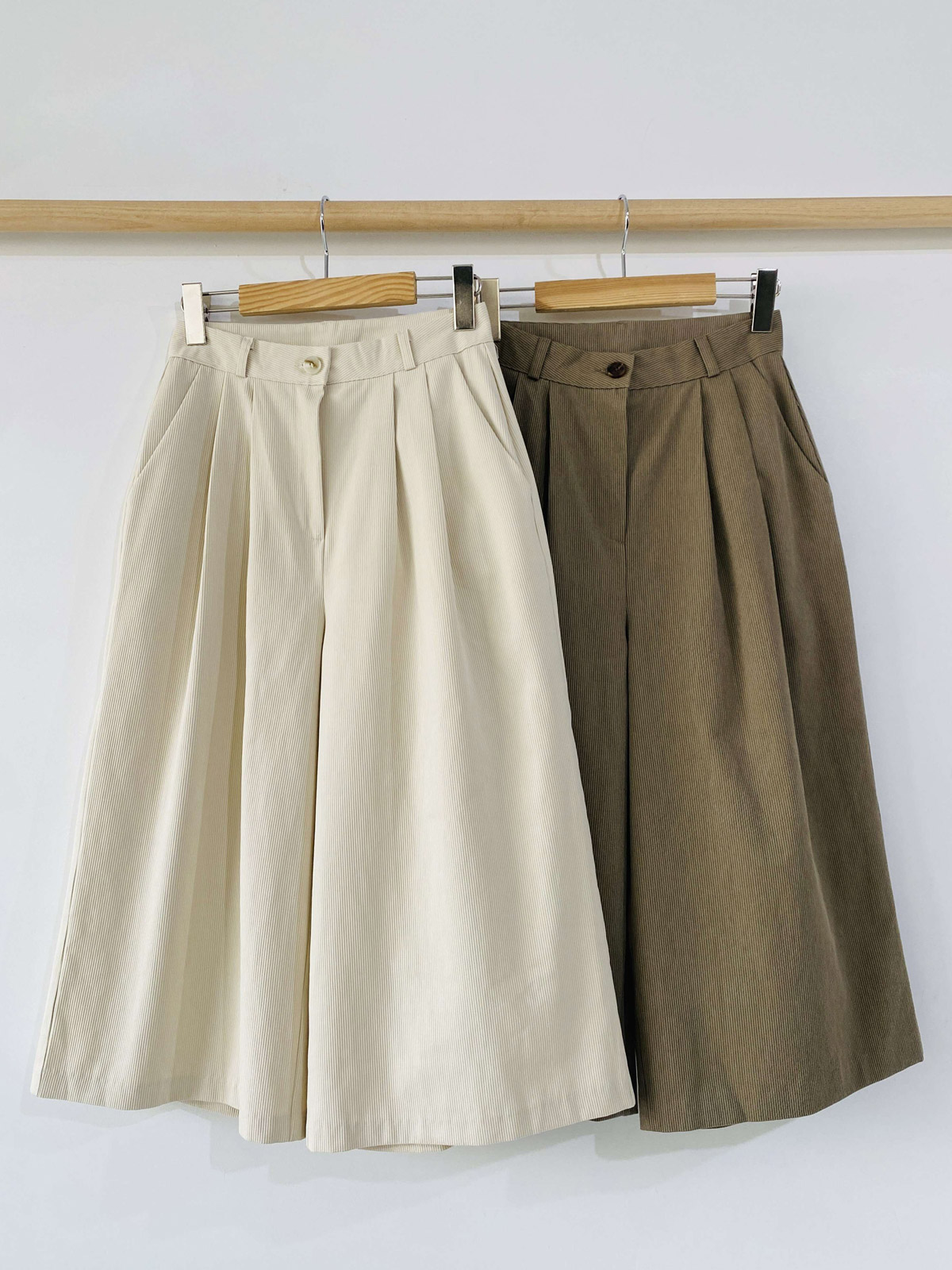 [ PT15405K58-으레베 골덴 투핀턱 와이드 8부 버뮤다 팬츠 ]