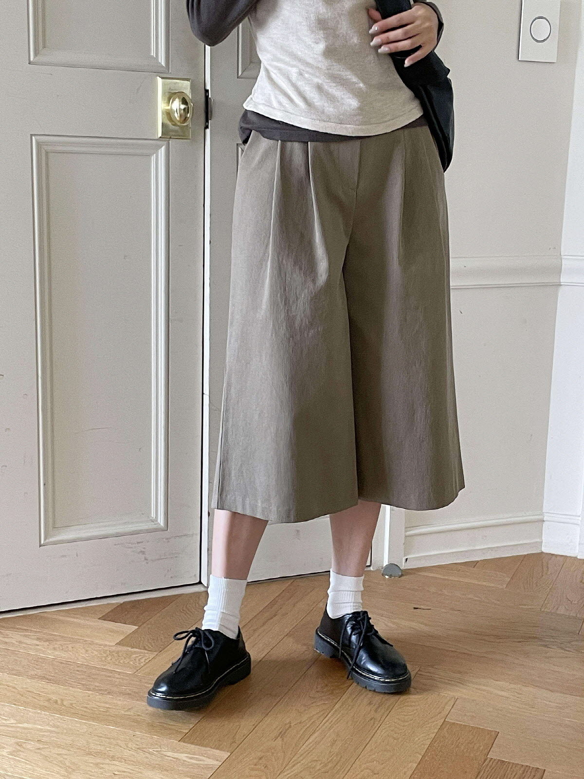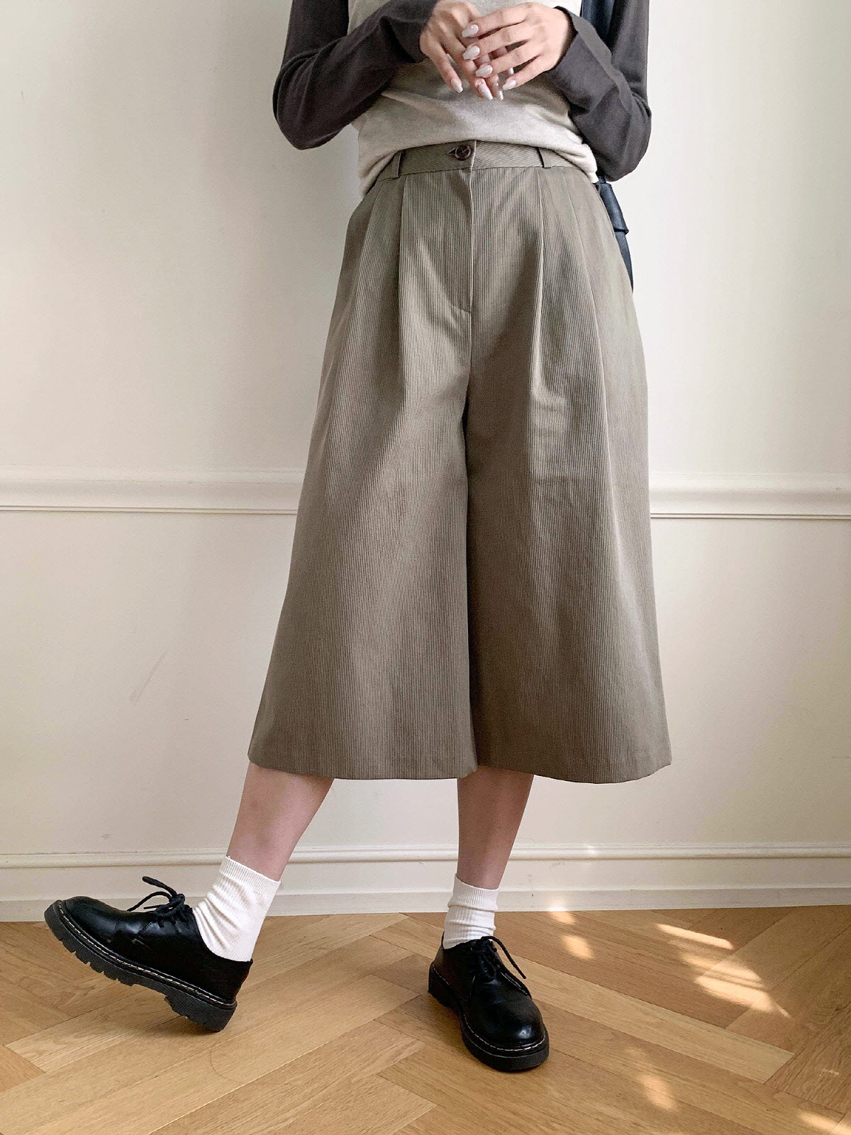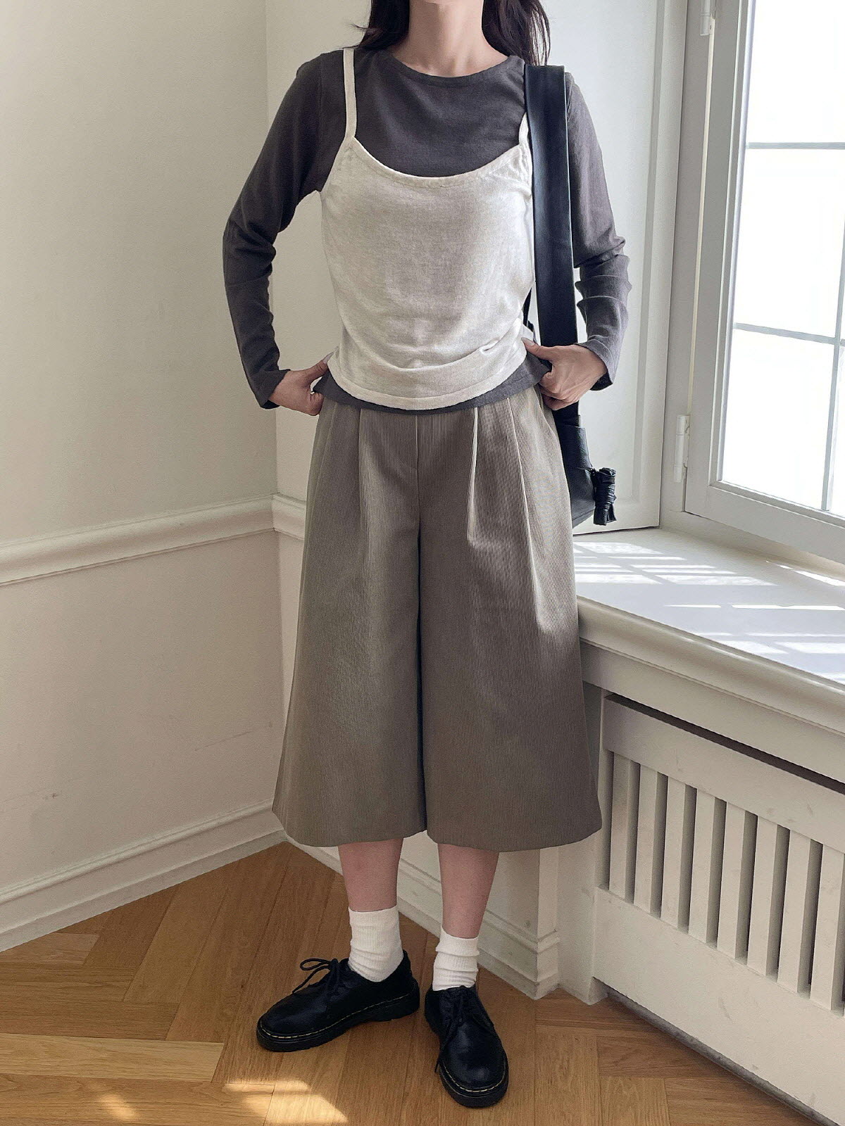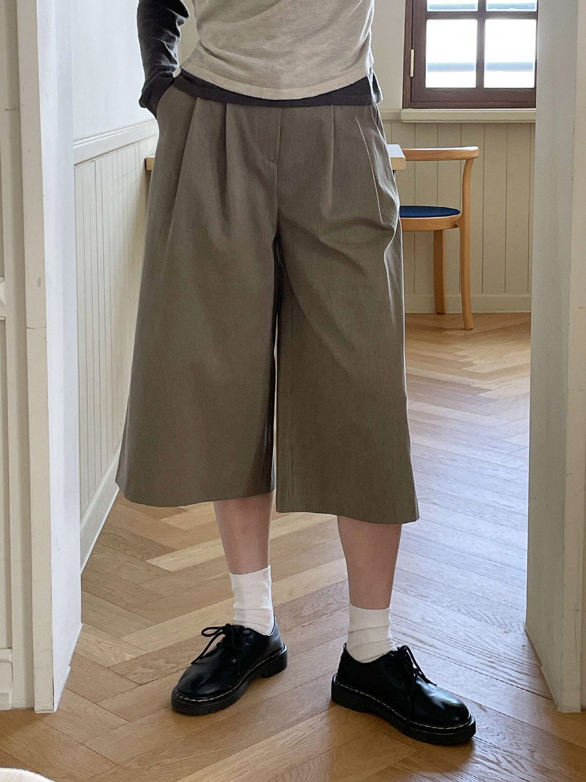 [ PT15405K58-으레베 골덴 투핀턱 와이드 8부 버뮤다 팬츠 ]