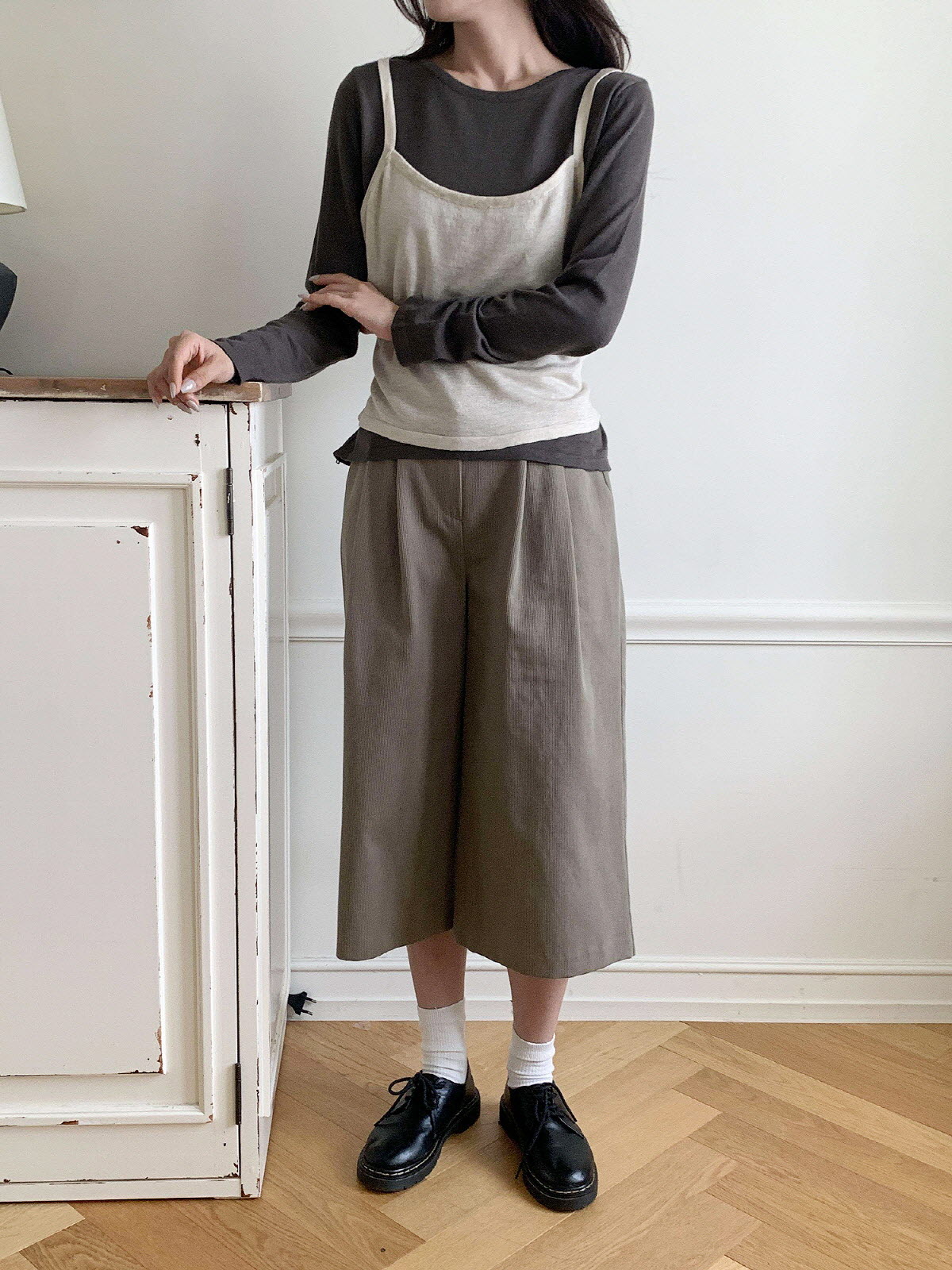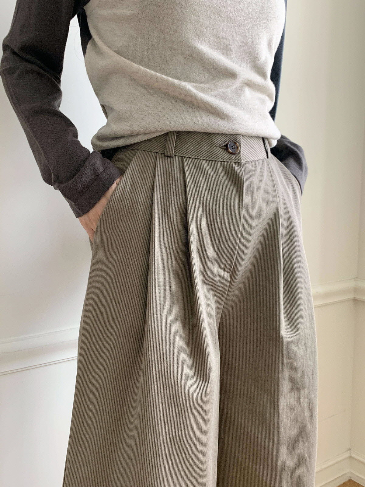 투 핀턱 디테일이 멋스러운 와이드 핏을 연출해주고,