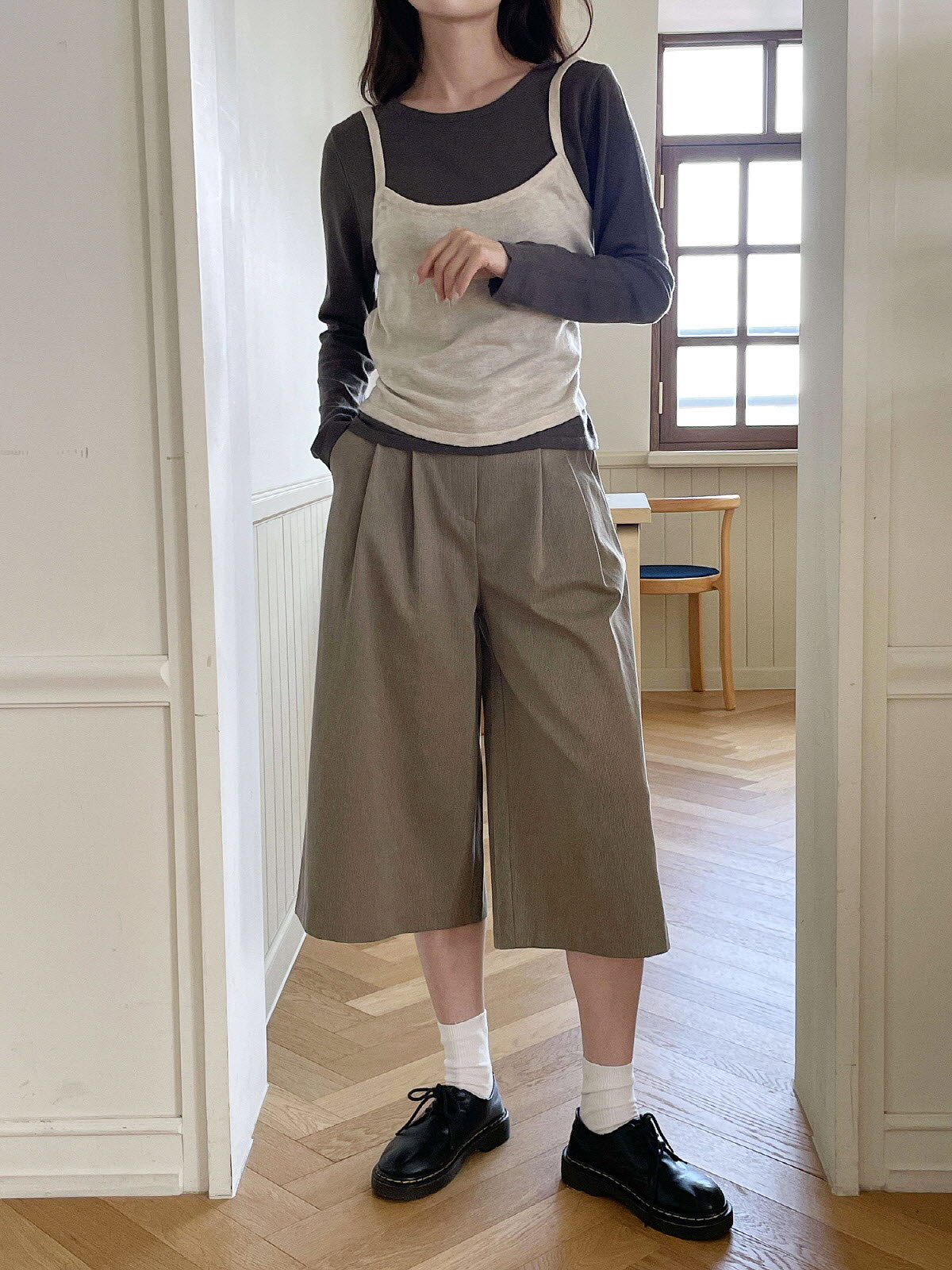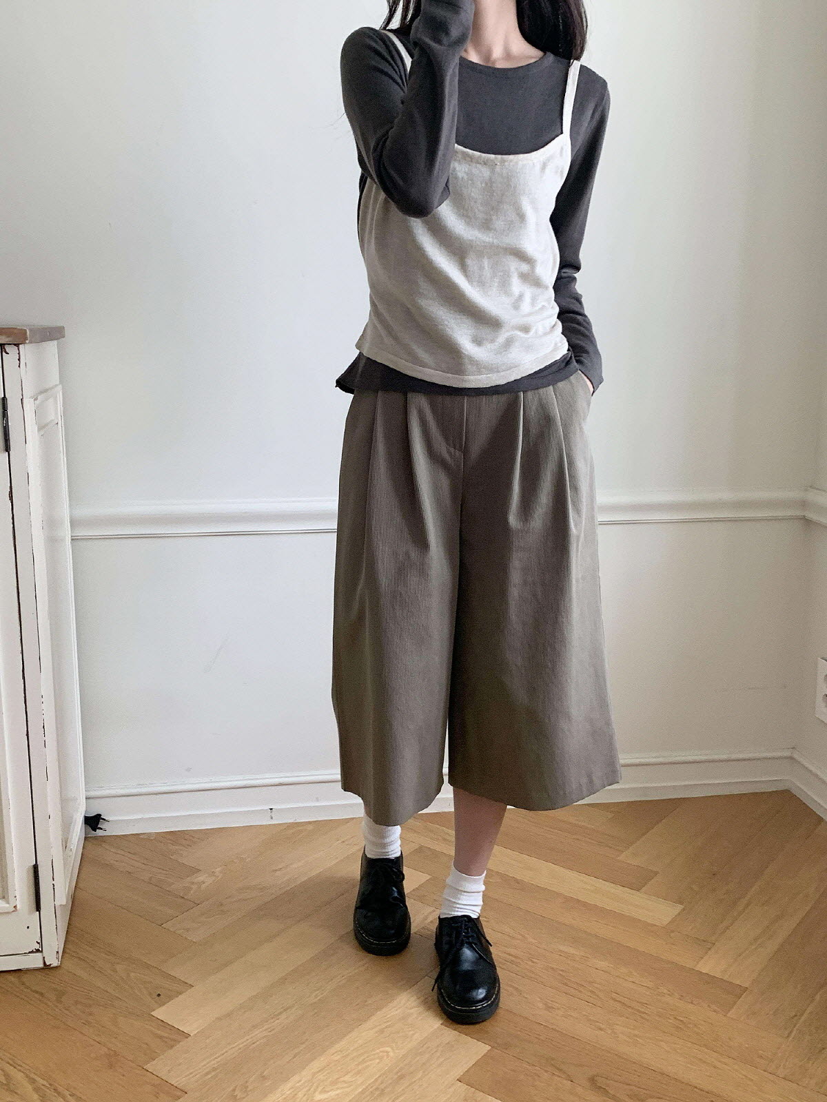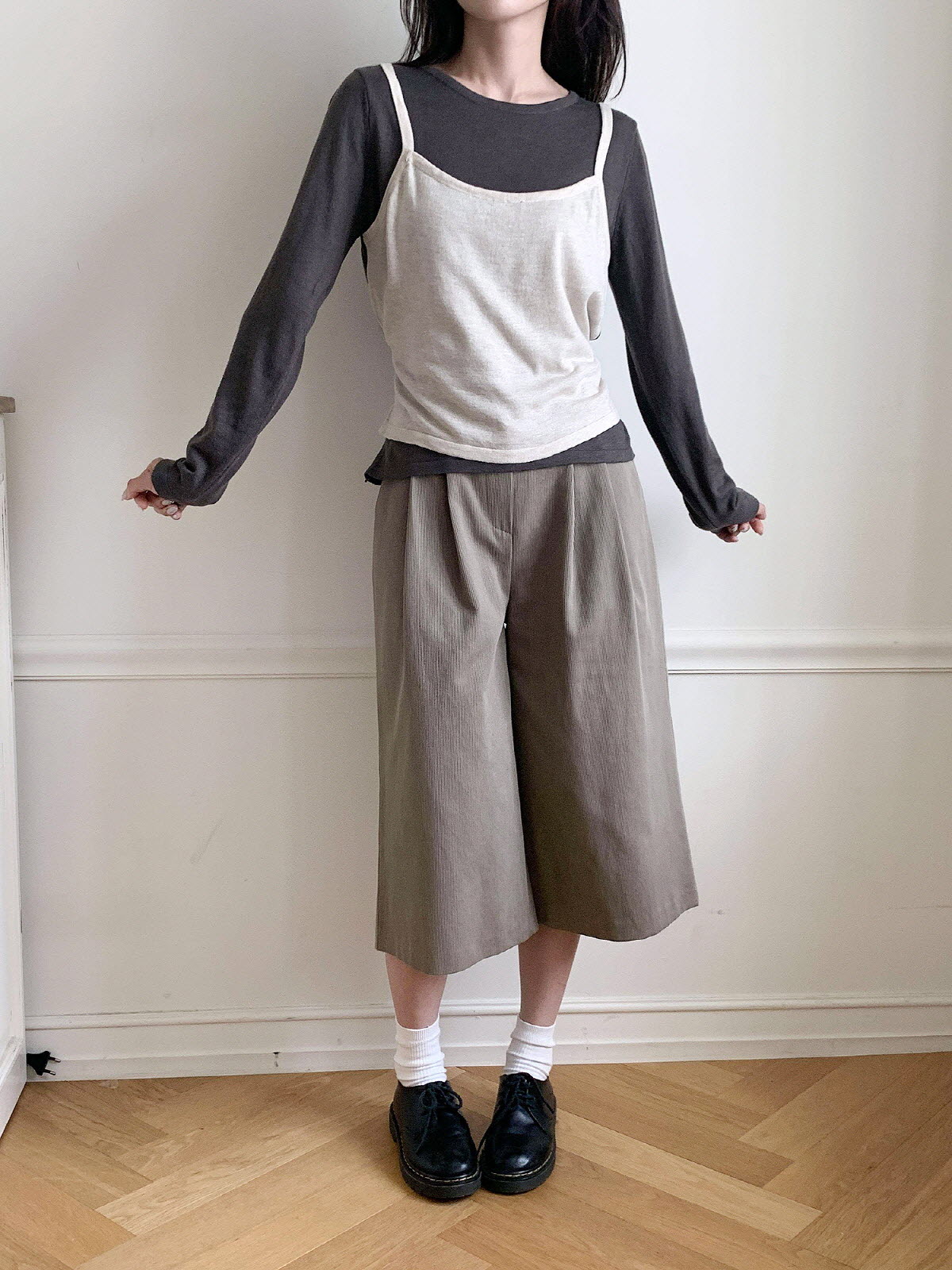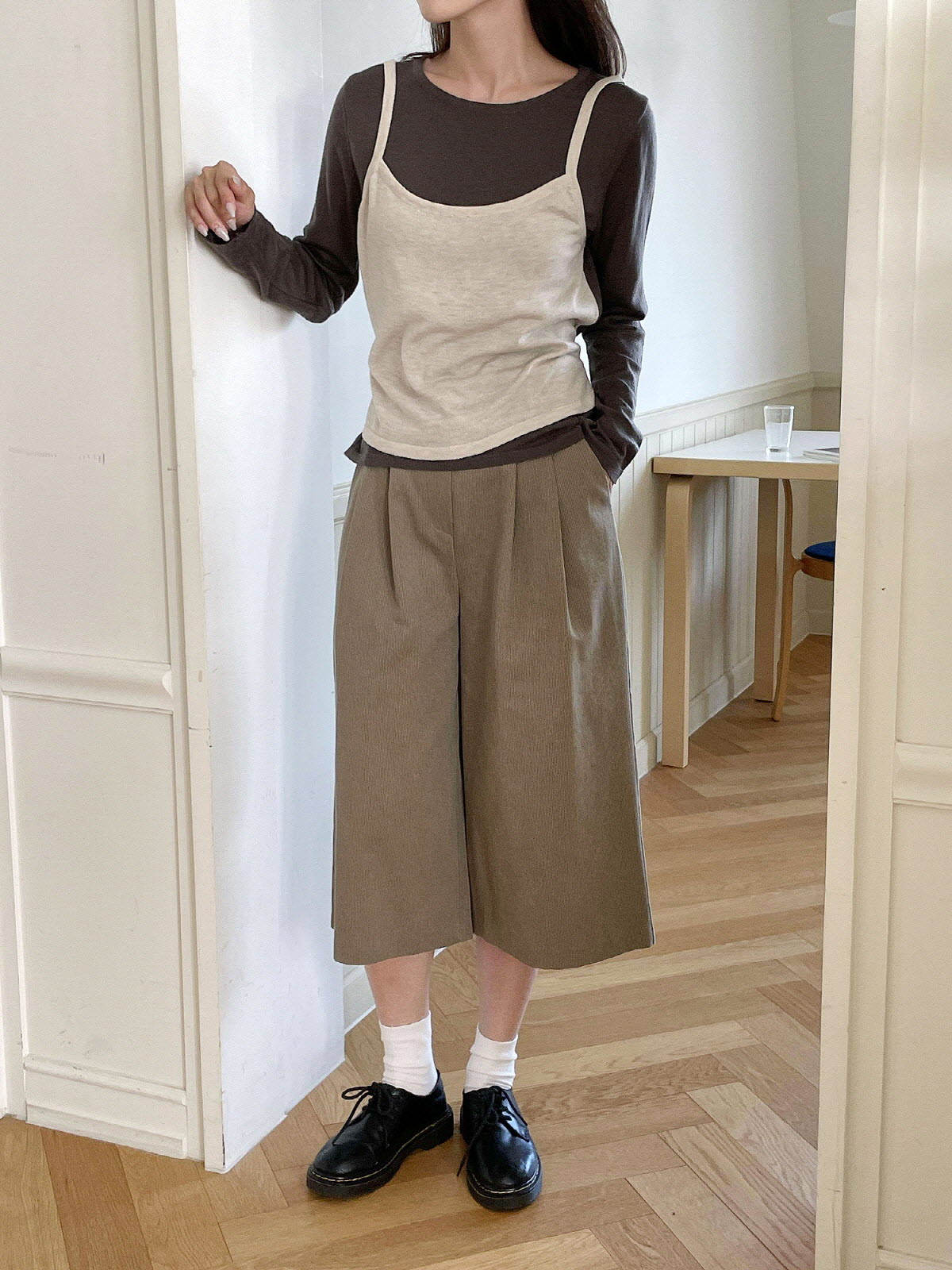 PT15405K58-으레베 골덴 투핀턱 와이드 8부 버뮤다 팬츠