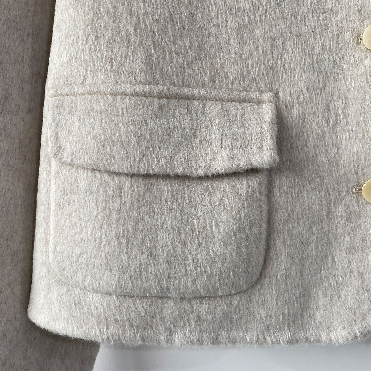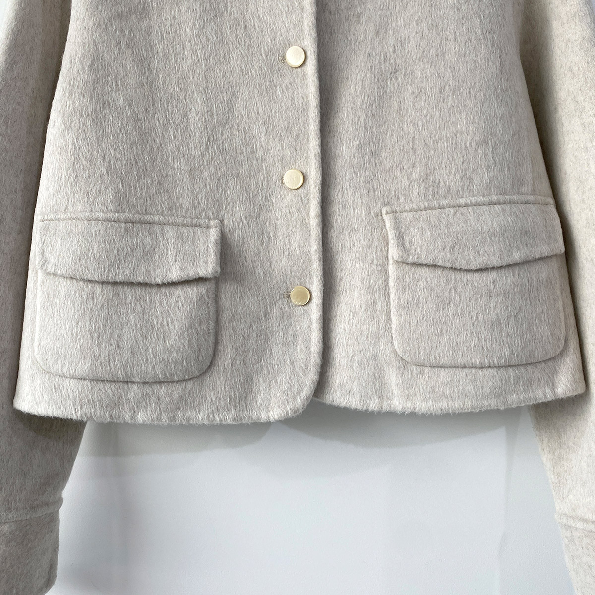 고급스러운 울 소재의 핸드메이드로 제작되어 부드러운 터치감과 우수한 퀄리티가 느껴지는 숏코트