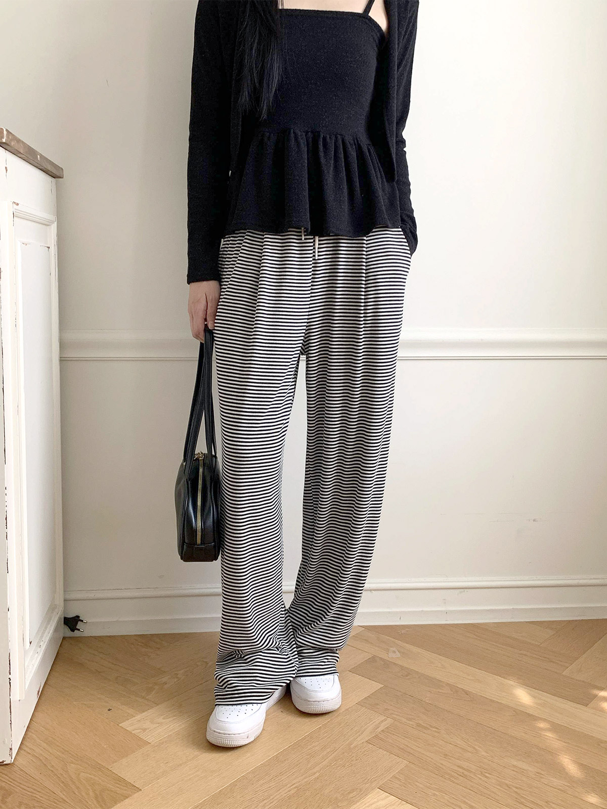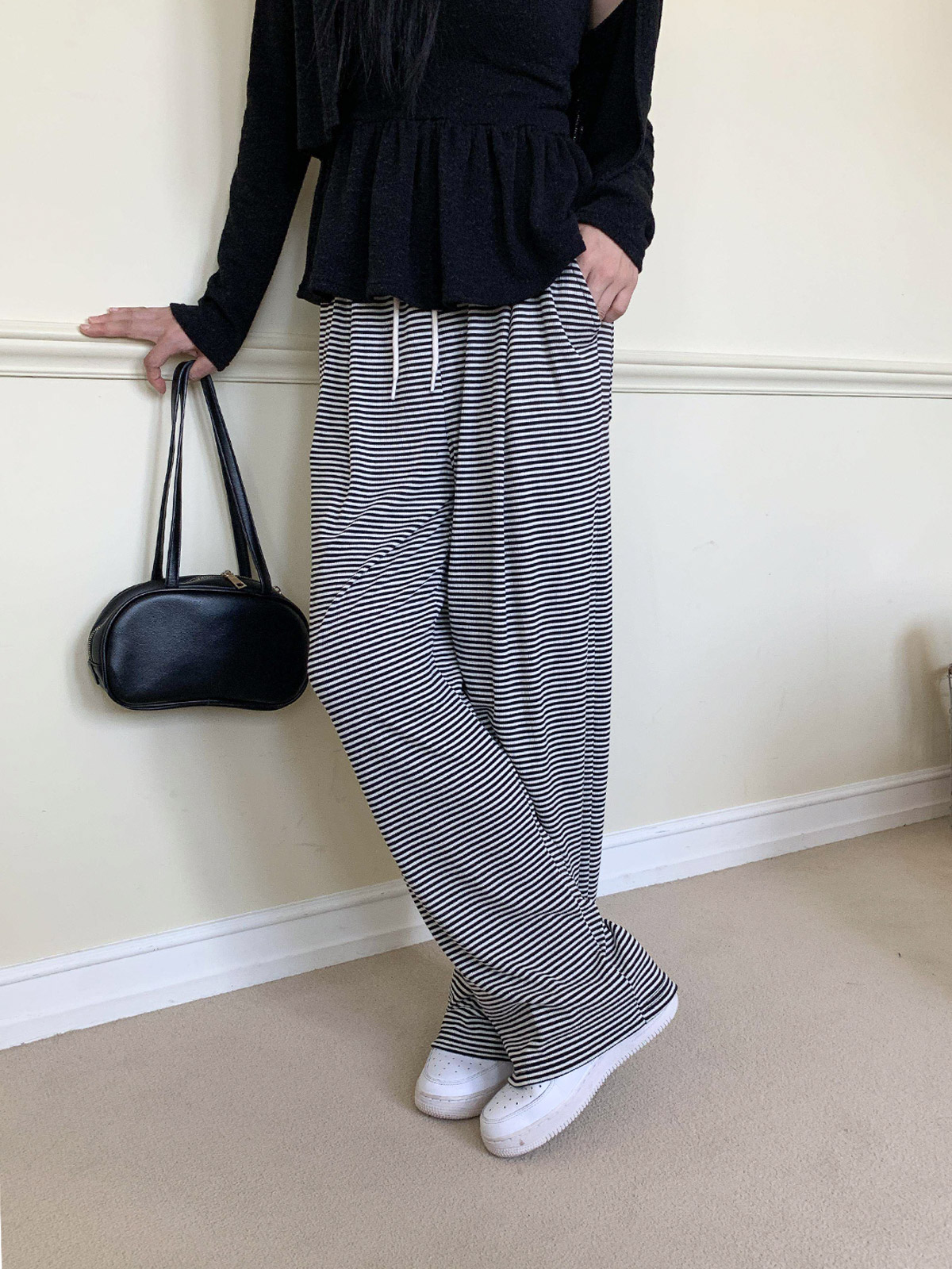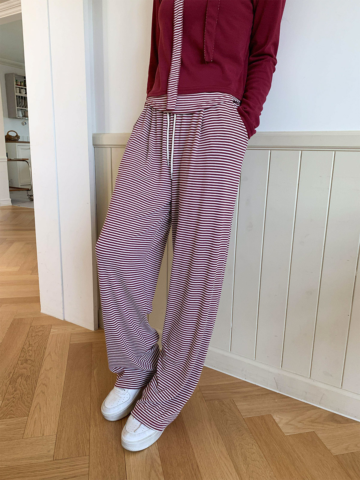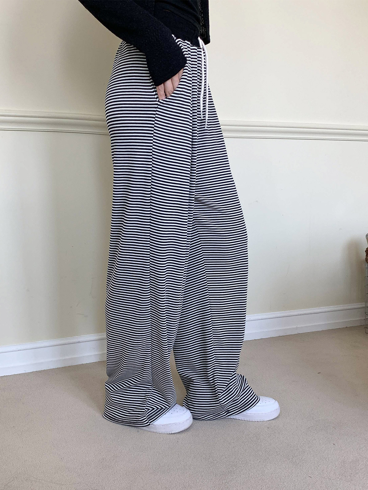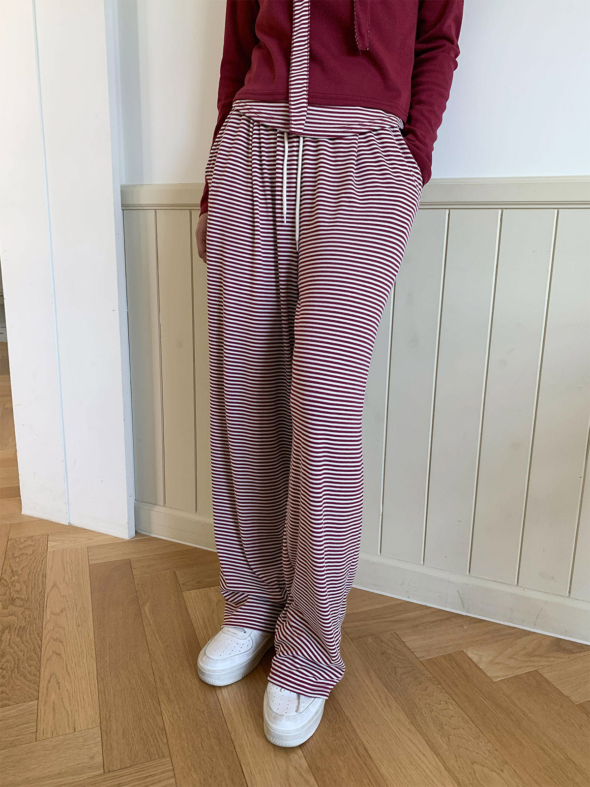 스트라이프 패턴이 돋보이는 편안한 핏의 밴딩 팬츠
